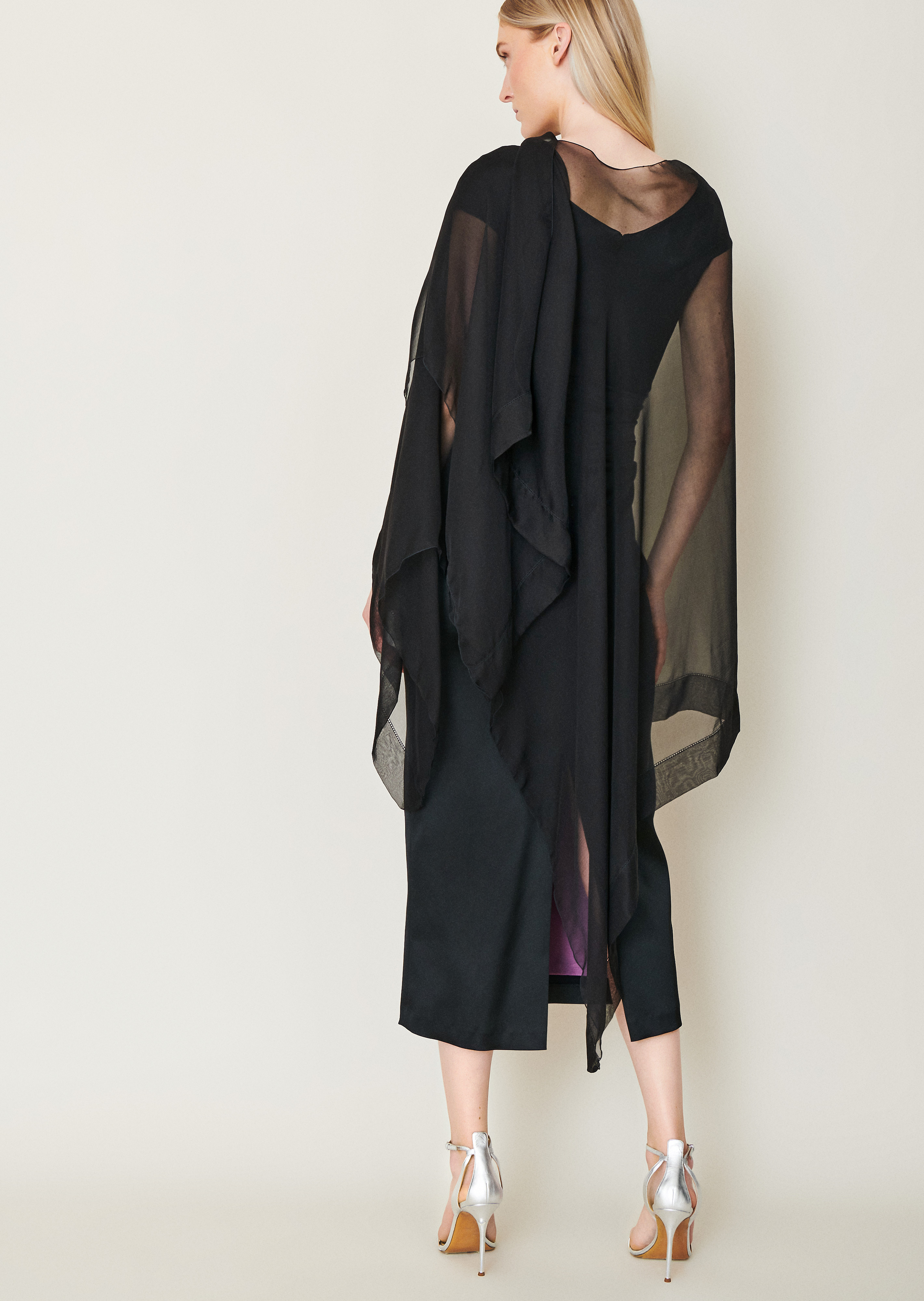 Ein Date wird völlig überflüssig: Mit Hint11 haben Sie für die nächste Gala oder den übernächsten Ball schon den perfekten Begleiter dabei. Der herrlich leichte Seidenchiffon streichelt ihre Haut und der simple Schnitt passt zu jeder Robe. Dieser Poncho ist ein echter Gentleman!