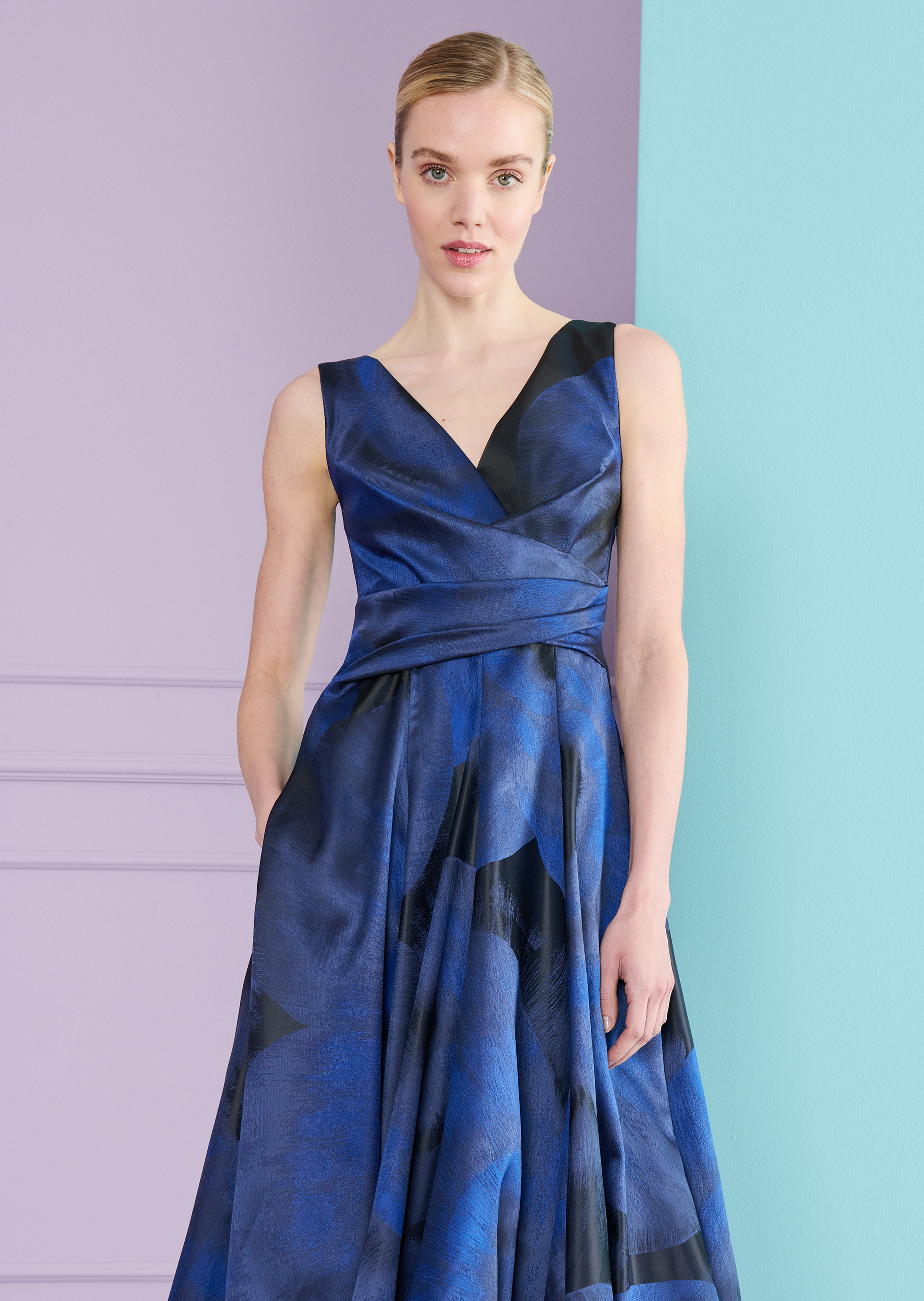 We’ve pleated the neckline here to create a wonderfully feminine, sexy look. The elaborate draping is really something to behold. This midi-length cocktail dress is guaranteed to be a success. Elegant and super chic, it knows how to impress with a narrow waist and a sweeping, wide skirt. What’s more, the modern length allows you to flaunt your favorite heels. This dress will make an instant impact wherever you go, whether it’s for a date, a chic dinner or an evening celebration.