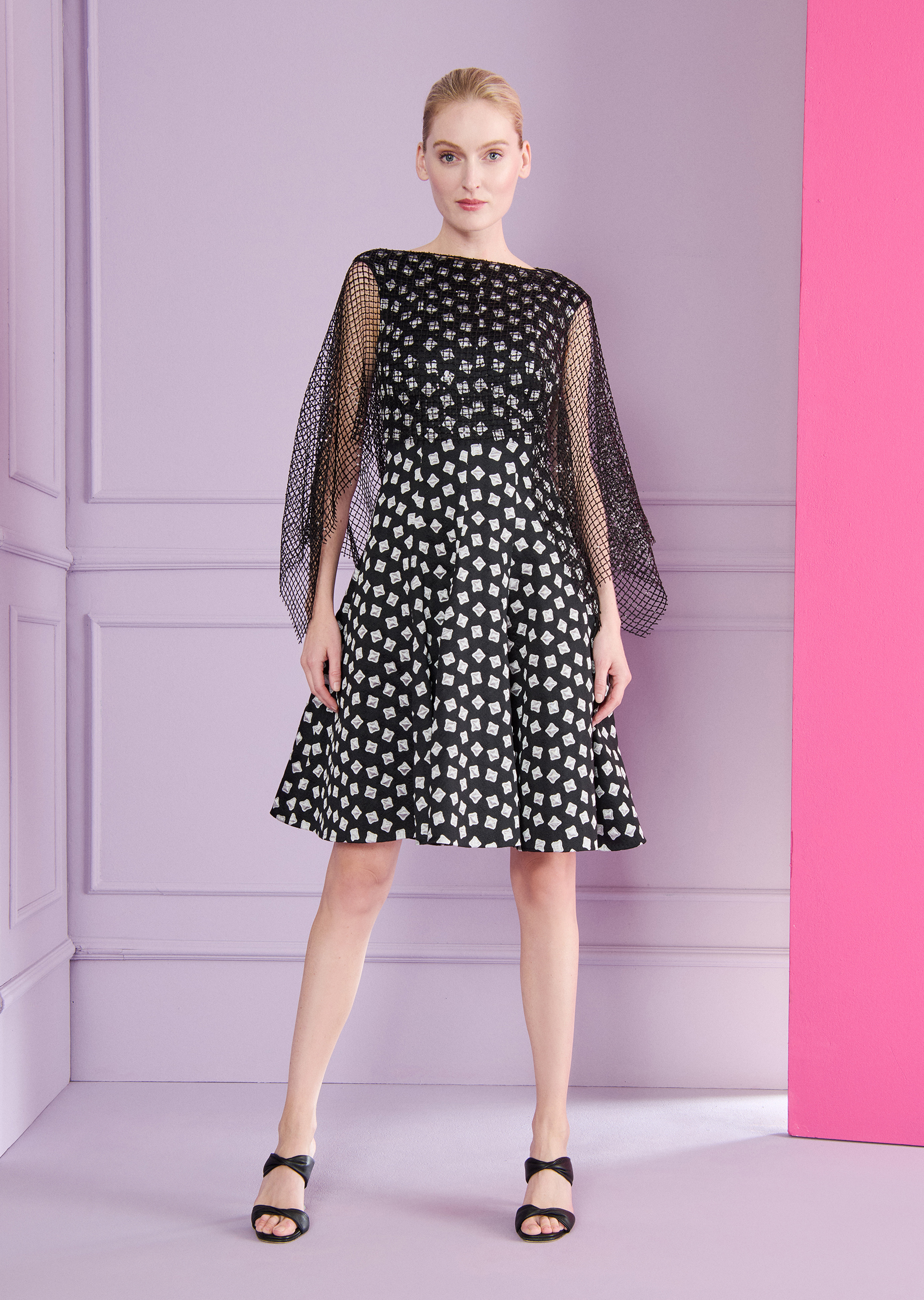 As a wedding guest, you can still say “I do!” – at least when it comes to your spectacular outfit. With this classic cocktail dress, you can look amazing as a wedding guest without stealing the show from the bride. The silhouette is elegant – characterized by the high-fastening bateau neckline and the swirling skirt that loosely skims the knees. The stunning cubique jacquard material has a subtle sheen. During the ceremony, wear it with an appropriate coat and subtle court shoes, then later for the party you can change into sandals in a radiant contrasting color.