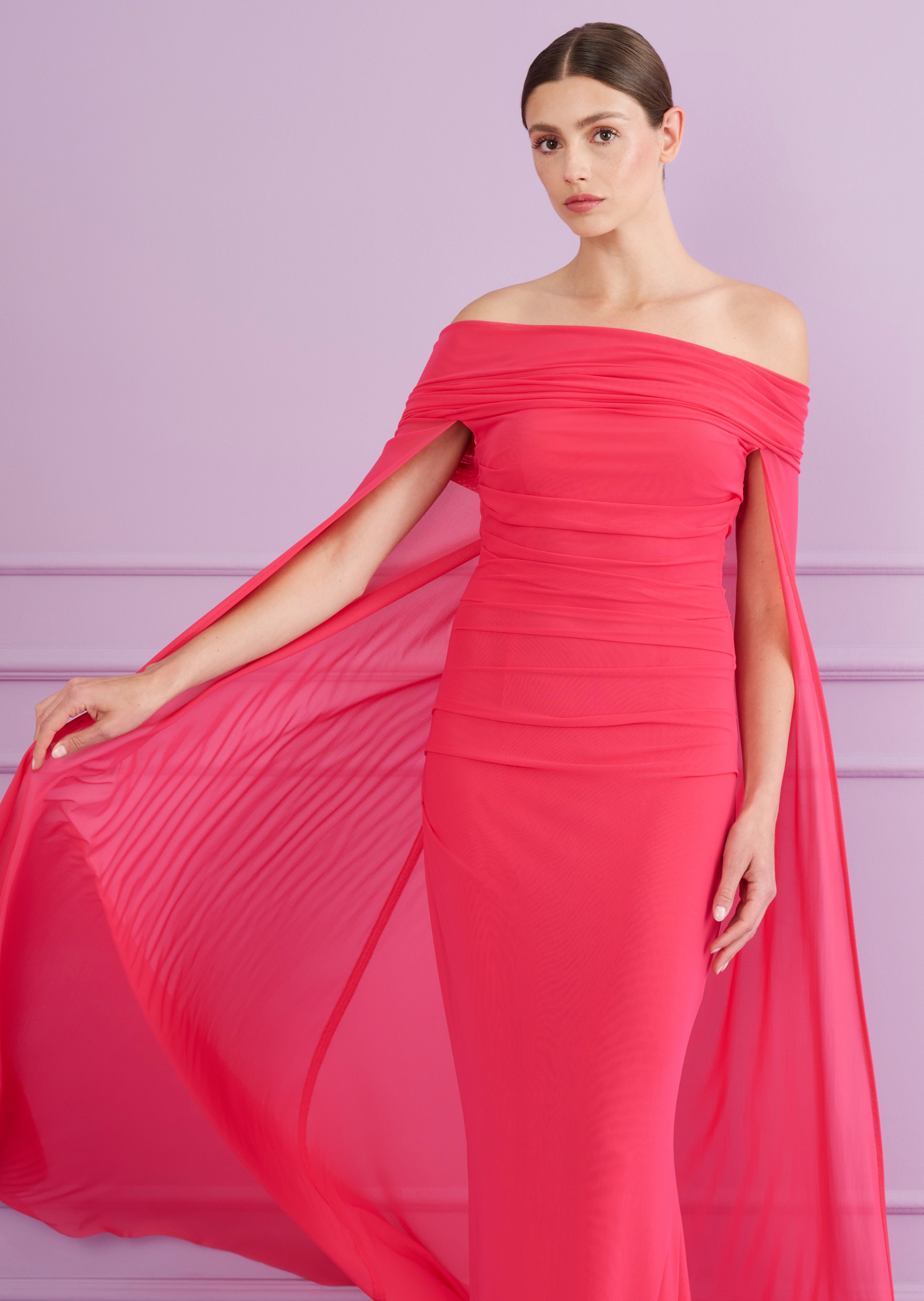 arbeiten sie schon fleißig an ihrer golden-globe-rede? oder haben sie andere preise in aussicht, die ihnen in kürze verliehen werden? dann sollten sie sich unbedingt dieses abendkleid bestellen. unsere traumrobe aus fließendem Tüll bringt einfach alles mit, was zu einem award in der hand passt. das cape umweht sie auf dem roten teppich wie die aura einer diva. die farbe schmeichelt der haut. die freien schultern bieten genau das maß sexappeal, das auf dem roten teppich verlangt wird. nebenbei wird ihre figur durch den elastischen voile und die für talbot runhof ikonischen drapierungen perfekt in szene gesetzt. tragen sie dazu funkelnden schmuck, wie es sich für die globes gehört. oder schlicht ohrstecker und einen einzelnen diamantring.