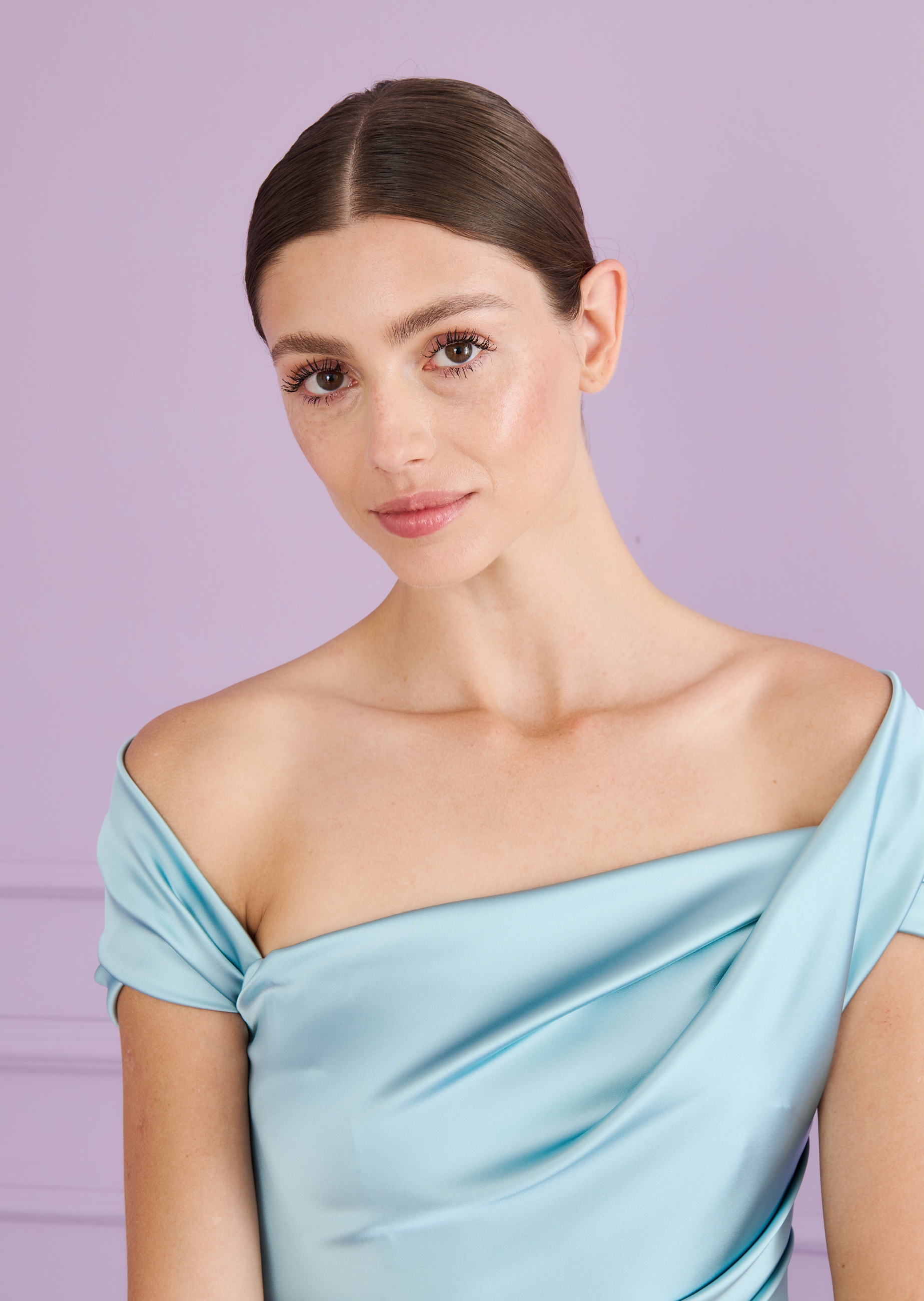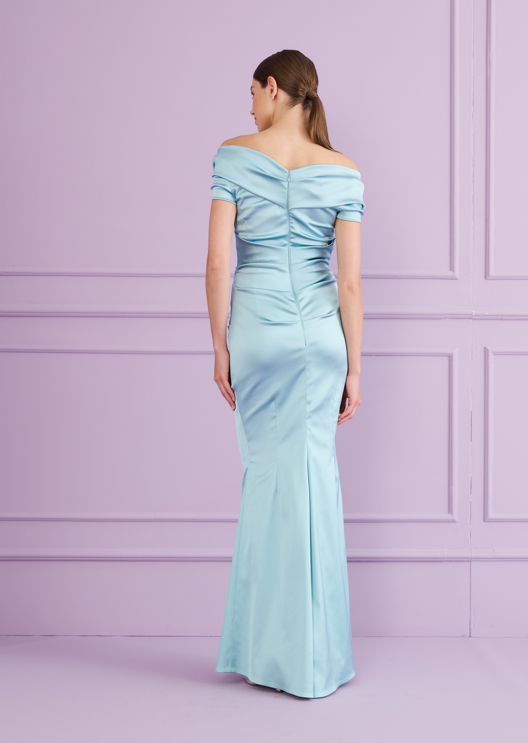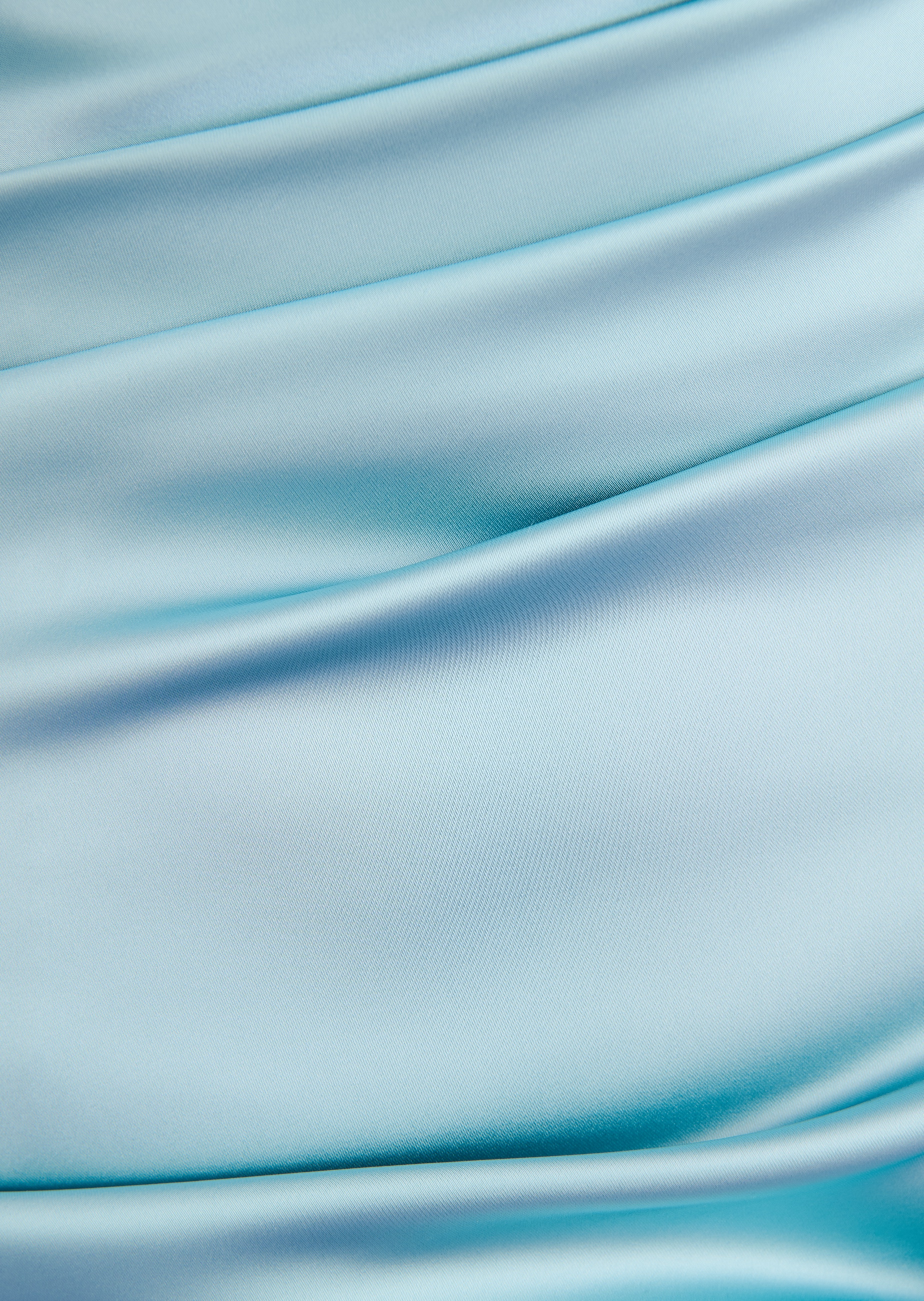 From now on, you'll take evening styling in your stride, and rightly so. Crafted from our shimmering satin duchesse, this evening gown highlights the shoulders with beautiful feminine charm. Draped folds conjure up a slim waist in typical Talbot Runhof fashion, giving the look its special sophistication. Teamed with pumps or sandals, this evening gown brings plain and simple fun to an evening drink with friends, a date, or a theater visit.