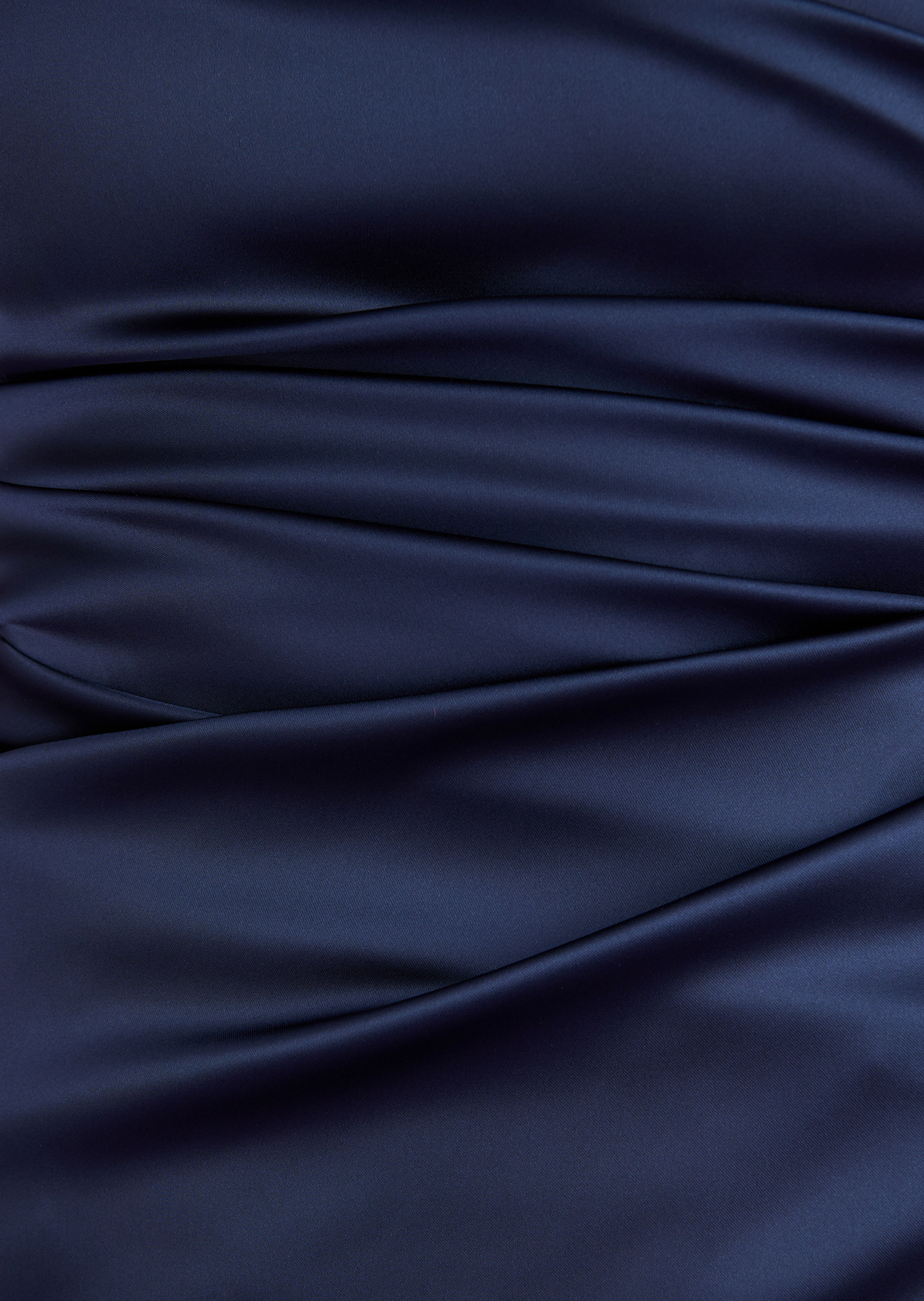 Our new evening gown in glamorous duchesse satin is as pretty as a picture. The narrow, twisted collar traces a sweeping line along the elegant bateau neckline like a delicate brushstroke. Draping accentuates the slim waist. The floor-length skirt section is streamlined, however the slit at the back allows for freedom of movement, meaning that you can also wear this evening gown to any event that involves dancing. Combine this gown with opulent jewelry and accessories as well as one of our delicate chiffon stoles for a ball. For an elegant banquet, on the other hand, keep it simple with heeled sandals and subtle jewelry.
