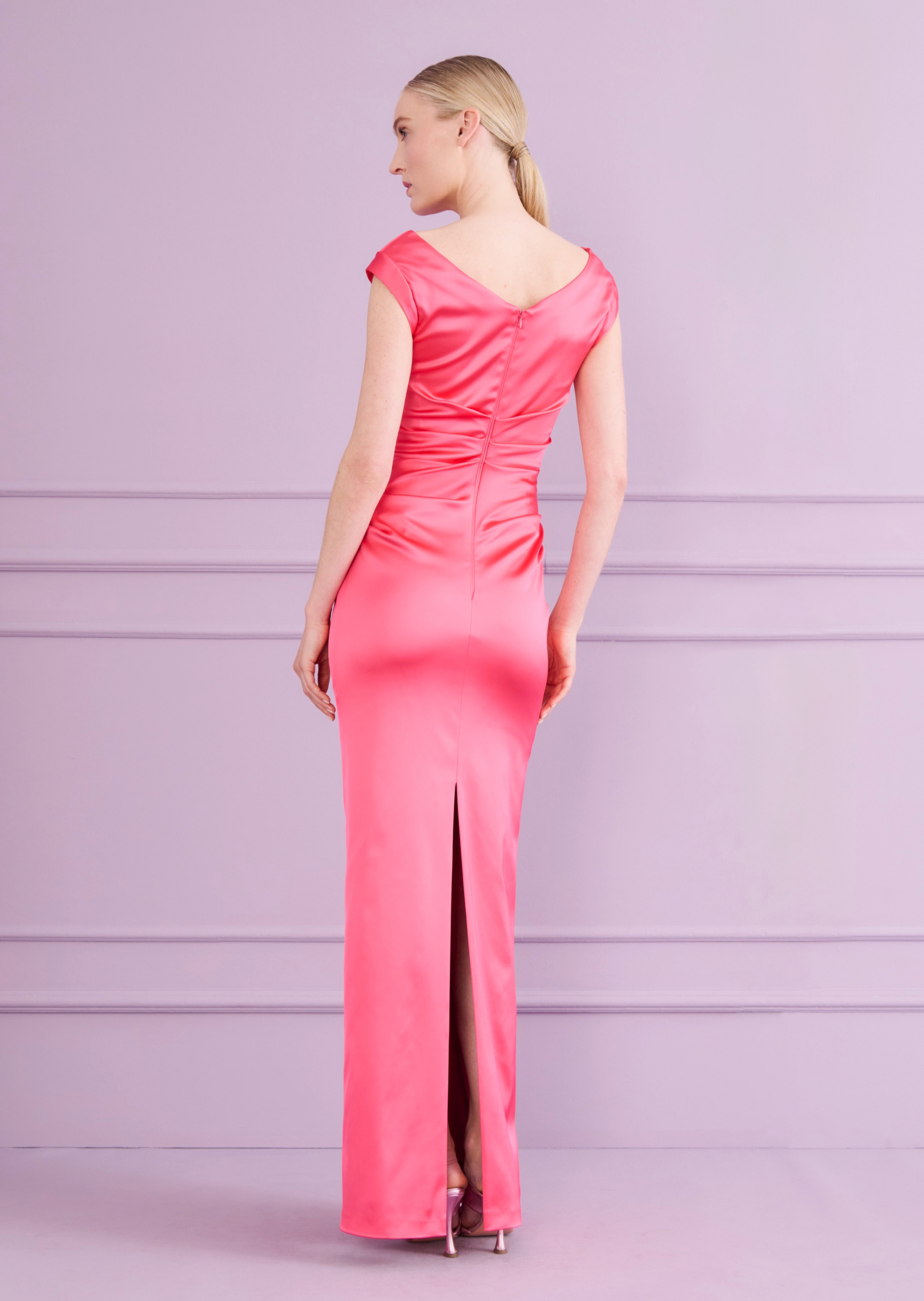 We love a classic cocktail – whether it's a Manhattan, Gin & Tonic or Cosmopolitan. And when it comes to fashion, we feel the same. This evening dress, made from lustrous stretch satin duchesse, is a true timeless piece. The refined neckline keeps things elegantly understated, while soft draping enhances and flatters the silhouette. This floor-length gown is the perfect choice for countless occasions – from being mother of the bride, to a night at the opera, or an elegant red carpet event. What we love most? Its effortless versatility. Dress it up with bold statement jewelry or keep it minimal and sleek – this piece transforms with your mood and the moment.