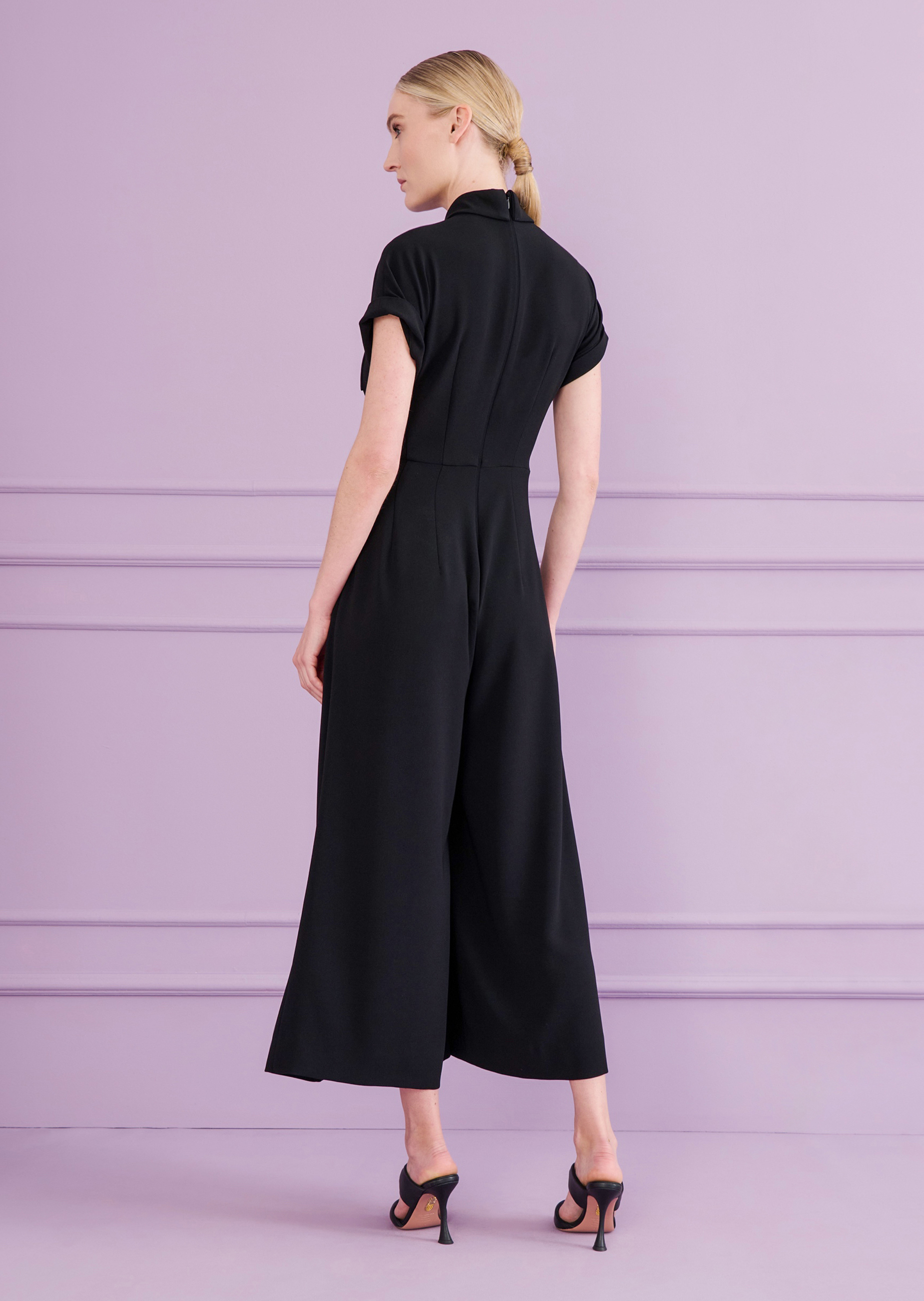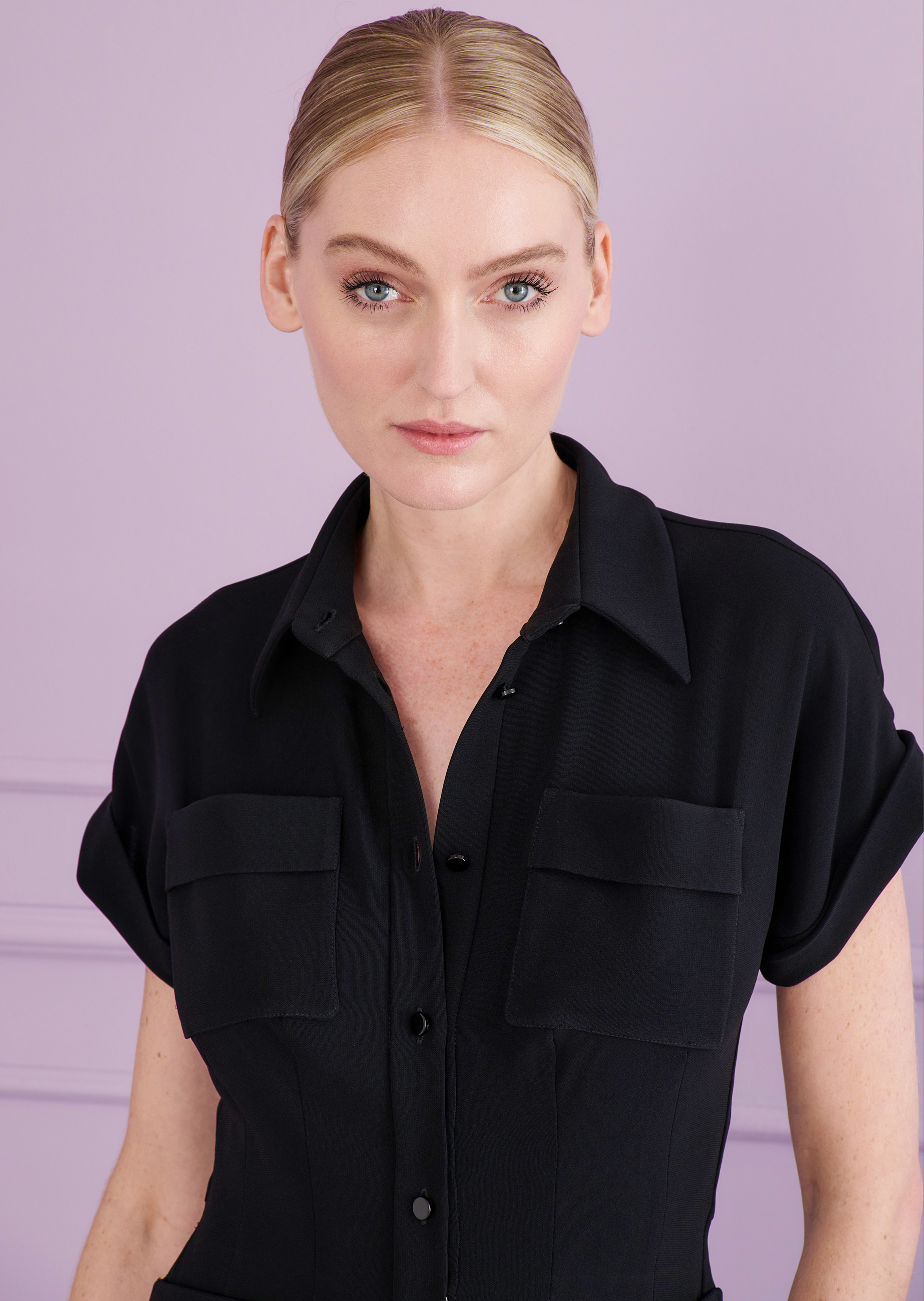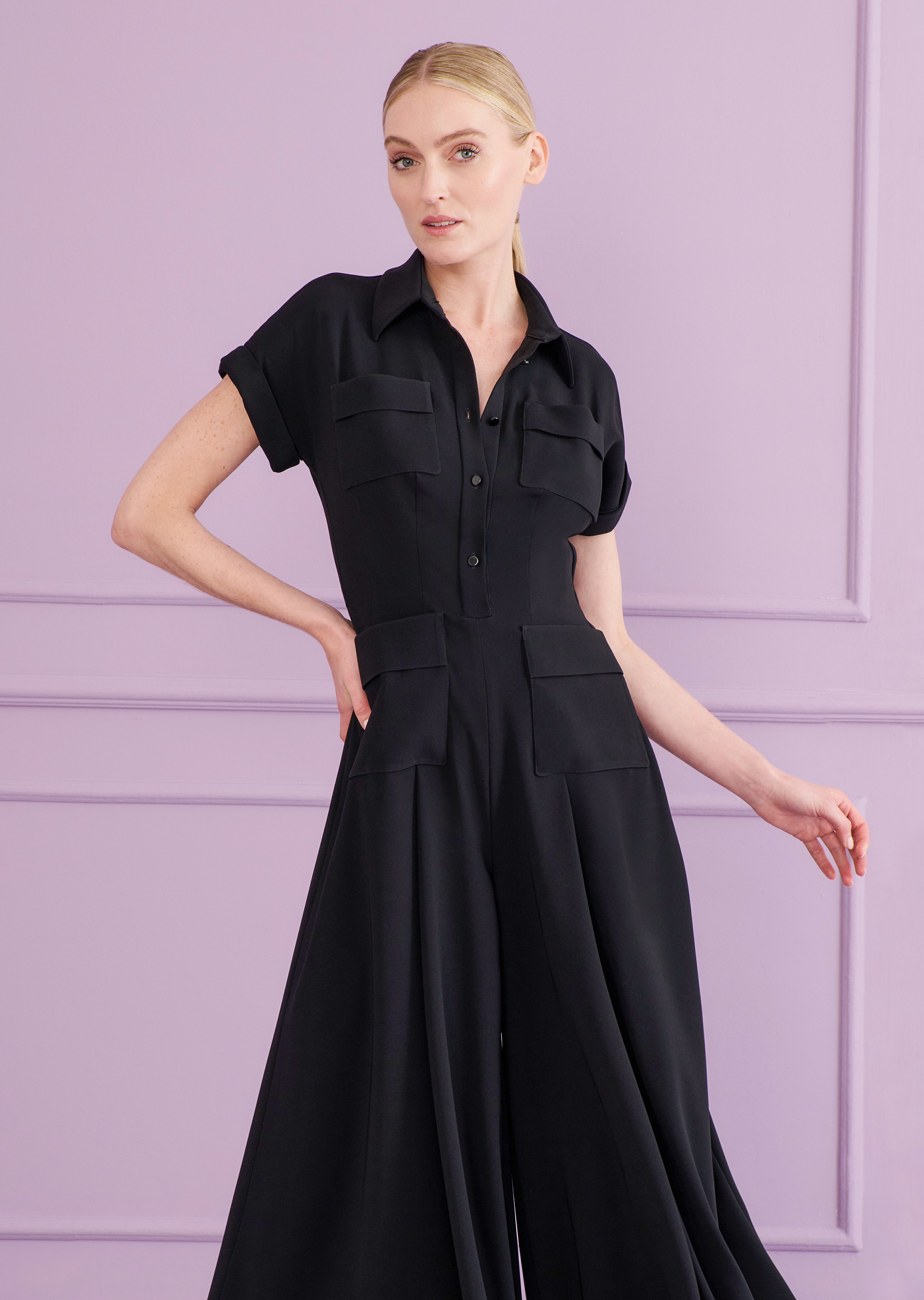 Embark on a style safari through your day – this jumpsuit in our adaptable cady fabric has you perfectly equipped. With its safari-inspired cut featuring short sleeves, a shirt collar, defined waist, and patch pockets, this one-piece blends elegance with a sporty edge. It’s the ideal summer look – especially when your day moves seamlessly from office hours to evening drinks with friends. Cut in a chic midi length and crafted from our versatile cady, it effortlessly adapts to your lifestyle. And of course, it’s a look you can wear all day – ready for whatever adventure comes your way.