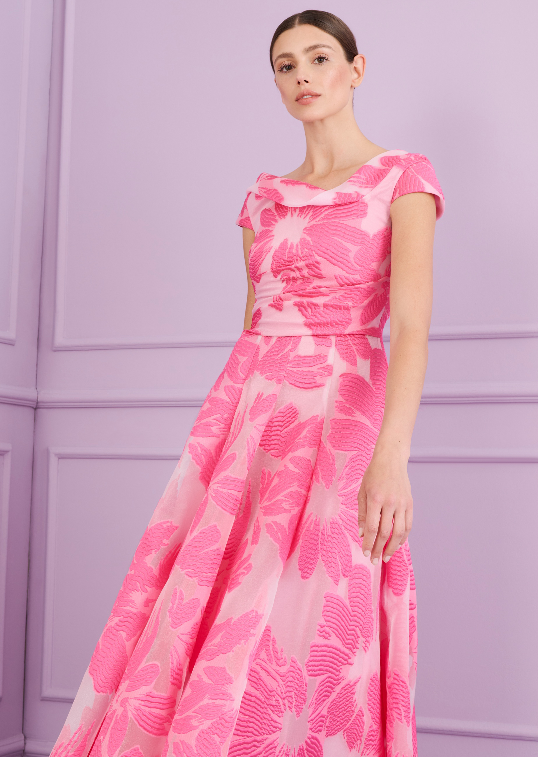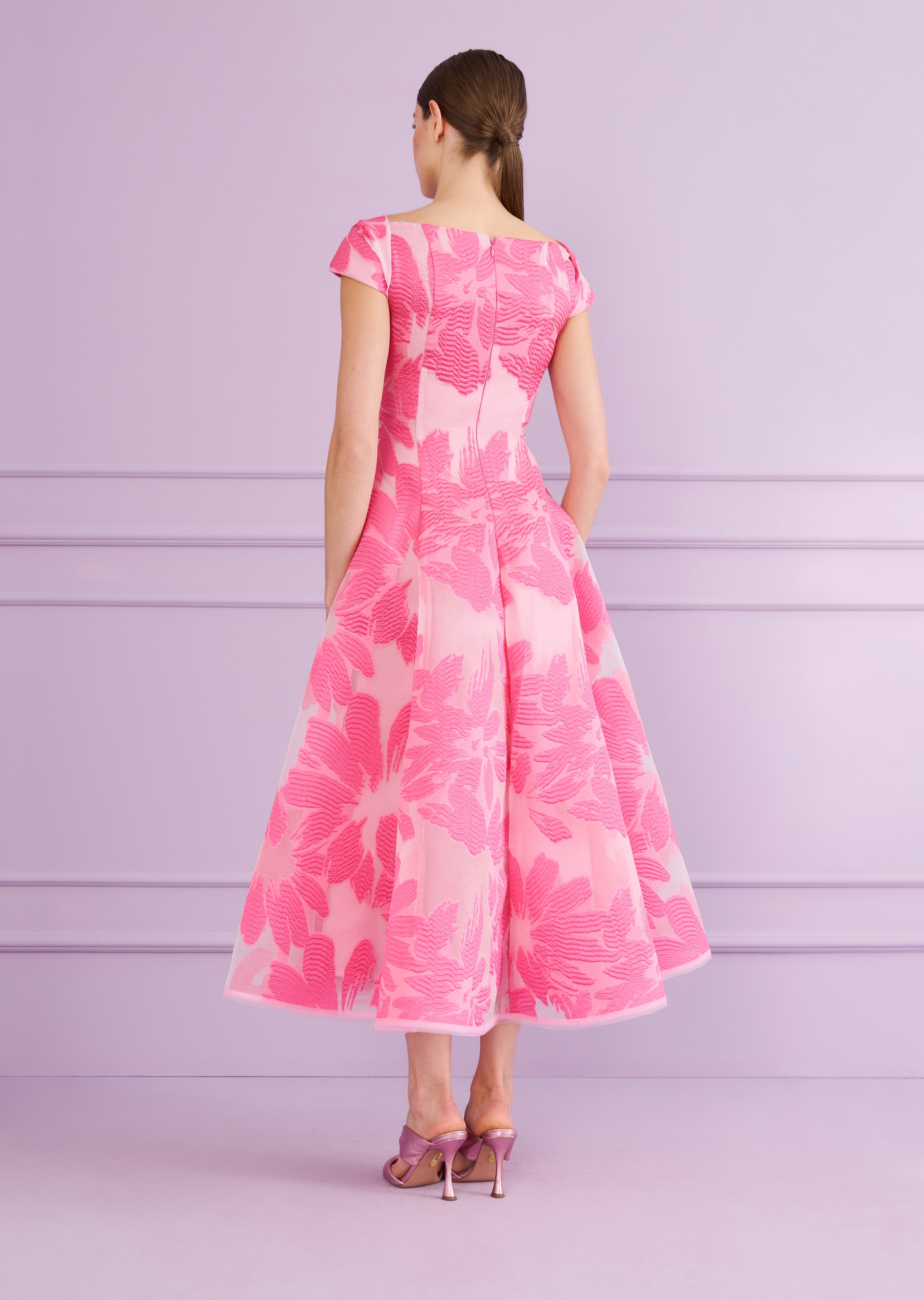 midi dress made of floral fi coupé, color azalea pink