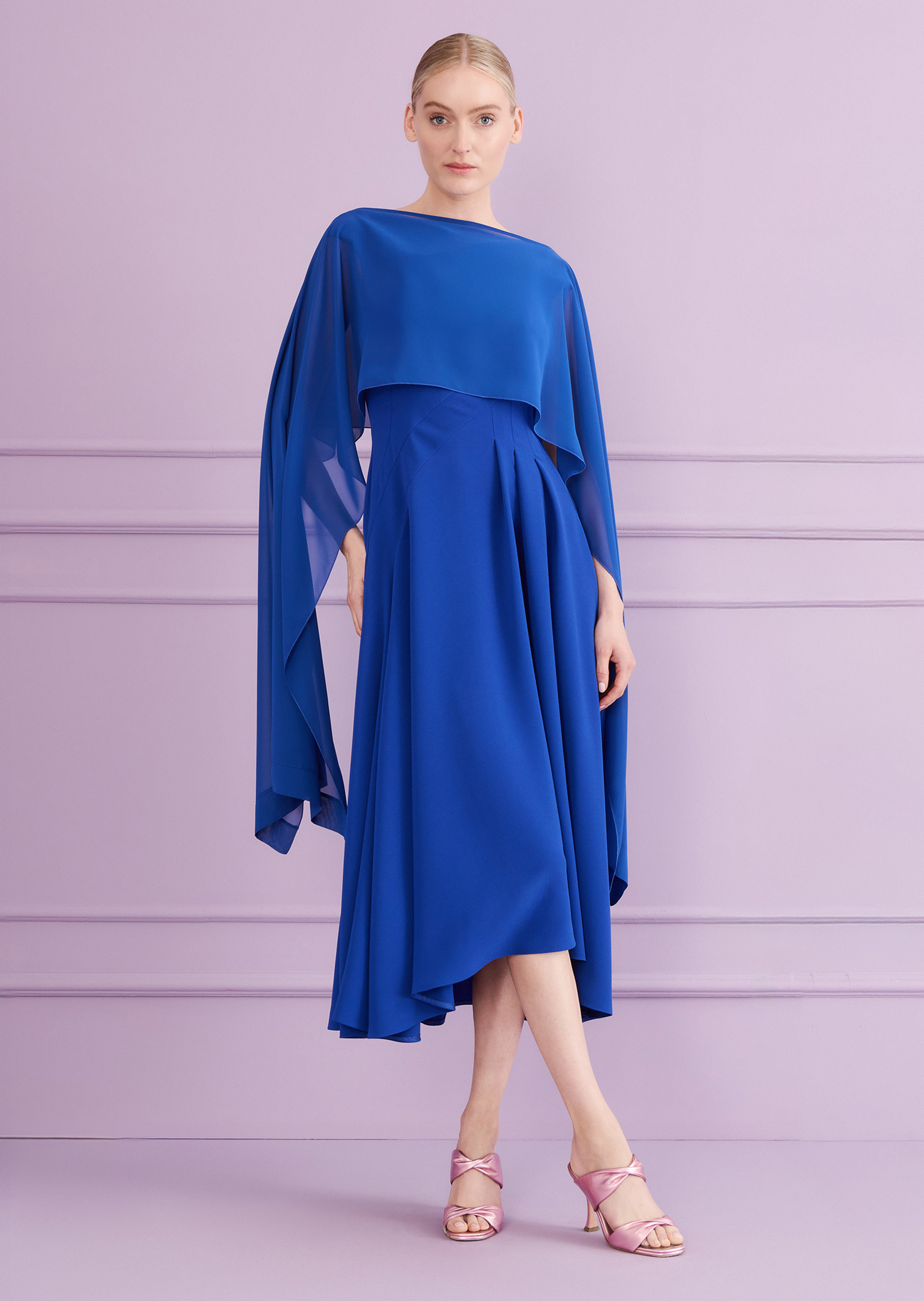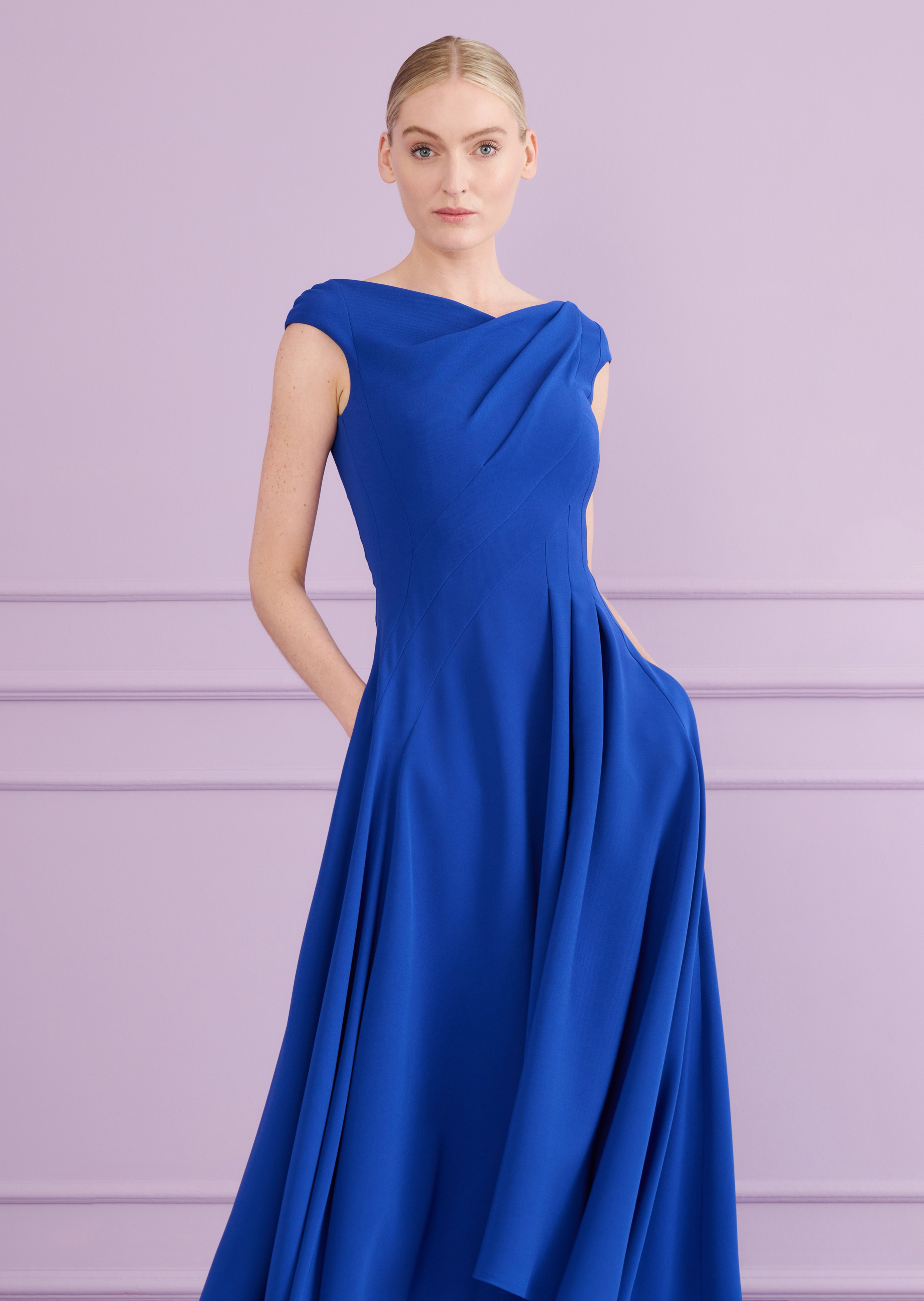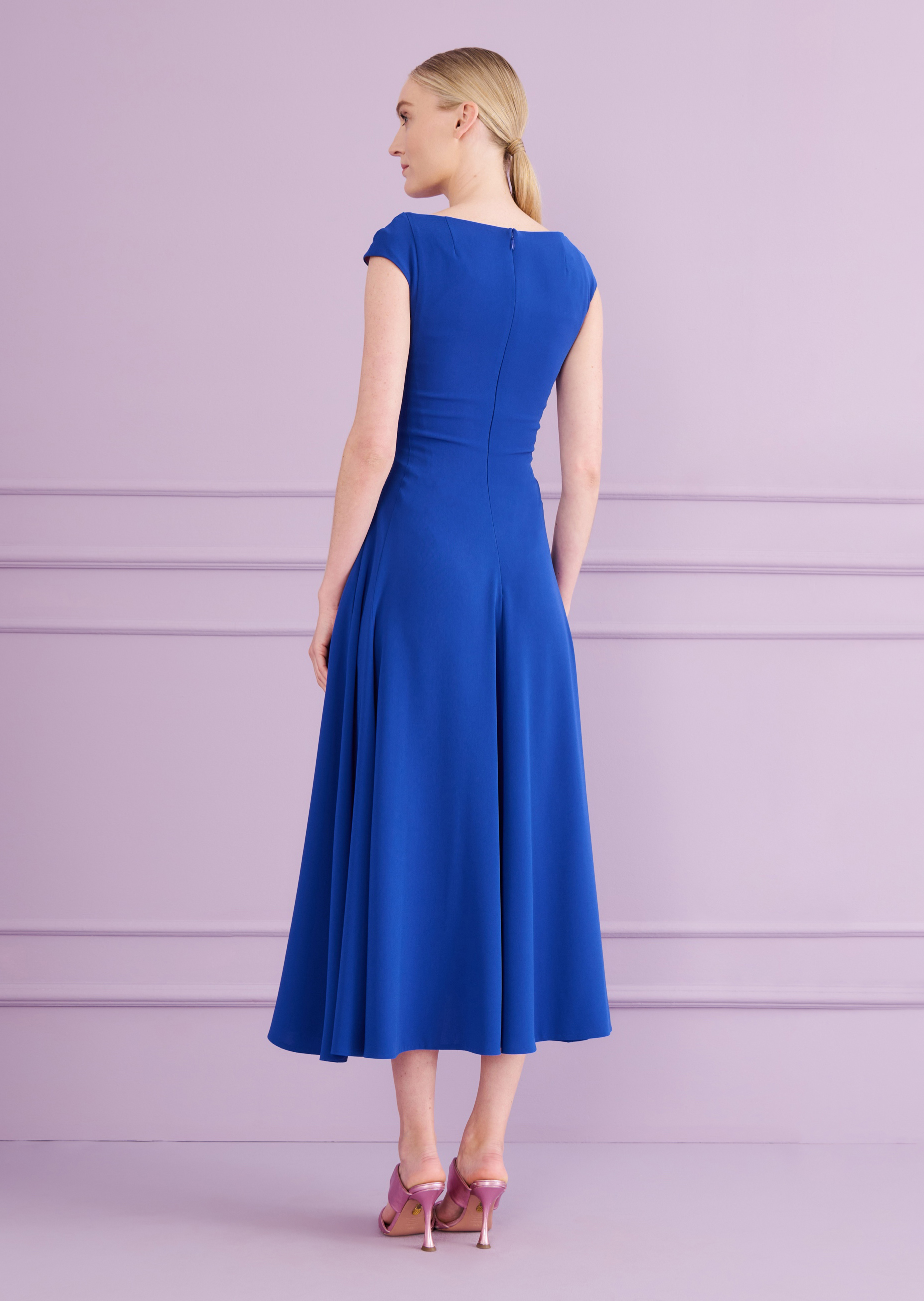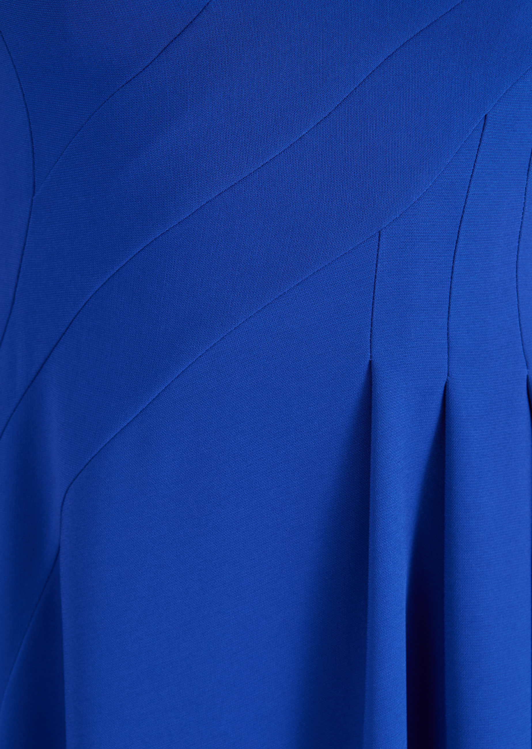 This midi dress flows effortlessly over the body, combining ease with elegance. Crafted from easy-care Cady, it’s the kind of daytime piece that adapts beautifully to any occasion. A modest neckline and soft cap sleeves lend an air of relaxed sophistication, while cleverly constructed seams – almost like pieces of a puzzle – mirror the fluidity of the design in every detail. In this timeless shade, the dress becomes a versatile classic: wear it sleek with a ponytail and minimalist sandals, or dial it up with statement heels and bold jewelry for a more dramatic twist.
