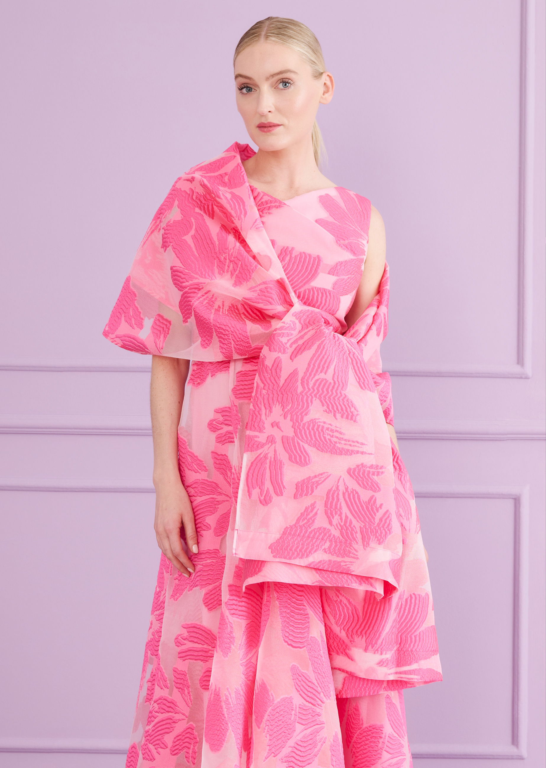 stole made of floral fi coupé, color azalea pink