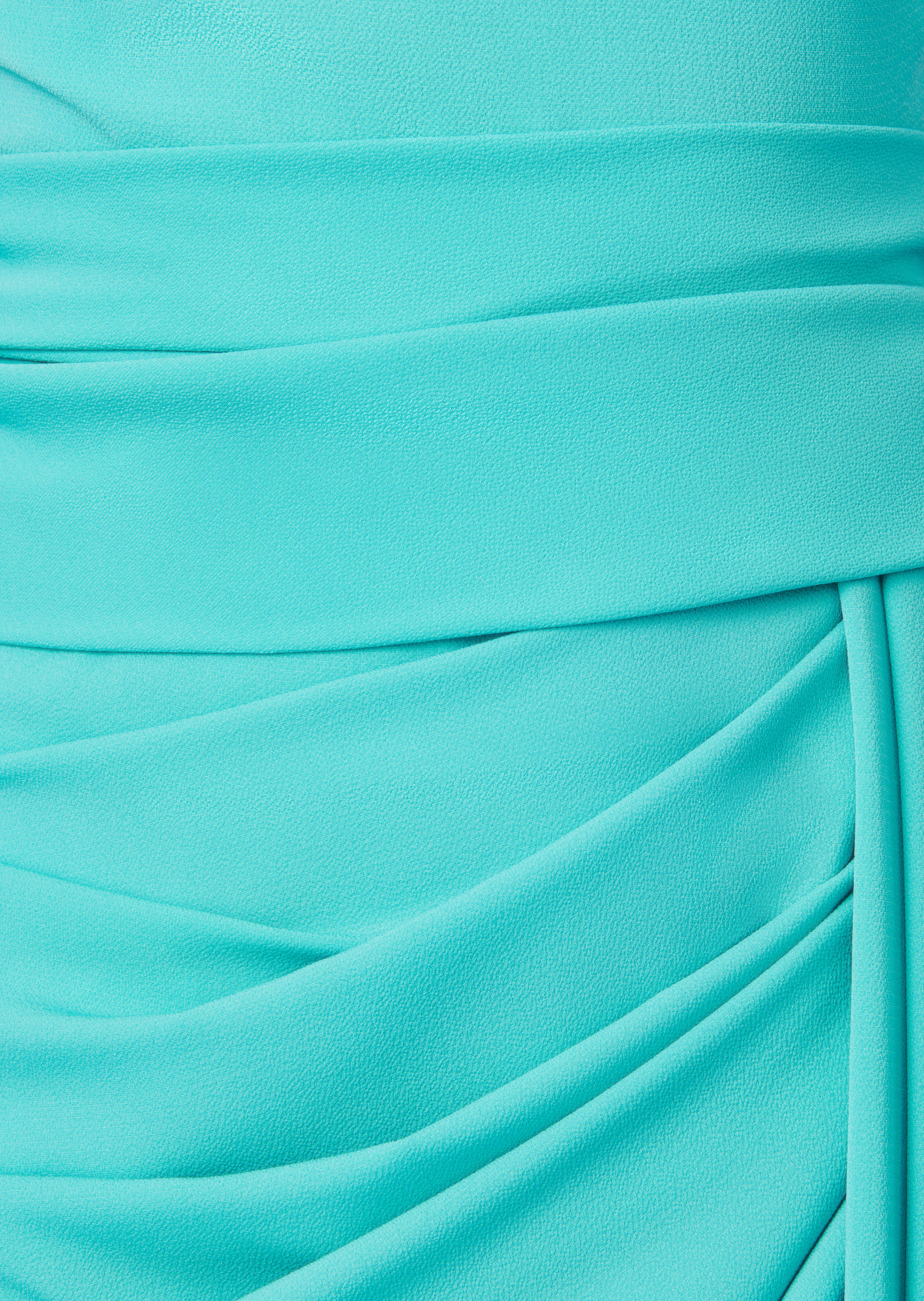 This dress brings avant-garde galore to your closet. But don't worry - this extraordinary dress is still a real everyday favorite. The extravagance here is particularly evident in the cut: with a lot of Talbot Runhof magic, it has been draping, testing and knotting been going on to create this elegant O-shape dress with a V-neckline, cape sleeves and a sophisticated knot detail in the chest area. It is created from just two pattern pieces. Made from comfortable stretch crespina, this loose-fit dress is equally at home in your everyday life styled with flat shoes and a striking watch as it is in the evening - sophisticated and subtly sexy - with sandals and a matching clutch.