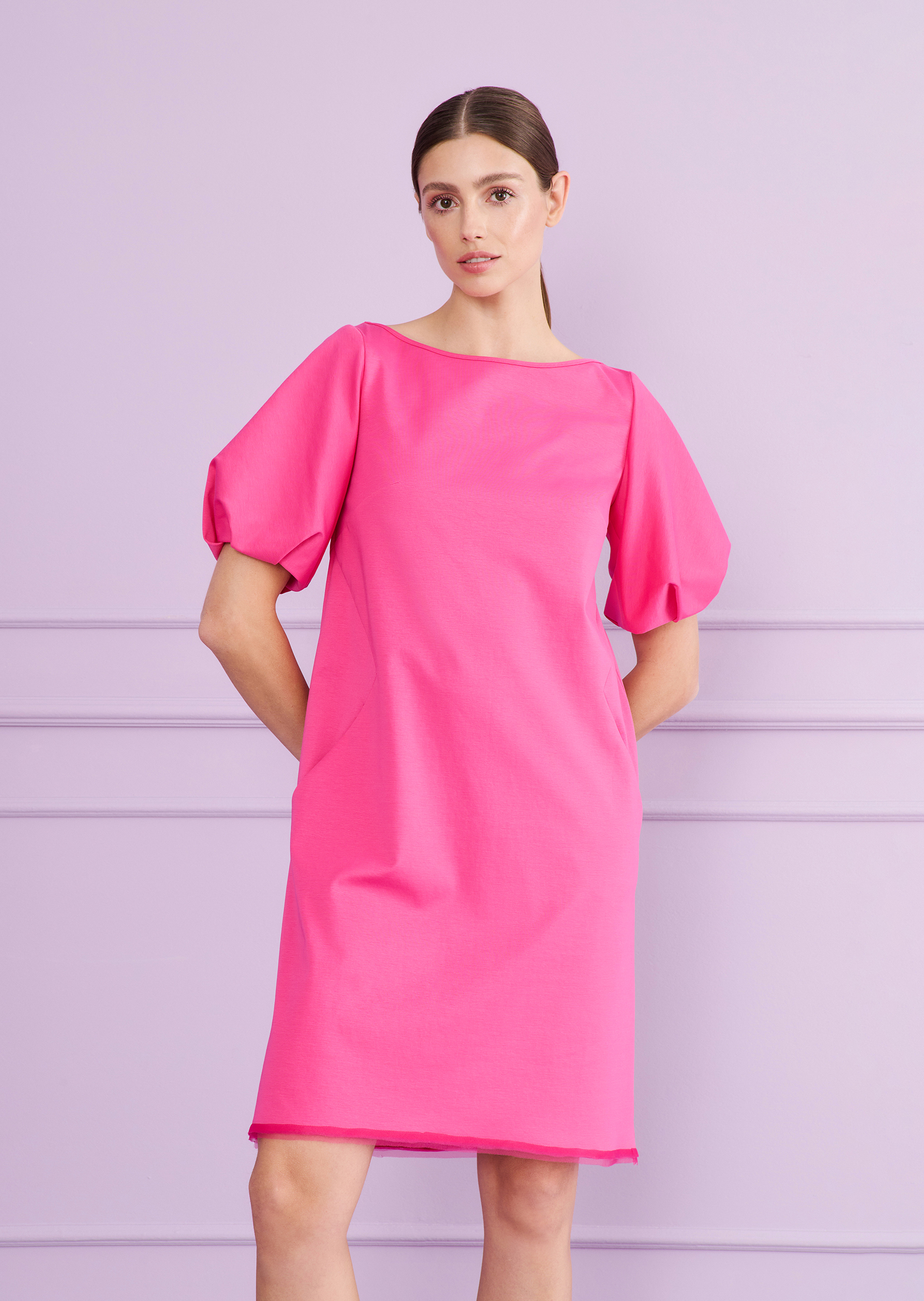 This day dress takes a style cue from the Sixties – reimagined in a modern, effortlessly relaxed way. The short cut draws attention to your legs and creates the illusion of length. Its easy, loose fit gives you the freedom of movement you need to breeze through your day. Short sleeves offer just the right amount of coverage for areas you'd prefer to keep under wraps. We’ve crafted it from a light, comfortable Punto Milano cotton that feels as good as it looks. Pair it with pointed ballet flats for the office or with relaxed flats for an easy off-duty look.