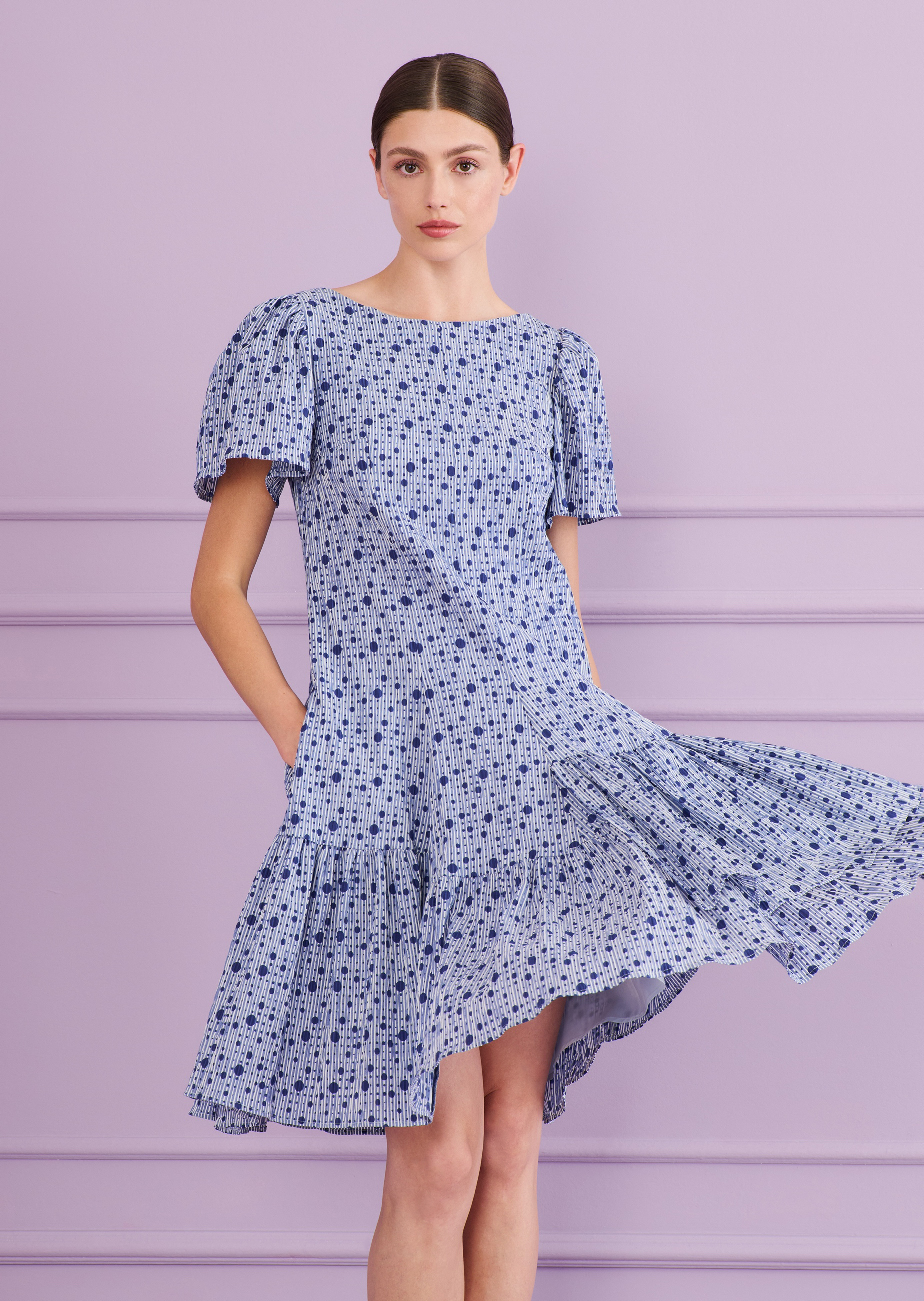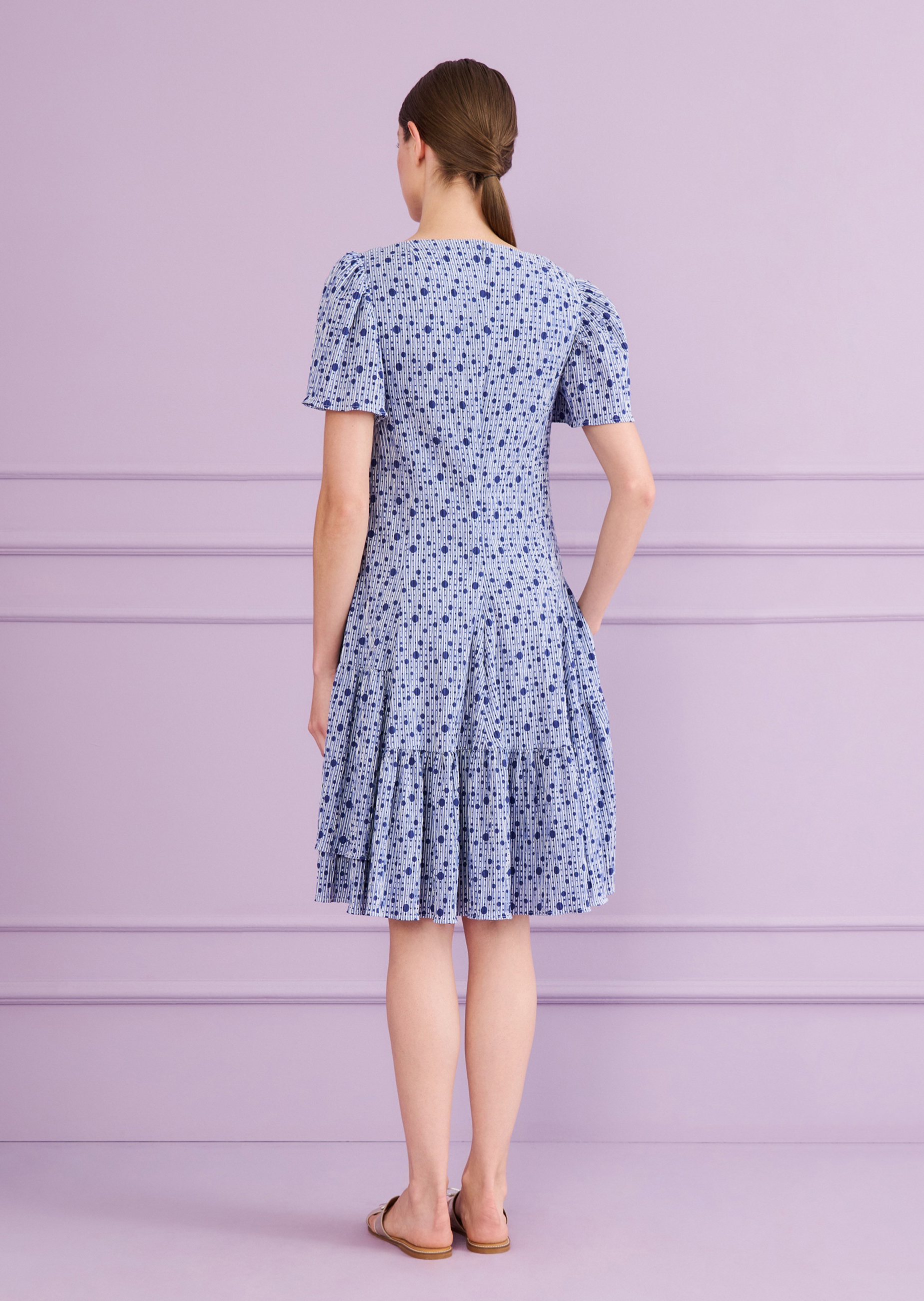 Tier up your casual daytime look with our new knee-length day dress. It’s the tiers that make it so special: we designed the hem of our new knee-length day dress to be asymmetric with tiered flounces. This otherwise simple model will make you stand out of the crowd. Short sleeves, an elegant bateau neckline, a loose cut... In this variation, summery pleated cotton stretch ensures top comfort. Wear it with cool sneakers and you are ready to tier up to the next fashion level!
