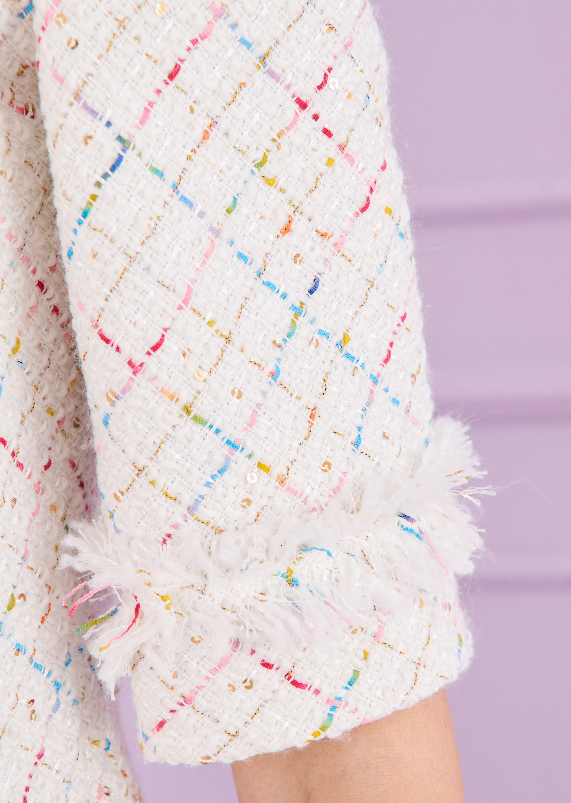 dress made of rainbow sequin tweed, color ivory white