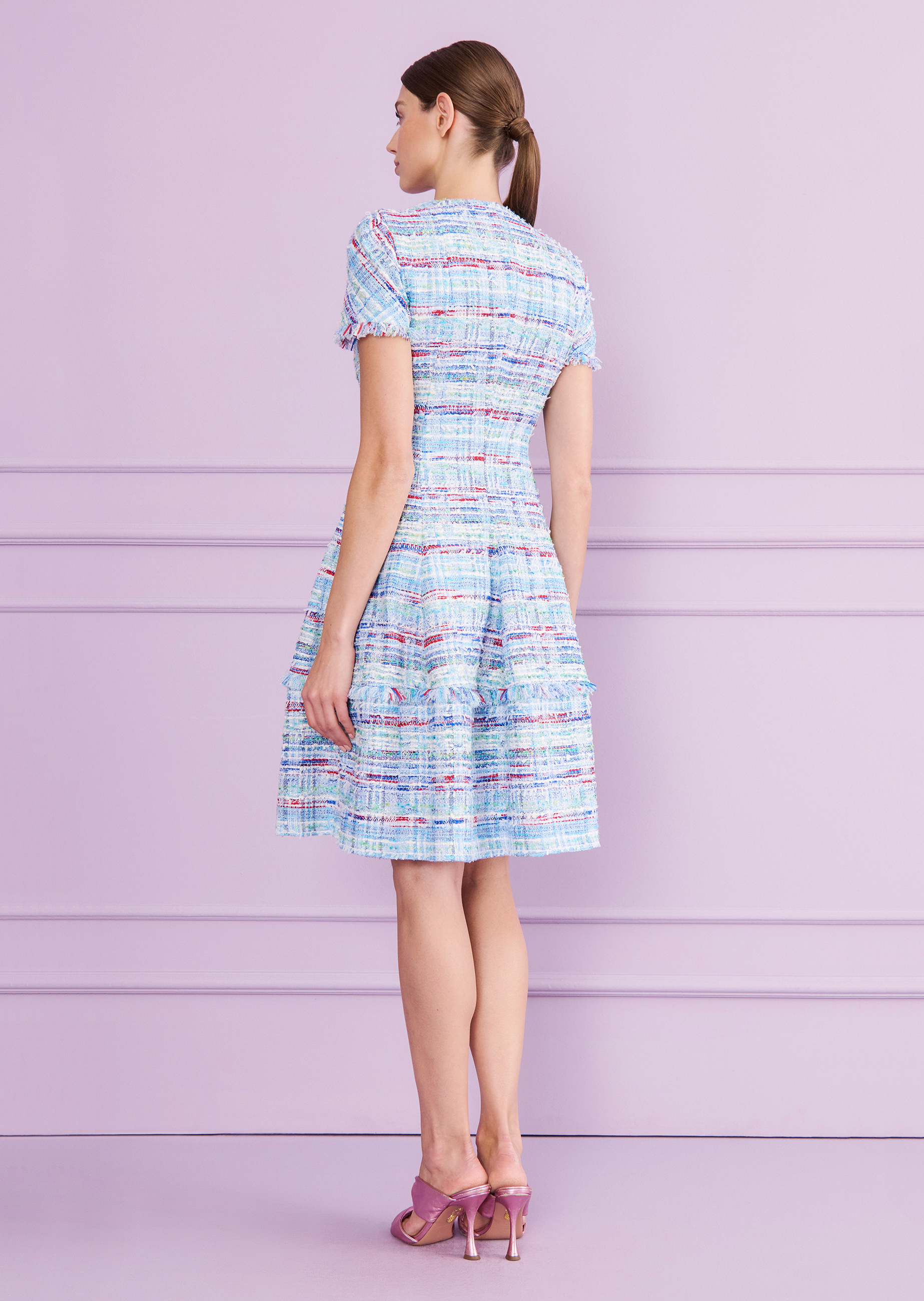 dress made of tournier fancy tweed, color periwinkle blue