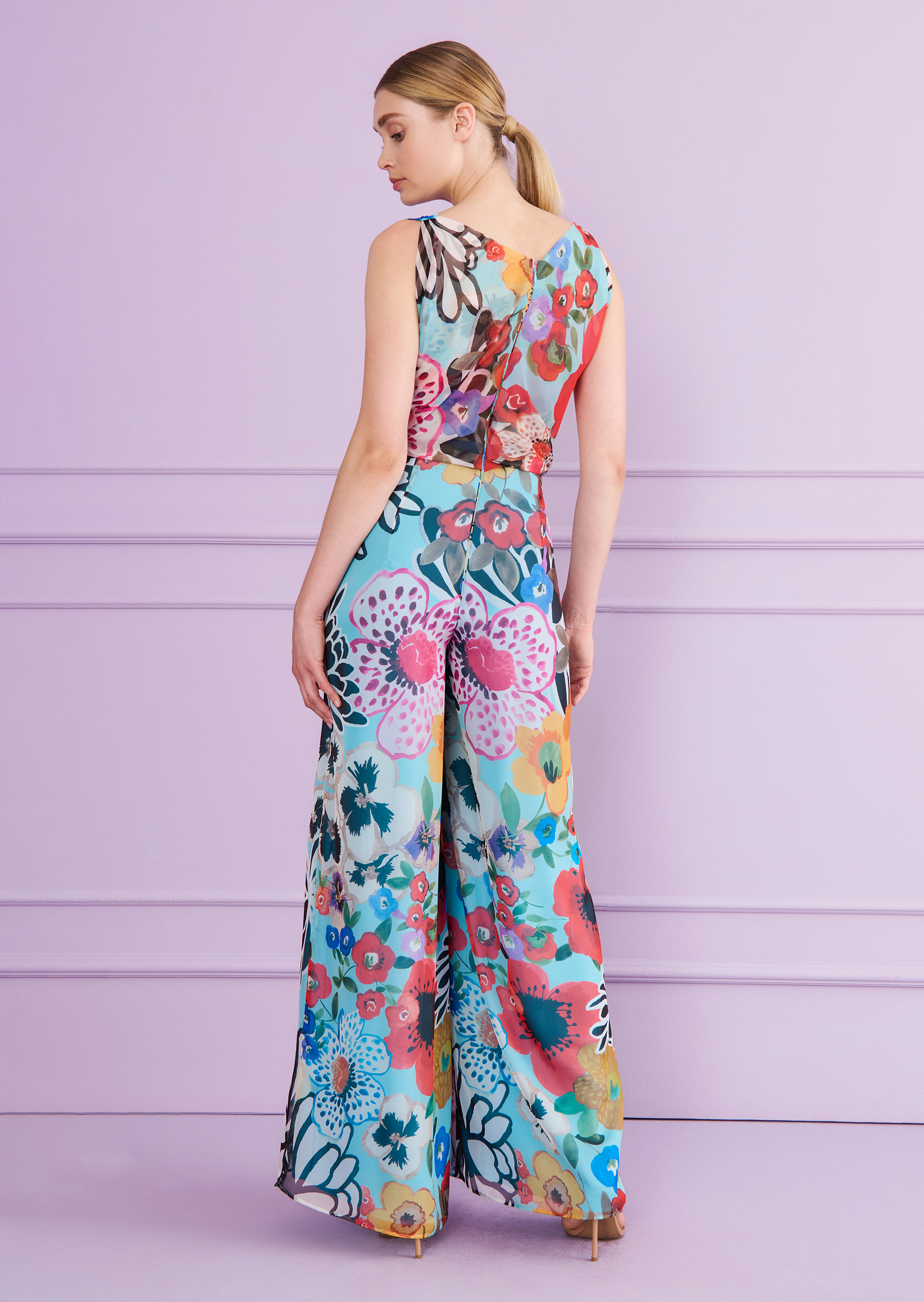 jumpsuit made of painterly bloom chiffon, color seafoam green