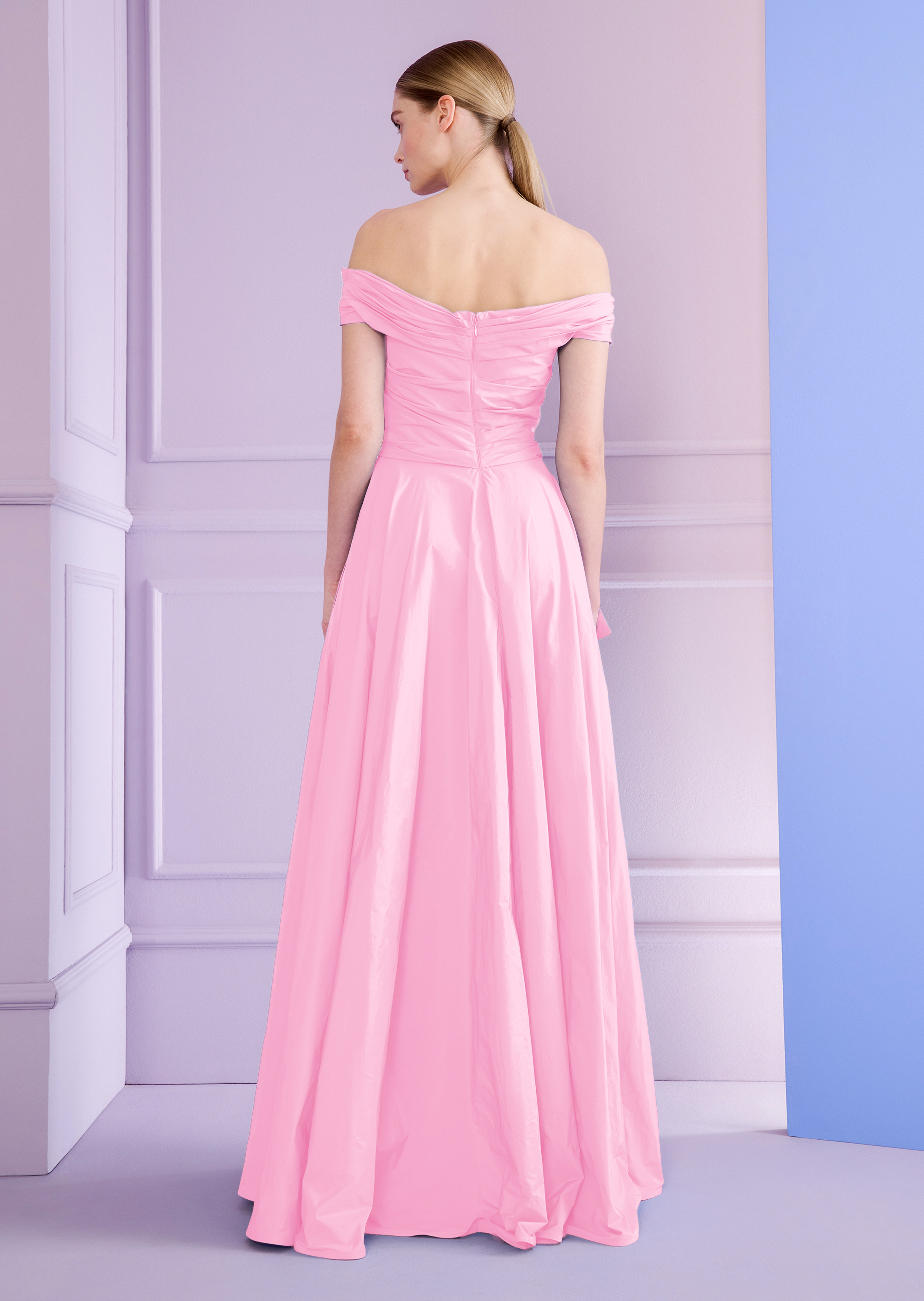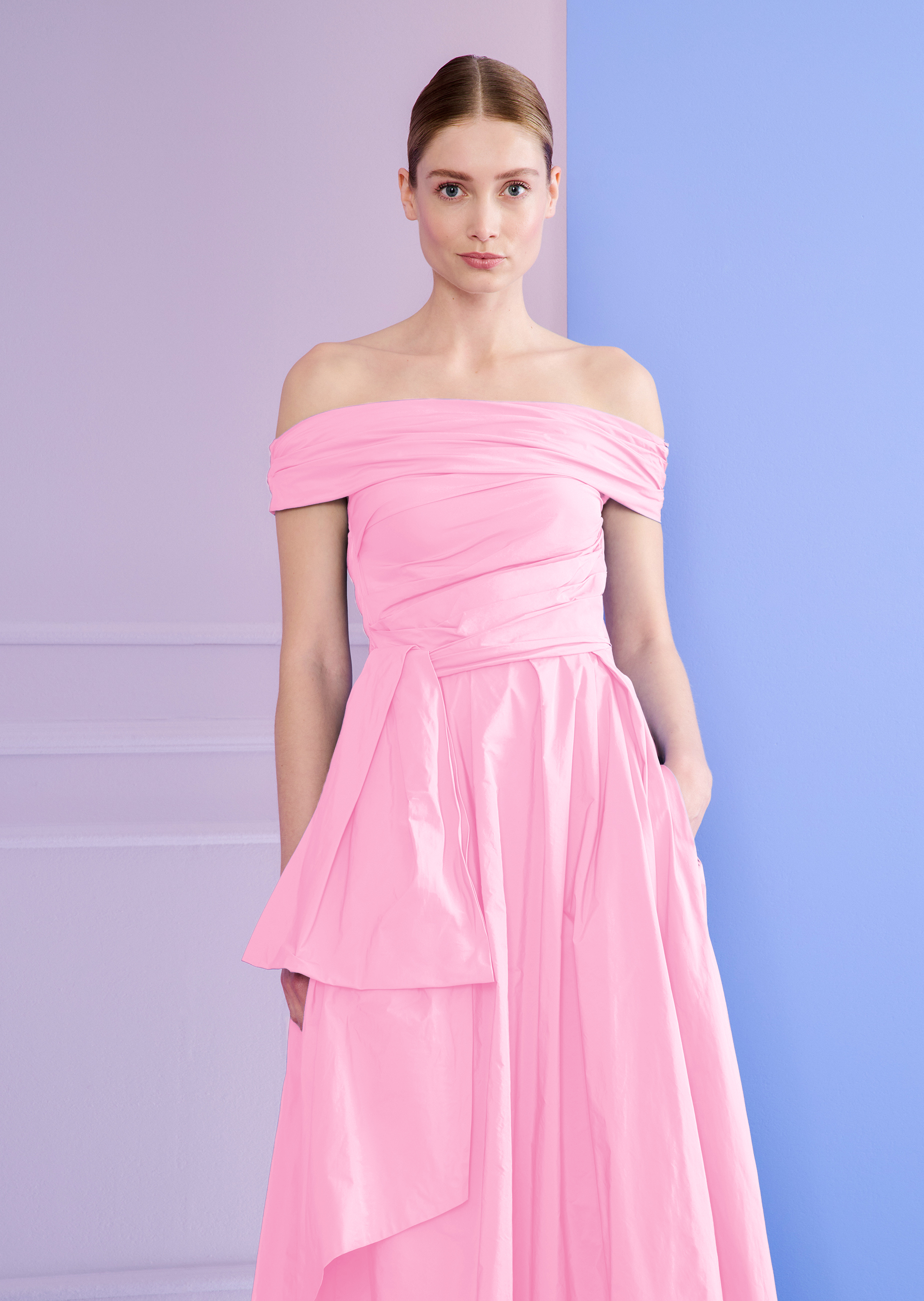 When you wish upon a Star…you sometimes simply want to feel like a fairy-tale princess. In this evening dress made of a beautiful taffeta you can enjoy the night all the way to midnight and beyond. The focus with this piece is drawn towards your beautiful shoulders. And on top of that the famous, typical Talbot Runhof style draping with a bow detail makes the waistline appear slender. The fabric, however, is the real stunner here! Whether red carpet, award ceremony, premiere, or ball and at the very latest when your prince whirls you across the dance floor, that’s when the fairy-tale dream will finally be realized.