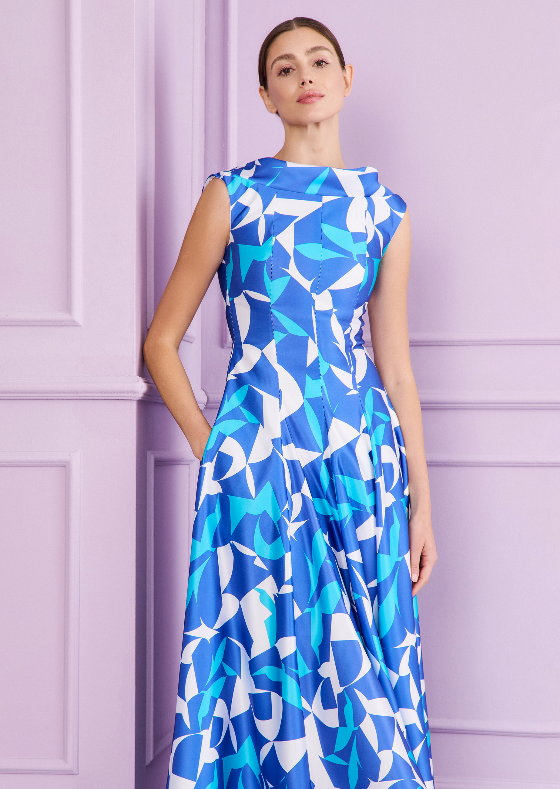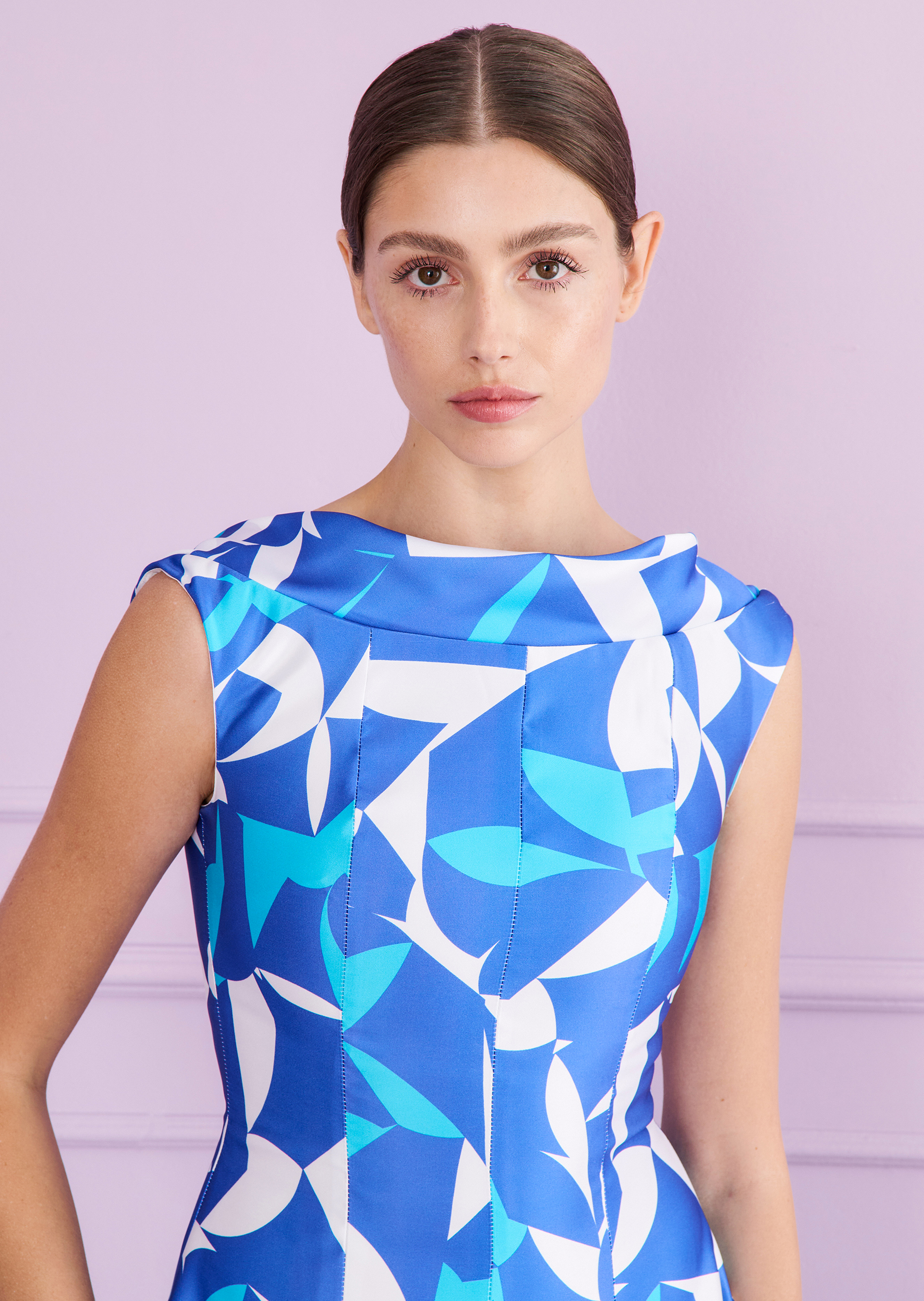 For a summer wedding in the open air or an elegant birthday picnic in the park: Crafted from beautiful printed duchesse, this midi dress is an invitation to celebrate summer. Through the cheerful print alone! In addition, this fit & flare dress, which is cut in panels with side slash pockets, conjures up a stunning waist and hips then opens out into a wide, swirling skirt. Perfect for a quick dance in the open air. Team with flat sandals or heels – and bring on the summer.