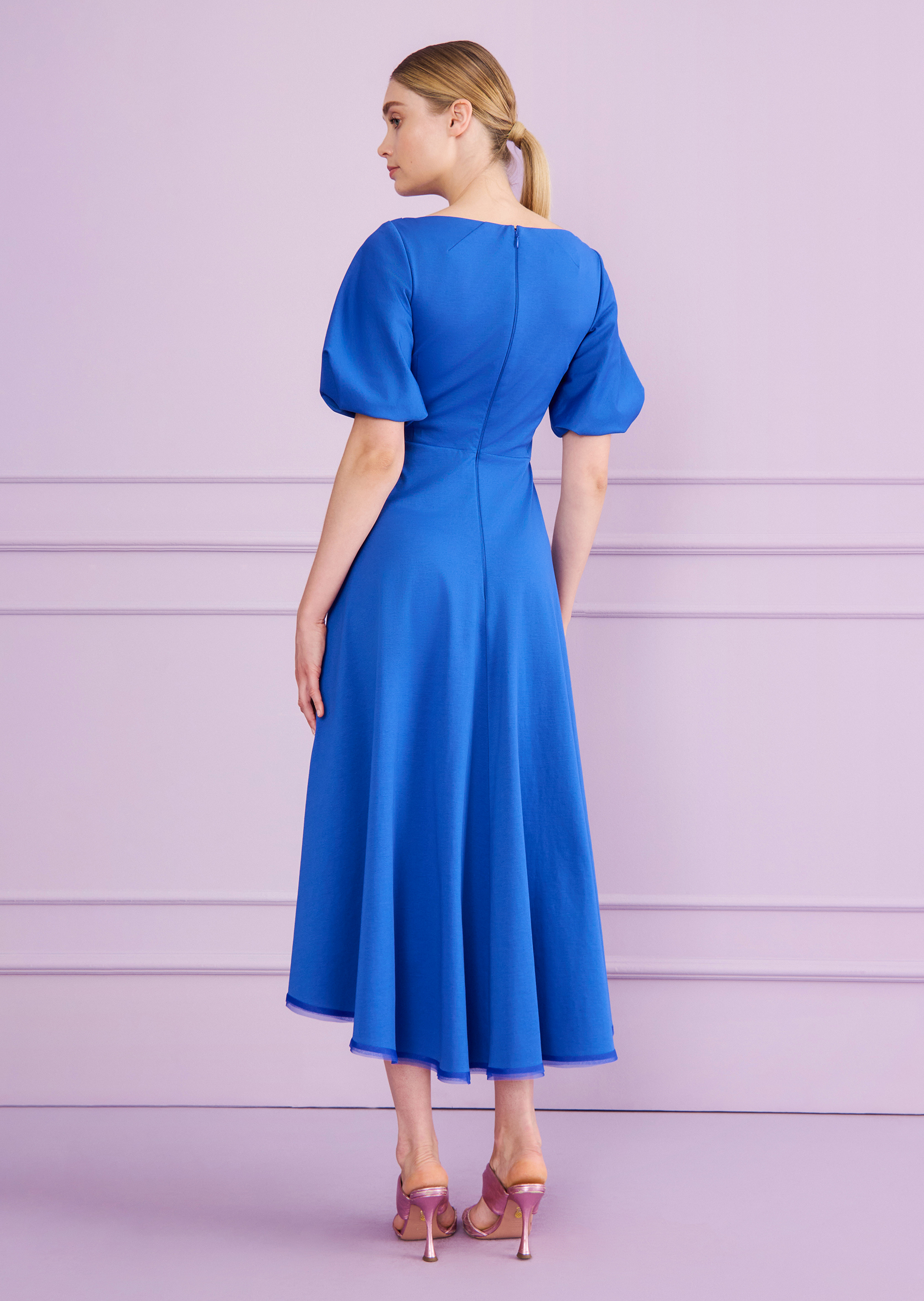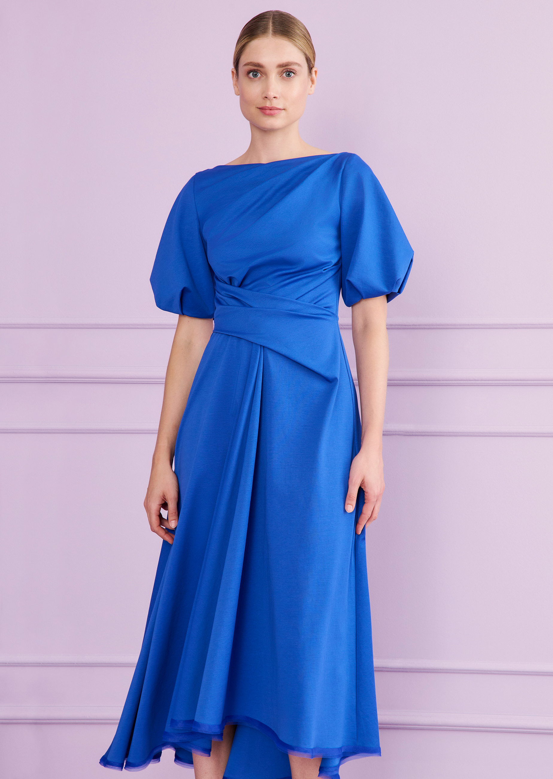 Effortlessly elegant… This midi dress gets you ready for the day in no time. With its high neckline, cinched waist, and flowing mid-length skirt, it’s a polished choice for the office, casual outings, or even formal appointments. Crafted from our luxurious Punto Milano Cotton, the fabric feels wonderfully comfortable while offering an air of understated sophistication. The gently bloused sleeves add a refined twist without going over the top. The result is a look that’s stylish and current, yet versatile enough to carry you through multiple seasons with ease. Best of all? This dress flatters women of all ages and body types.