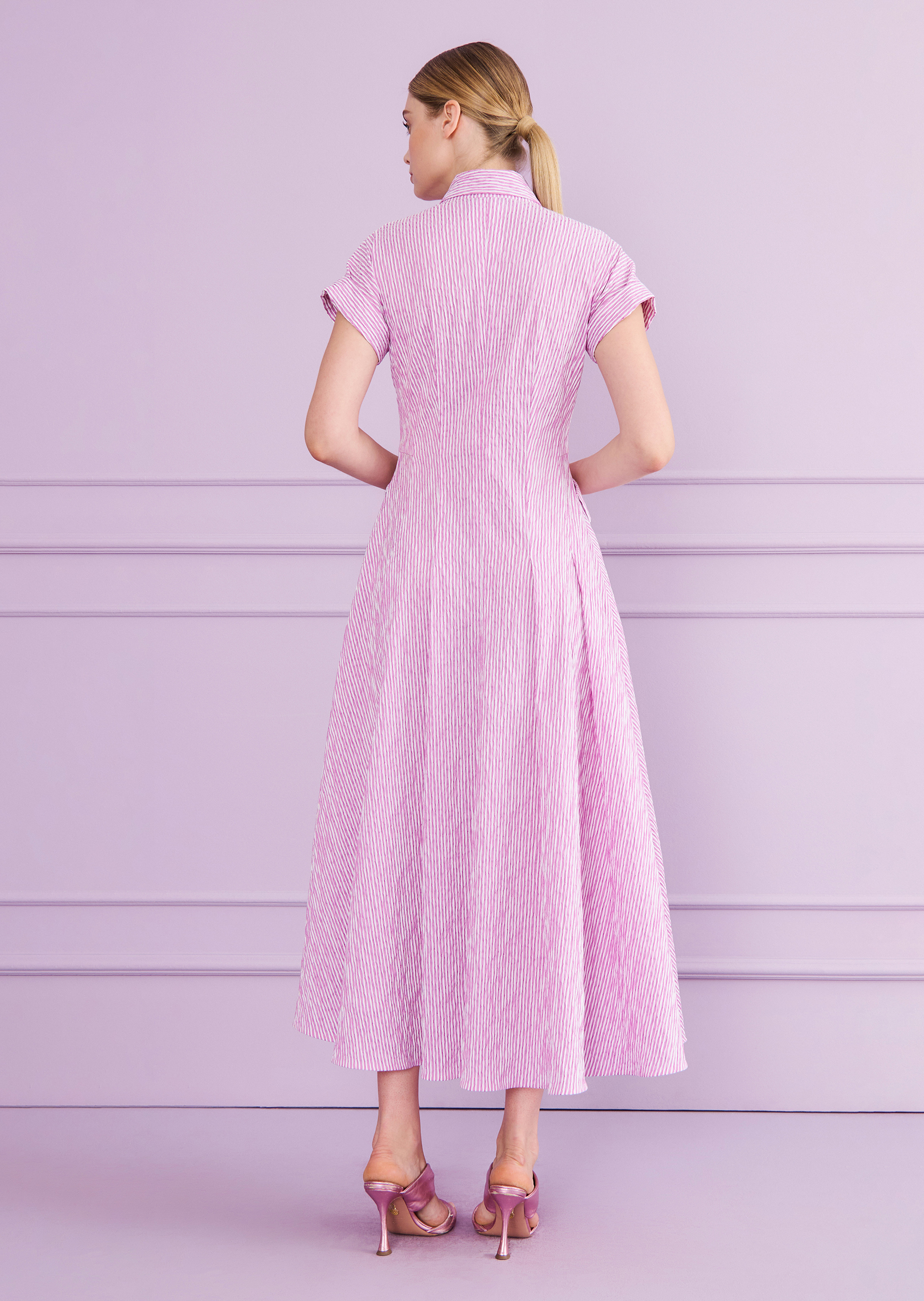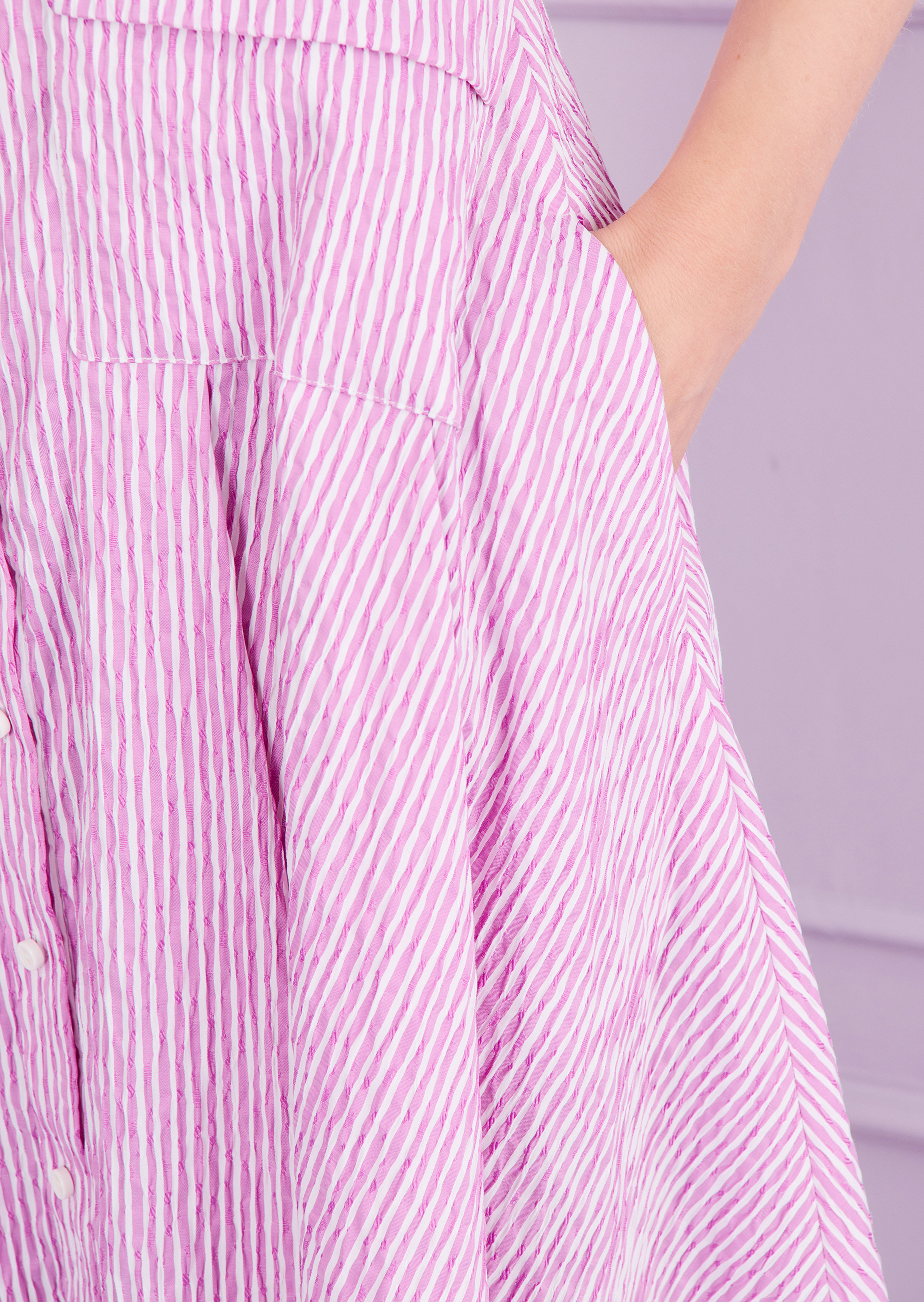 midi dress made of seersucker, color roseberry purple