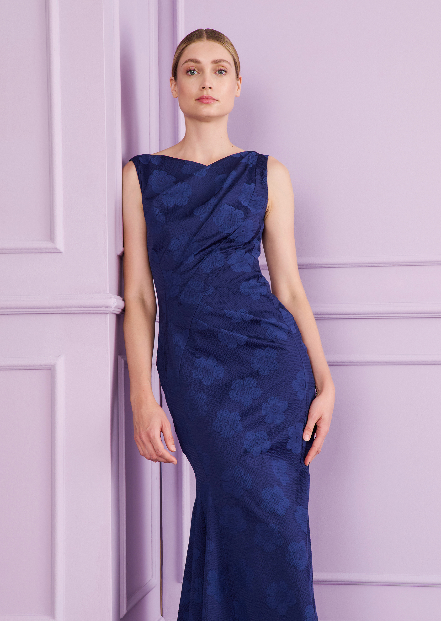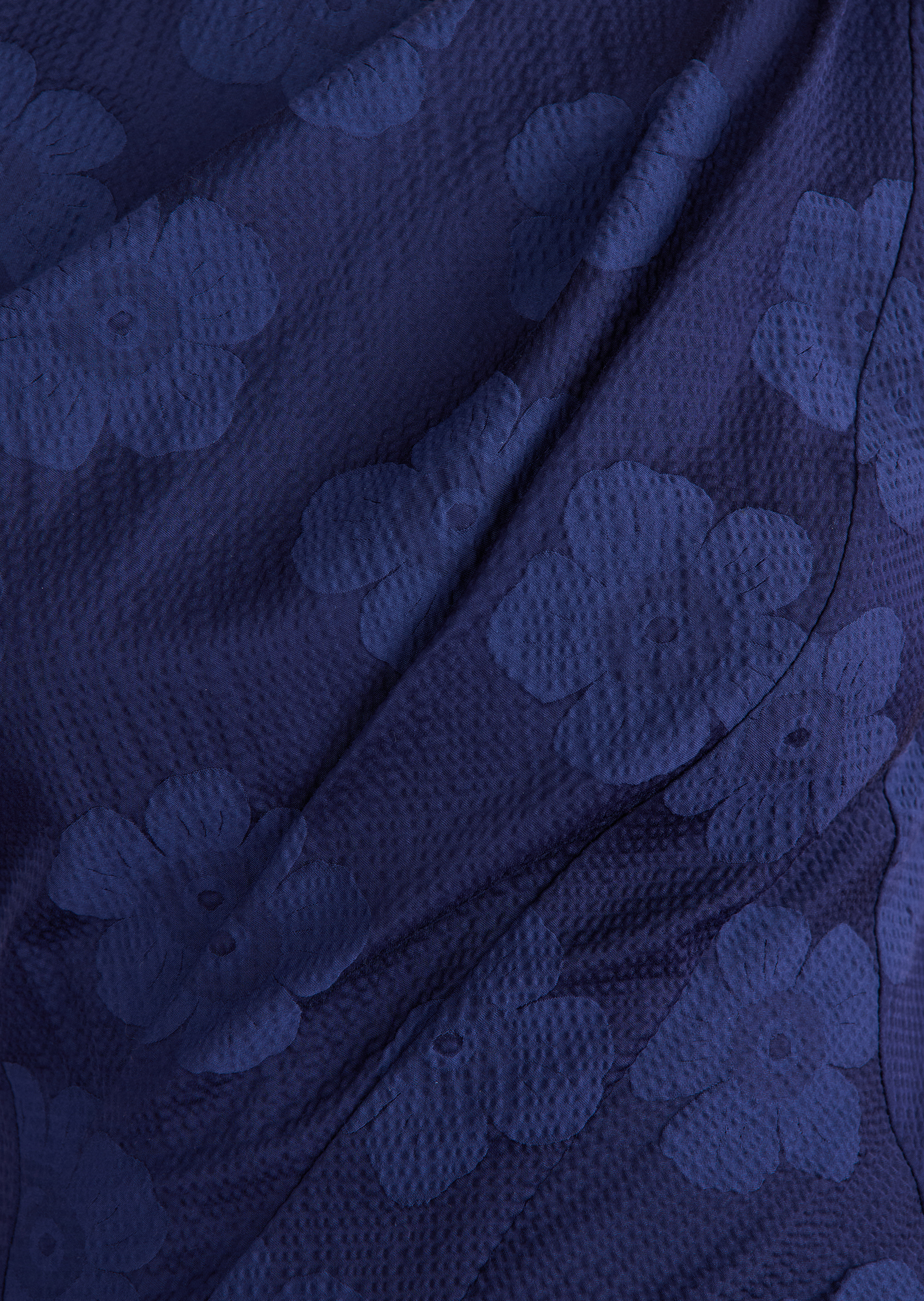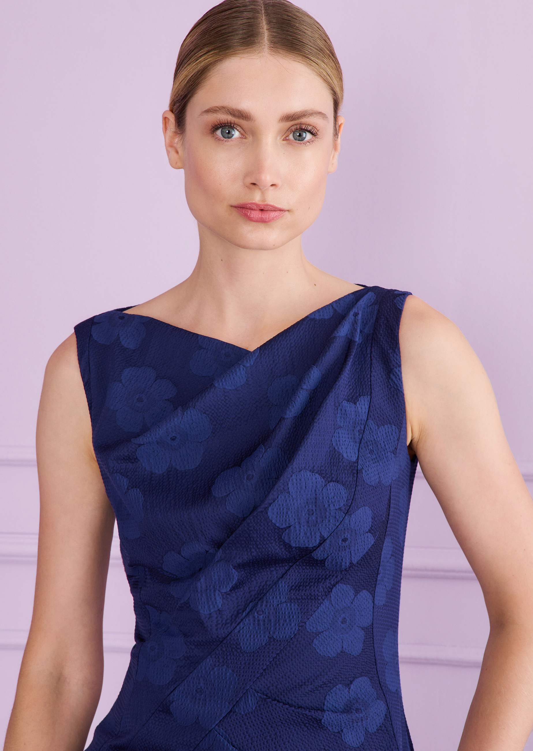 Effortless style, reimagined: This versatile midi dress is an instant wardrobe win. Designed to gently trace the silhouette, it combines understated elegance with a relaxed floral fabric for a look that feels both refined and easygoing. A modest neckline and short cap sleeves add a touch of casual chic. The cleverly pieced construction – almost like a fabric mosaic – echoes the fluid design language throughout. A side flounce adds movement to the slim skirt and gives the dress an extra touch of charm. Style it your way: dressed down for everyday or elevated for a more festive occasion like a christening or an evening event.