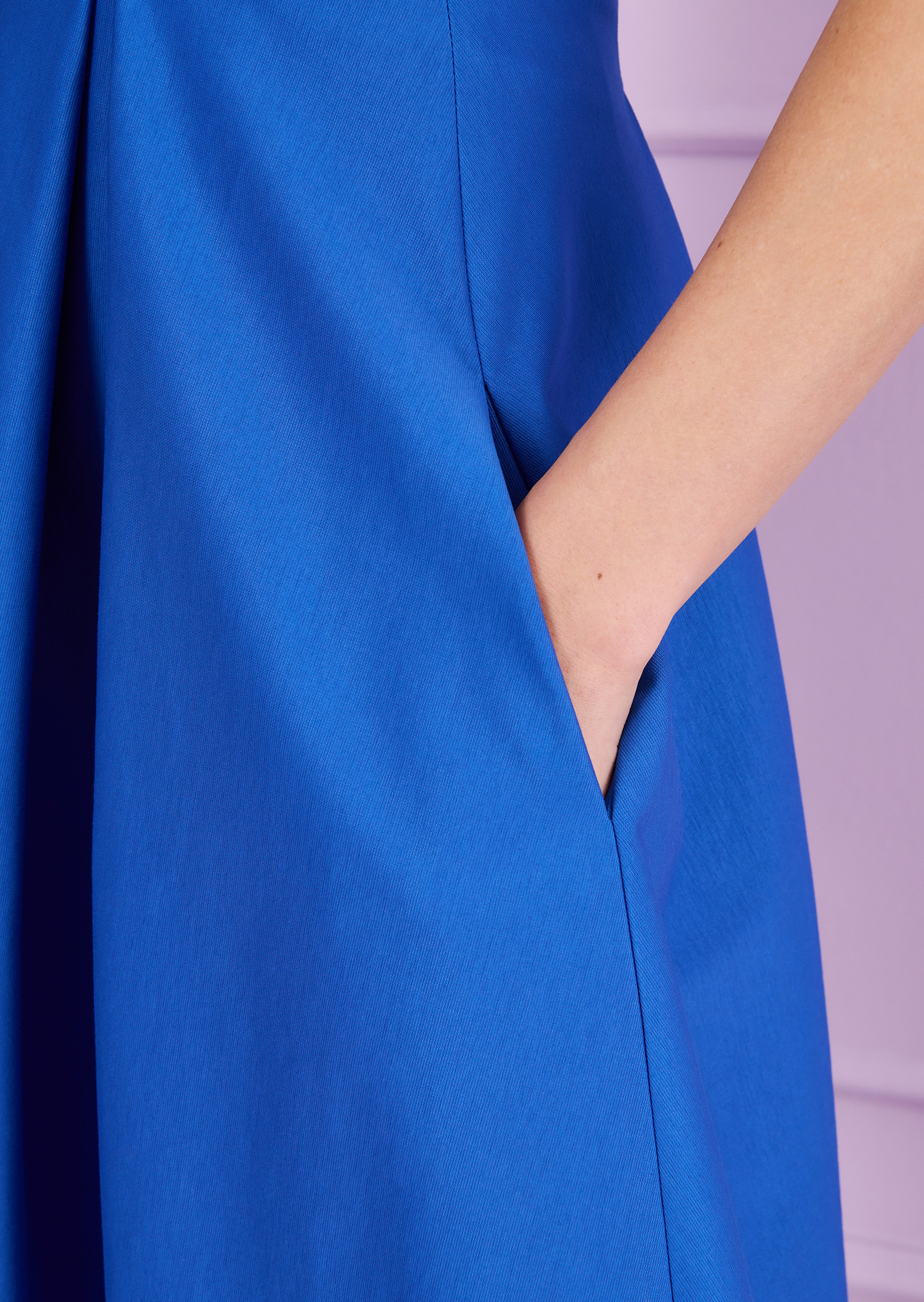 This season, our classic skirt makes its debut in a knee-length version made from no-fuss cotton jersey. This popular favorite is destined to become your go-to all-purpose piece for everyday wear. The inverted pleats allow for an incredible range of movement. Yet the silhouette doesn’t appear bulky. Thanks to the fabric, you can style this look in a number of different ways. Pair it with a chic blouse for work, with light summer knitwear for an art fair, as a suit with a blazer for your business presentation, or even with a shimmery top and stilettos for an evening out at the theater. However you wear it, this vibrant skirt will make you a style icon in any situation.