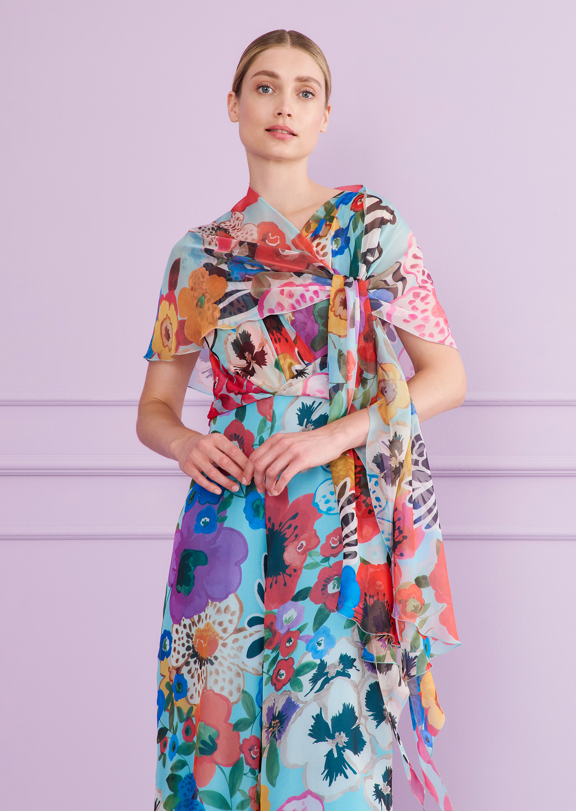 stole made of painterly bloom chiffon, color seafoam green
