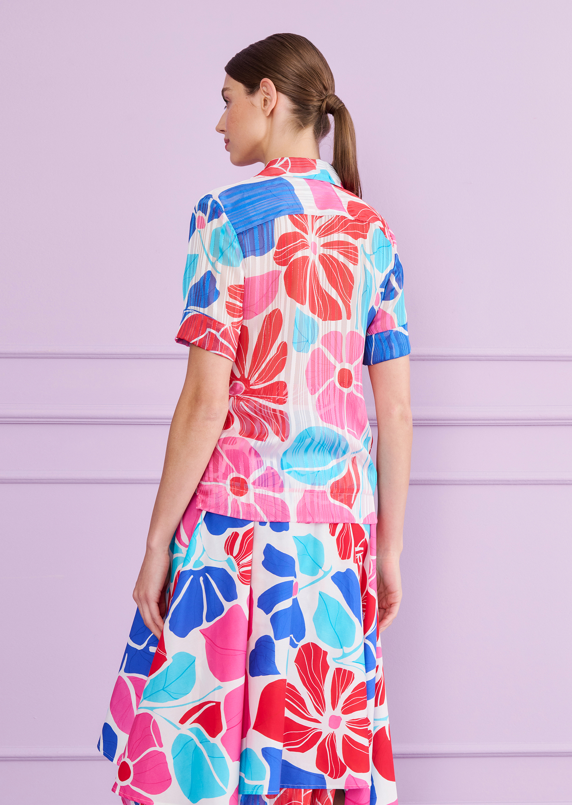 True Collars! This casually cut shirt with a full-length button placket will keep you cool and breezy this summer. With its straight silhouette and short sleeves, you’ll stay cool even on the hottest days. We made this piece in a summery, subtly shimmering pekin fabric, that is wonderfully lightweight and eye-catching with a charming floral print. You’ll always stand out in this look, whether you wear it on vacation or in everyday life with simple white shorts or even with a matching midi skirt.