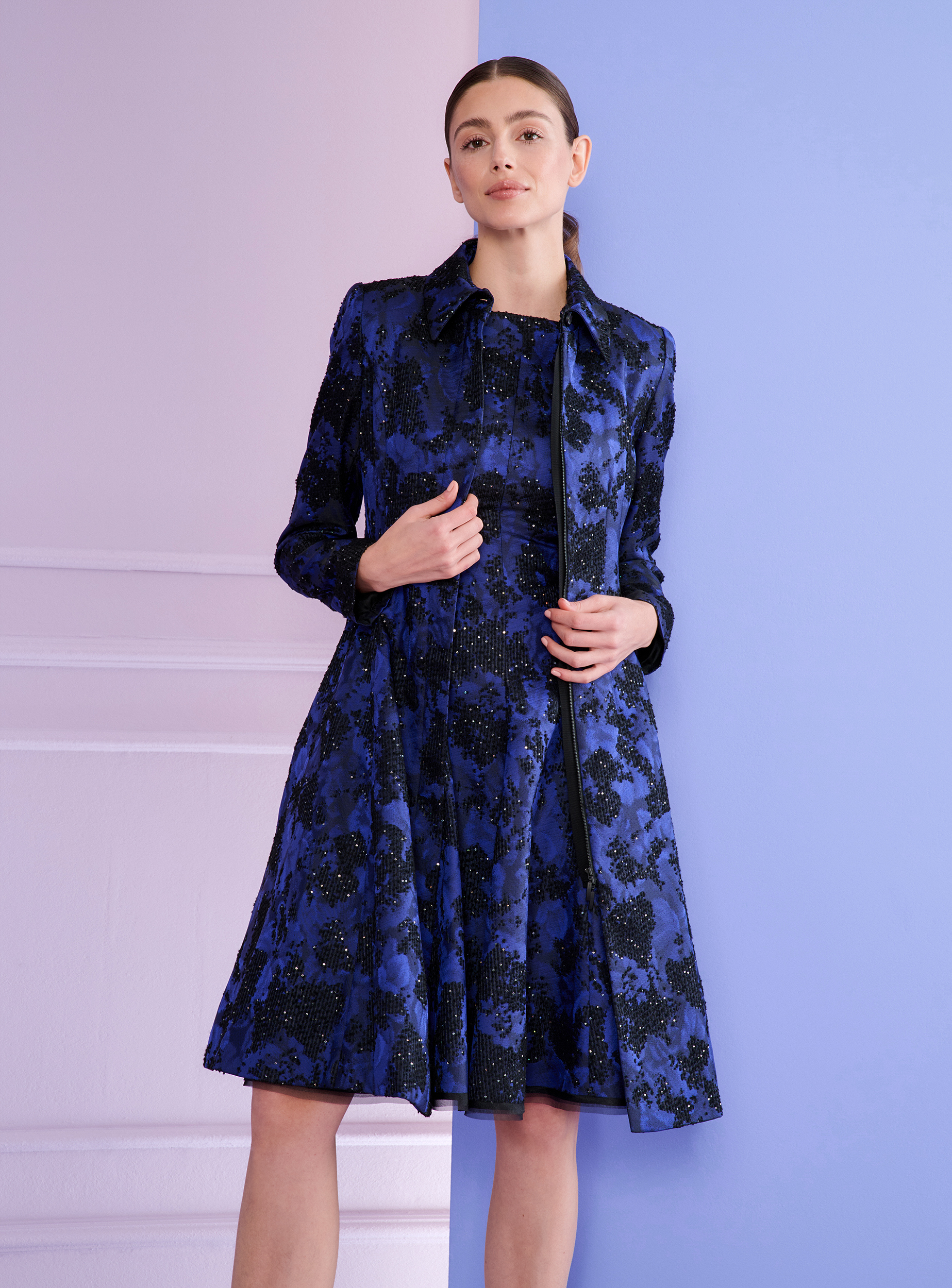 sagen auch sie als hochzeitsgast „ja, ich will!“ – zumindest wenn es um ihren spektakulären look geht. mit diesem cocktailklassiker gelingt ihnen auch als gast der große auftritt, ohne dass sie der braut die show stehlen. die silhouette ist elegant – der hochgeschlossene u-boot-auschnitt, kombiniert mit einem schwingenden rock, der sanft ihr knie umspielt. Dazu glänzt sanft das schöne Material, ein jacquard. während der trauung kombinieren sie dazu einen passenden mantel und dezente pumps. zur party wechseln sie dann in sandaletten in einer leuchtenden kontrastfarbe.
