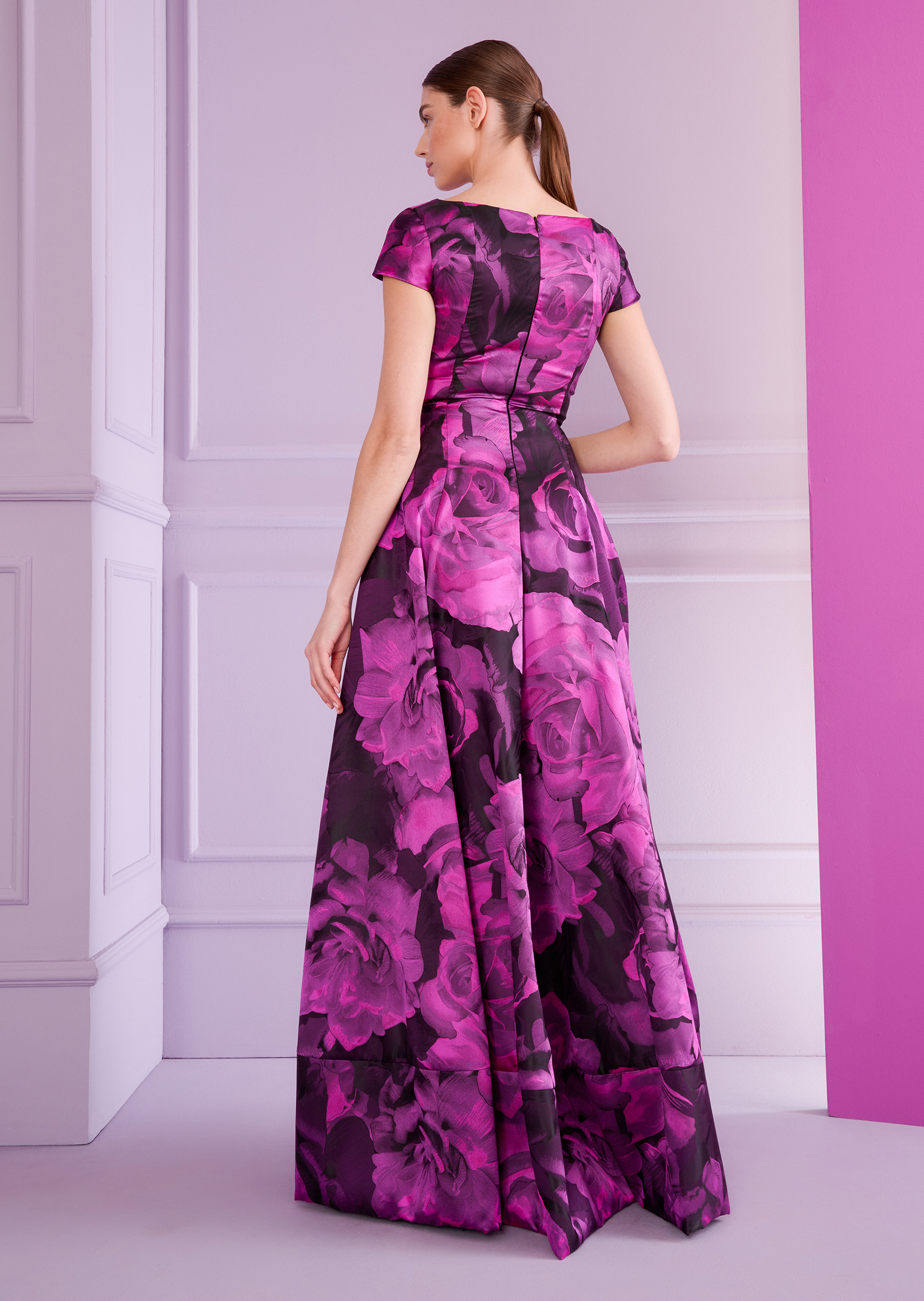 langes kleid aus rose jacquard, farbe fuchsia pink