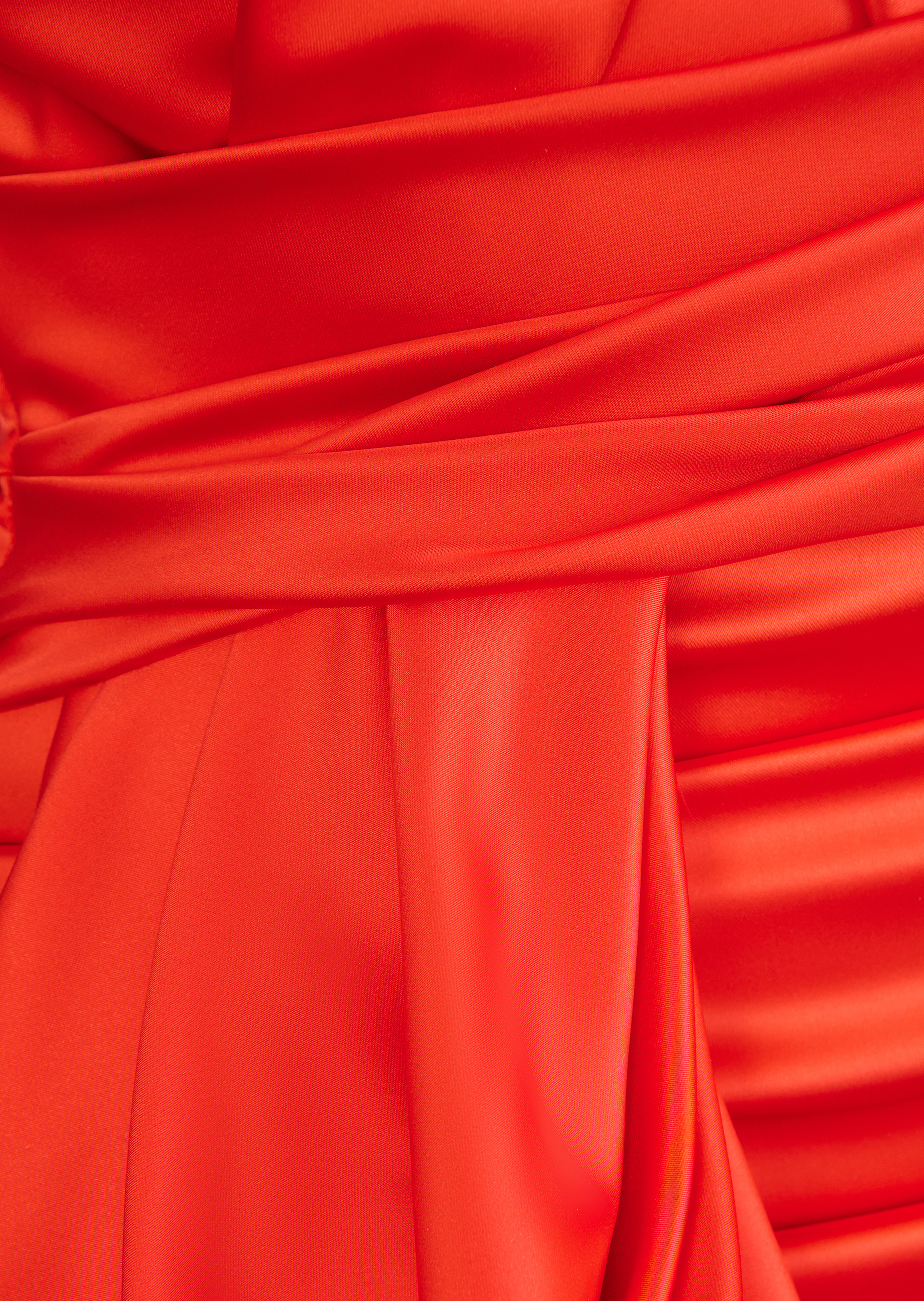 "Bowtiful" Statement! Unser neues Abendkleid hat einiges zu bieten, doch besonders das raffiniert konstruierte Oberteil mit einem extravaganten Schleifendetail sticht sofort ins Auge. Zusätzlich wird der Rücken durch einen eleganten Ausschnitt akzentuiert, der tief genug ist, um verführerisch zu wirken, aber nicht so tief, dass das Tragen eines BHs unmöglich wäre. Der figurbetont geschnittene Meerjungfrauenrock verleiht dem Kleid eine wunderbare feminine Wirkung. Gefertigt ist dieses Kleid aus einem luxuriös glänzenden Stretch Satin Duchesse – perfekt für aufregende Nächte, deren Ende noch ungewiss ist.