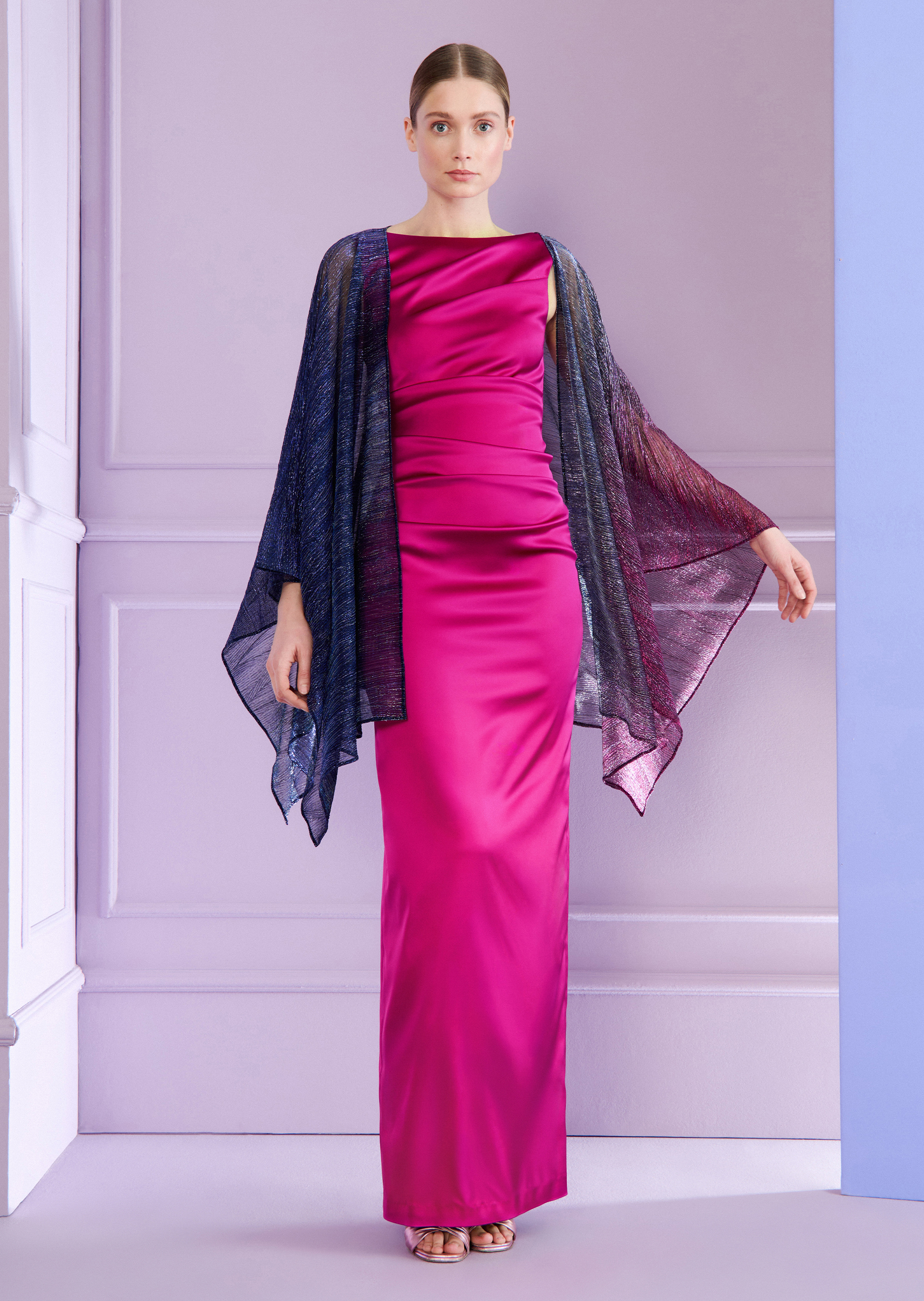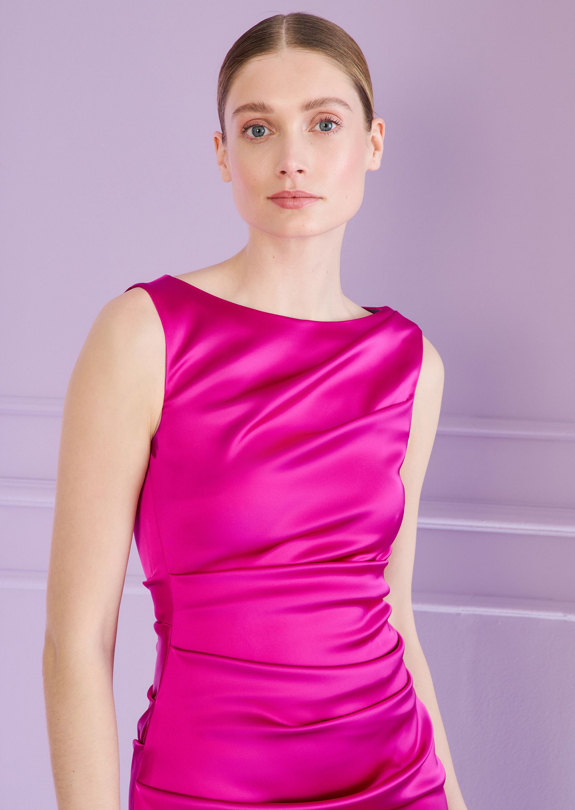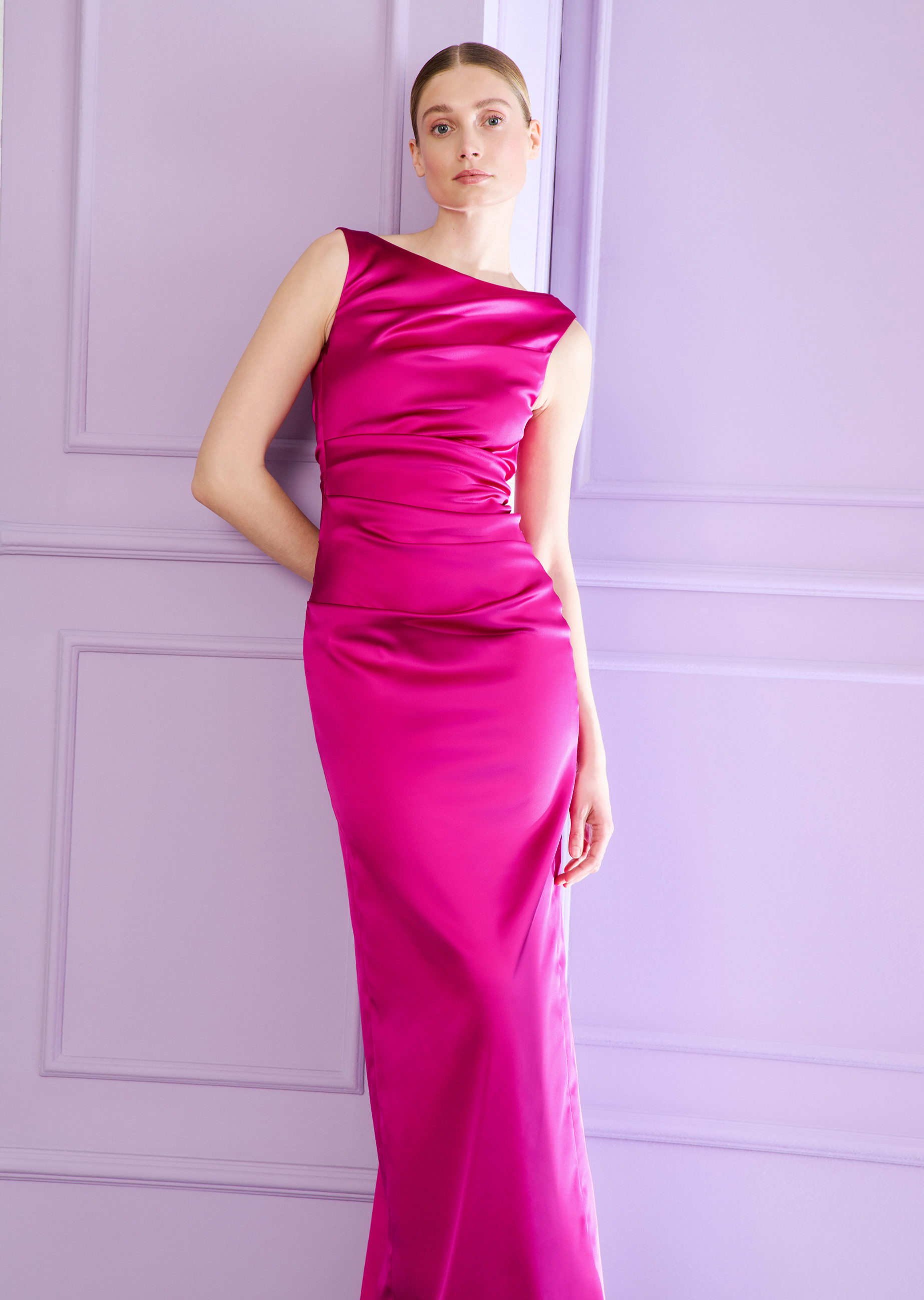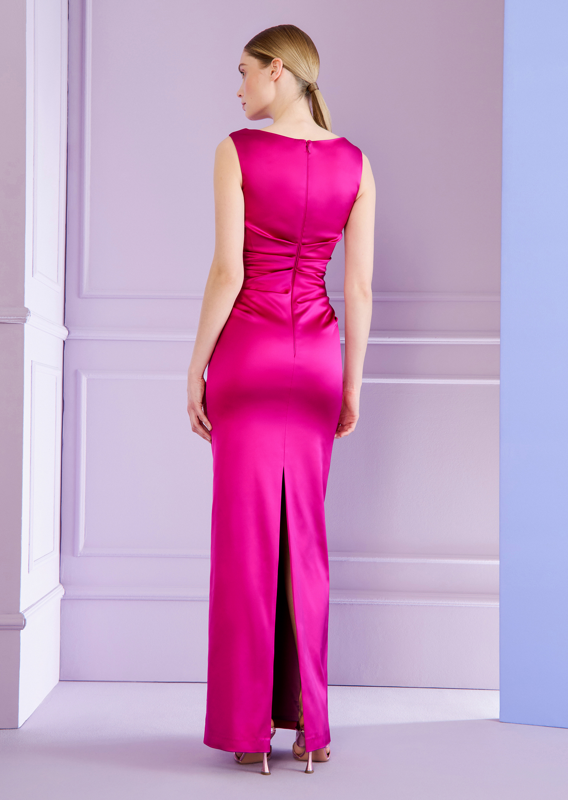 langes kleid aus stretch satin duchesse, farbe pink