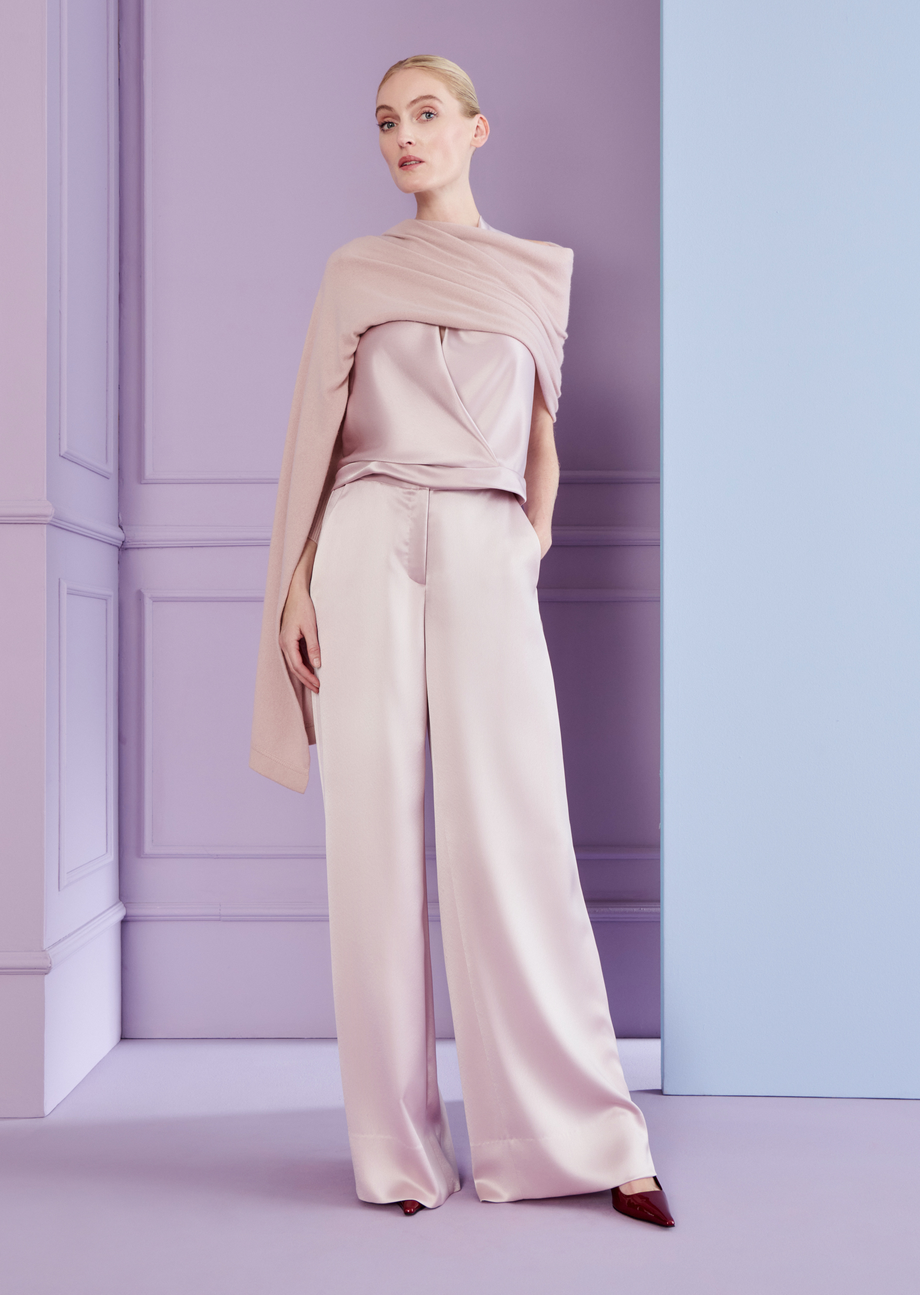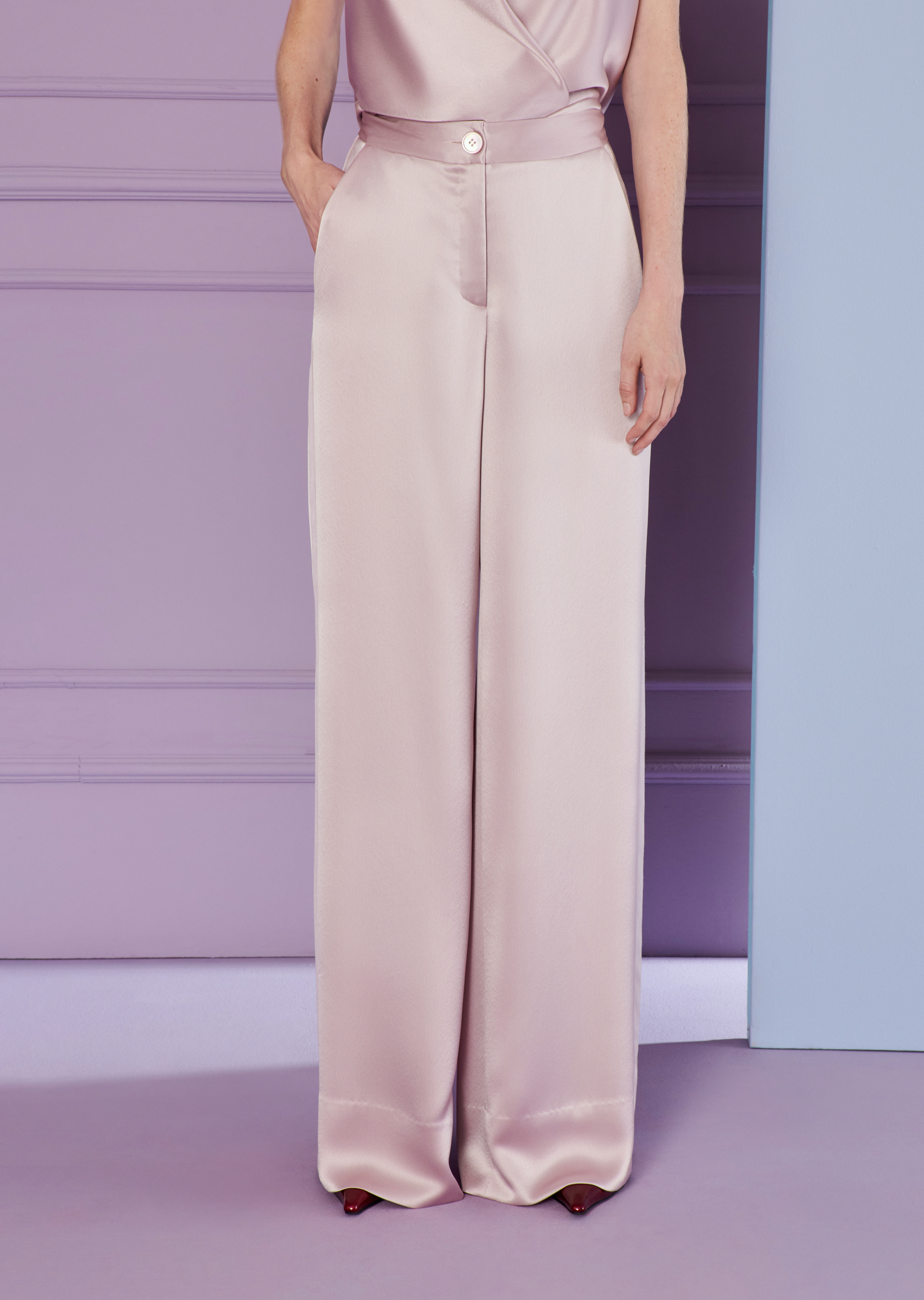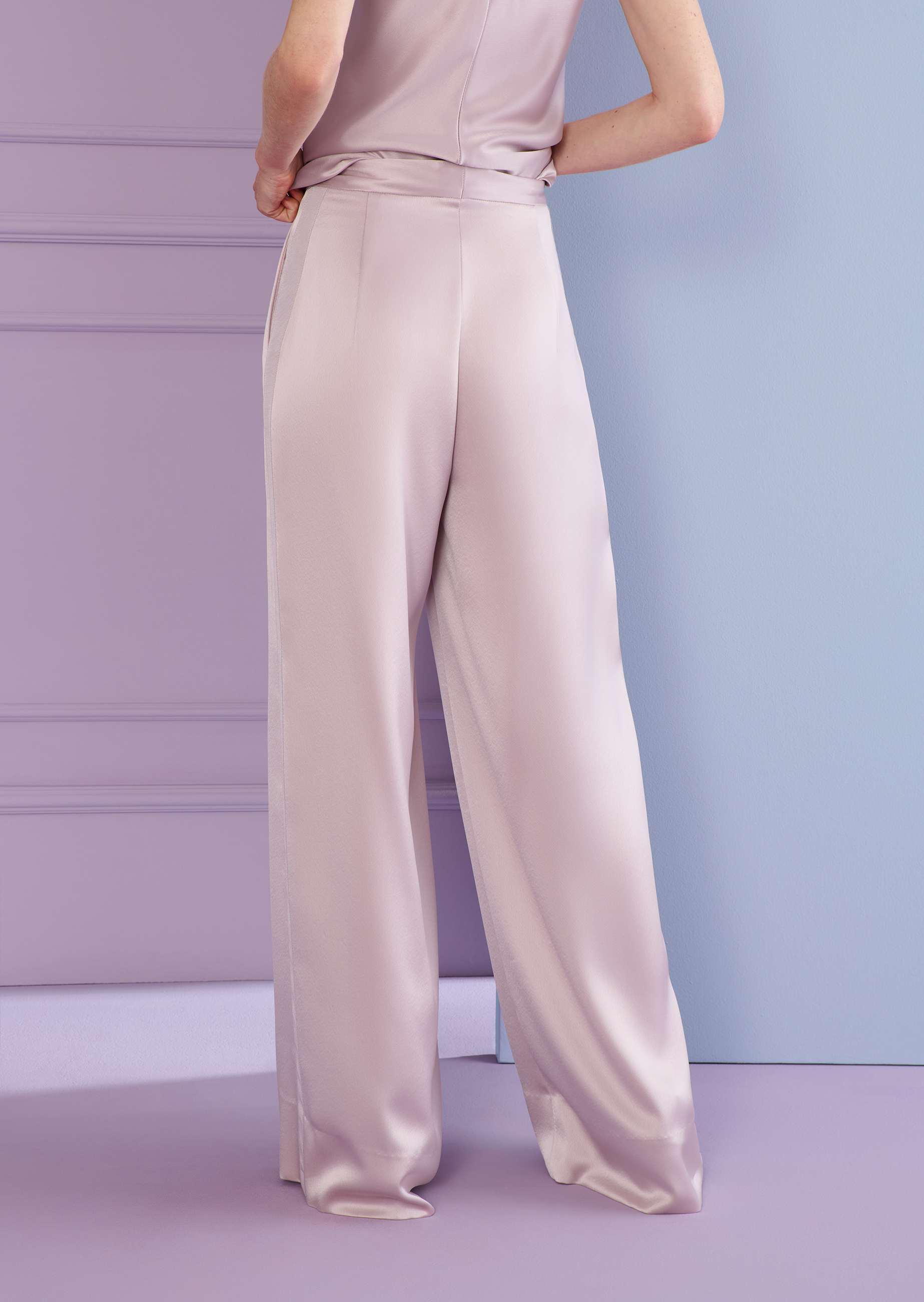 hose aus crêpe satin, farbe marmor rosa