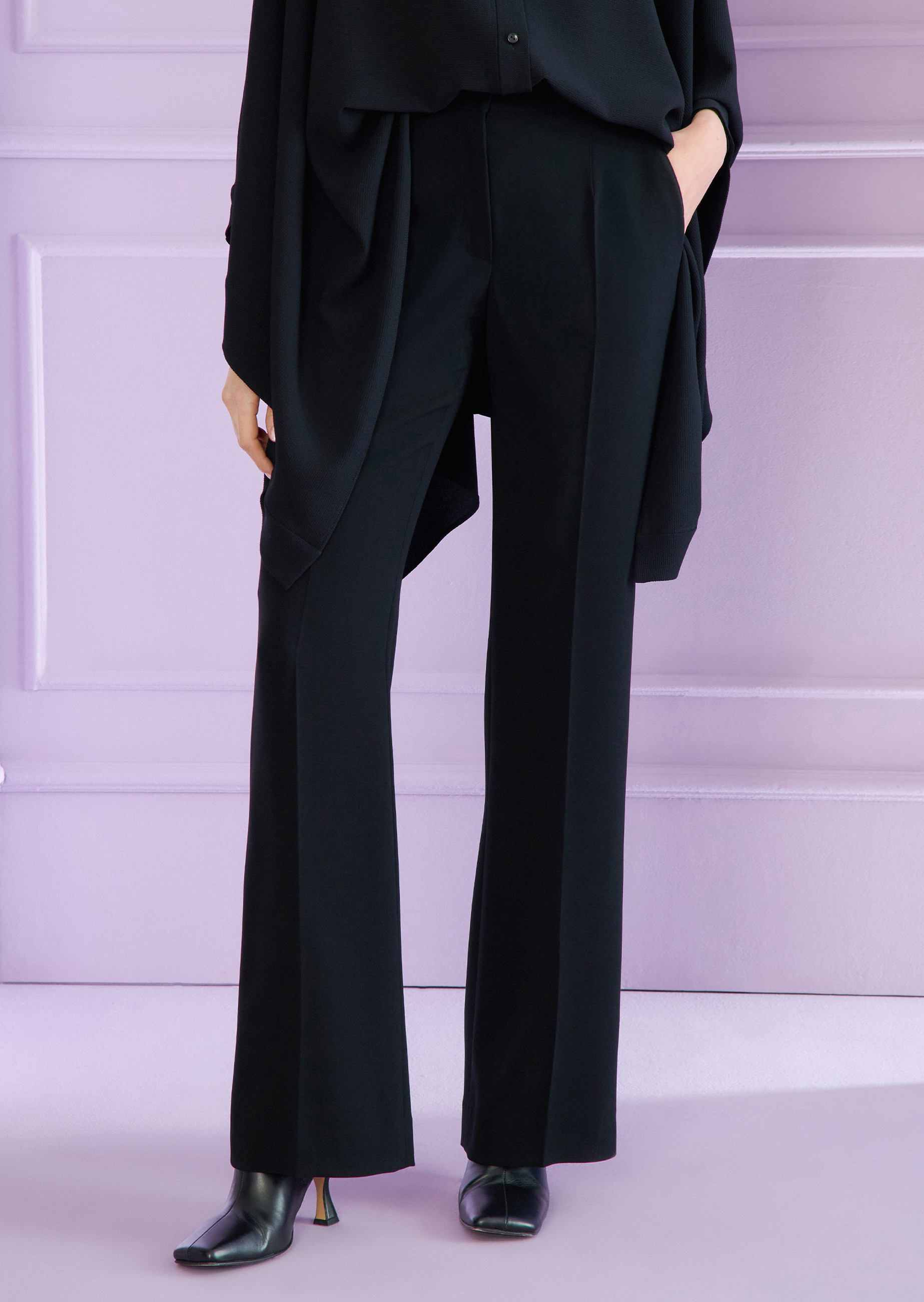 beine wie ein supermodel! unsere elegante hose aus angenehmem stretch triacetate crepe fließt förmlich an ihnen herunter wie ein schmeichelhaftes kompliment — insbesondere weil sie um den po herum knackig geschnitten ist. praktische eingriffstaschen als auch hosenfalten machen den tailoring look obendrein funktional. tragen sie unseren style in kombination mit dem passenden blazer ins office oder zur nächsten wichtigen kunstmesse. aber auch zu einer bluse und flachen schuhen kombiniert überzeugen sie immer nonchalant.