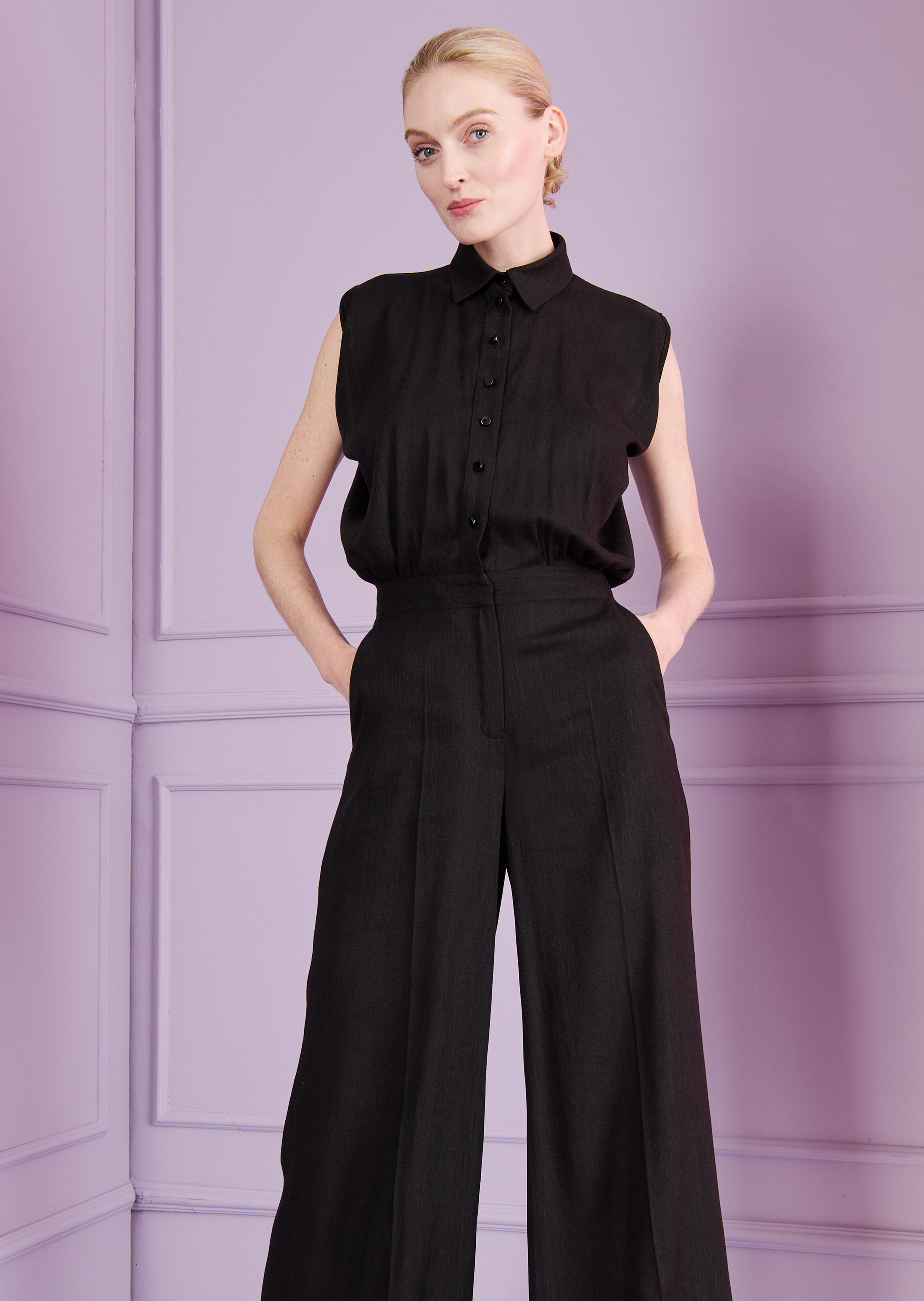 jumpsuit aus linen, farbe schwarz