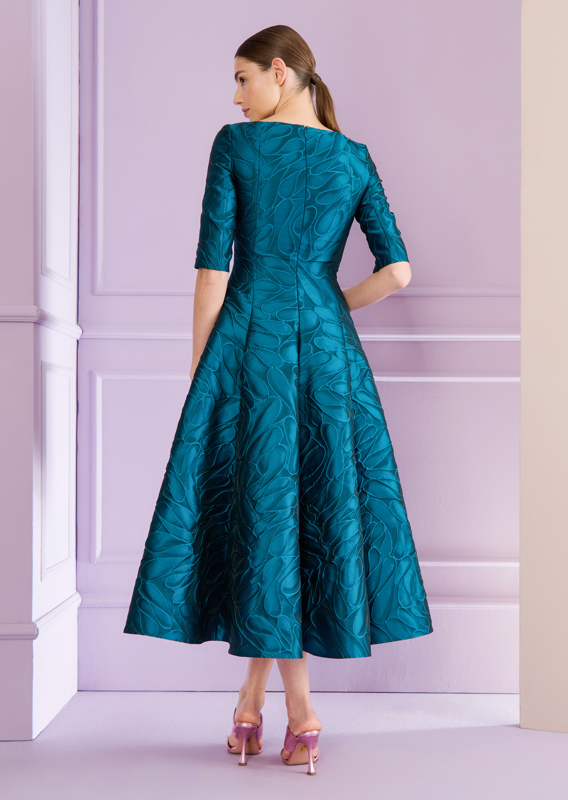 midi dress aus honeydrop jacquard, farbe dragonfly türkis