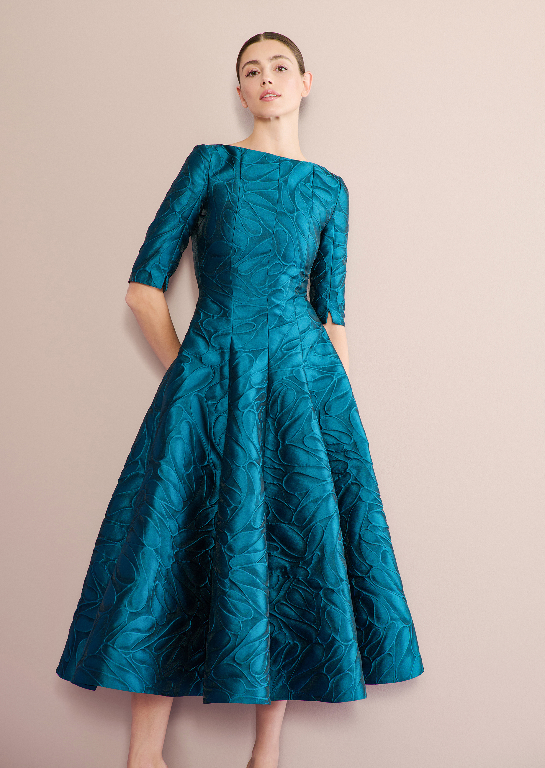 halten sie schon mal ihren shaker bereit, den dieses midikleid lässt mit retro-chic die cocktailstunde wiederaufleben. der schnitt setzt sich aus einzelnen bahnen zusammen durch die das muster dieses schönen jacquards zusätzlich variiert wird. der u-boot-ausschnitt ist klassisch und elegant und die seitlichen taschen ein souverän wirkendes gimmick. die schmale taille wird durch den ausgestellten midi-rock betont. tragen sie dazu unbedingt fesselriemen-pumps und einen eisgekühlten cosmopolitan!