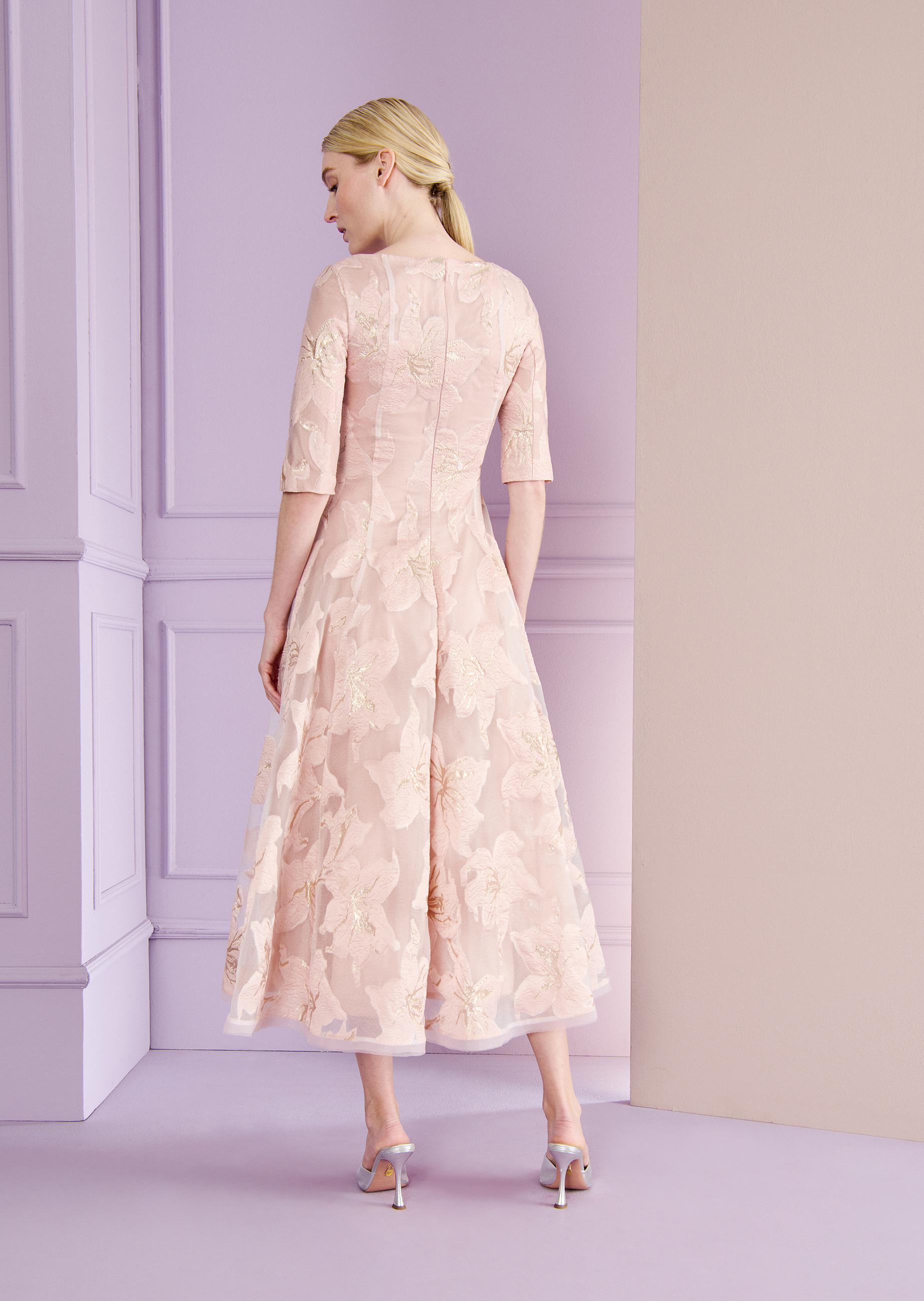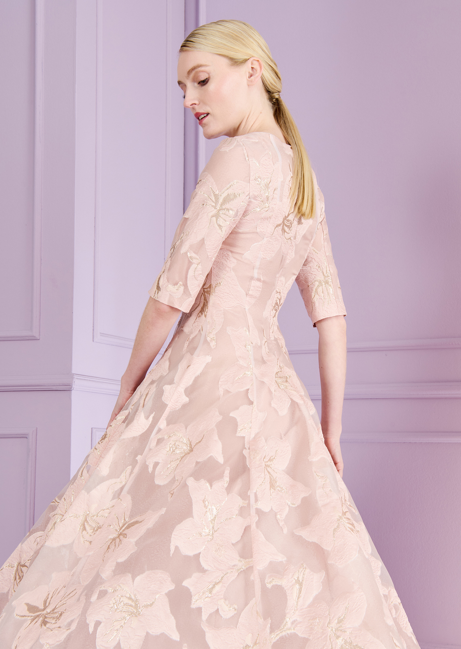 kleid aus waterlily organza jacquard, farbe marmor rosa