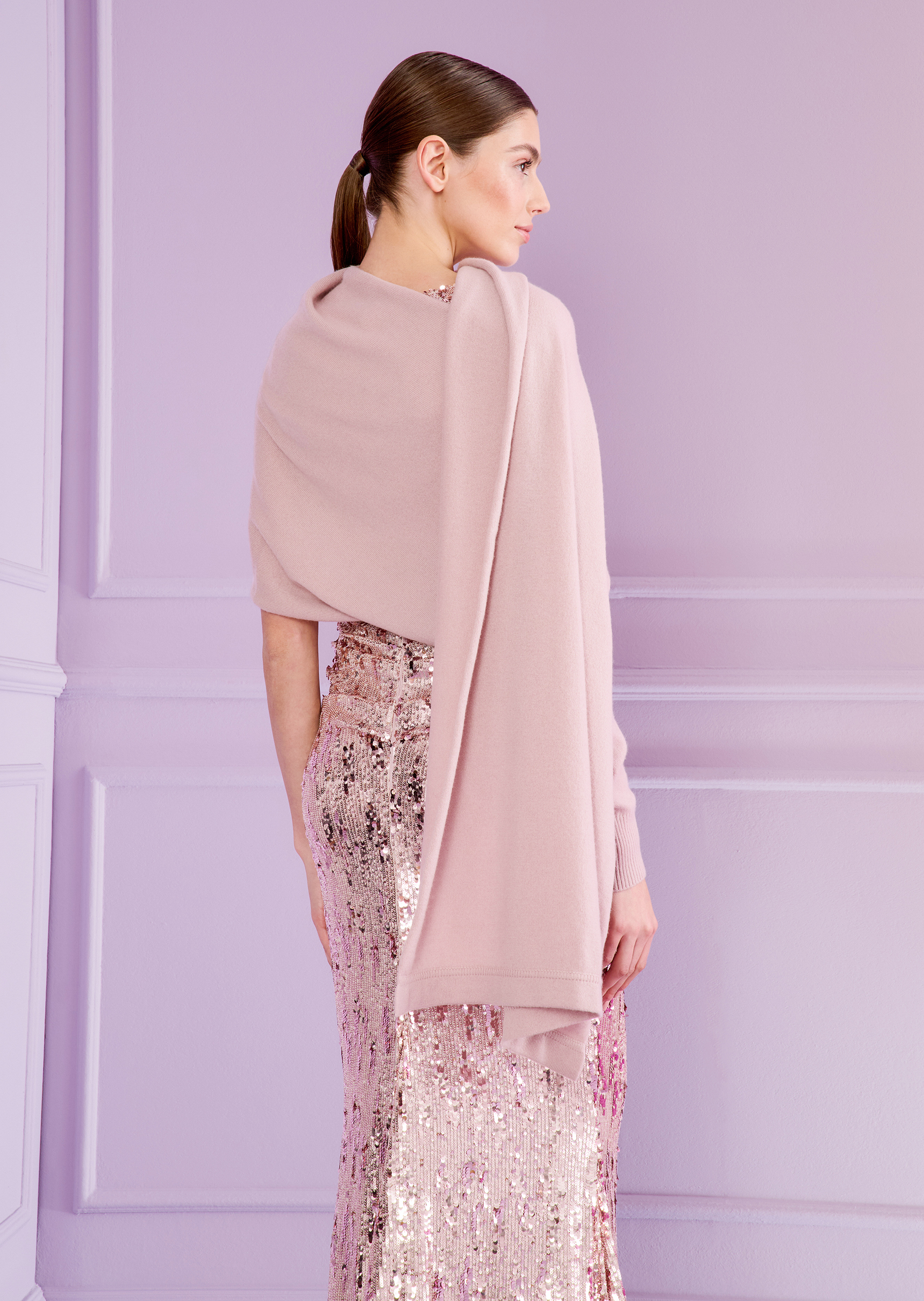 our favorit forever - die stola aus reinem cashmere rundet jeden look perfekt ab. die samt weiche qualität werden sie lieben. auf der einen seite schlüpfen sie in den langärmeligen arm während sie die andere seite elegant um schulter und hals legen. ein allrounder für day looks oder abendkleider.
