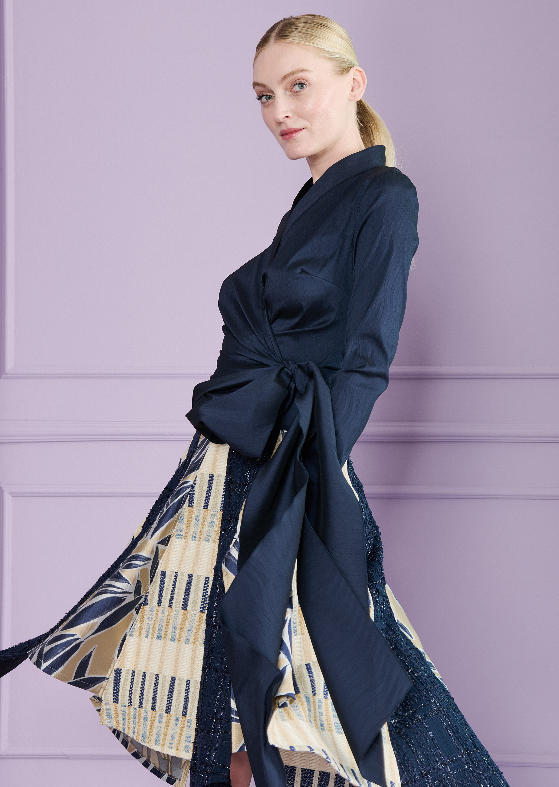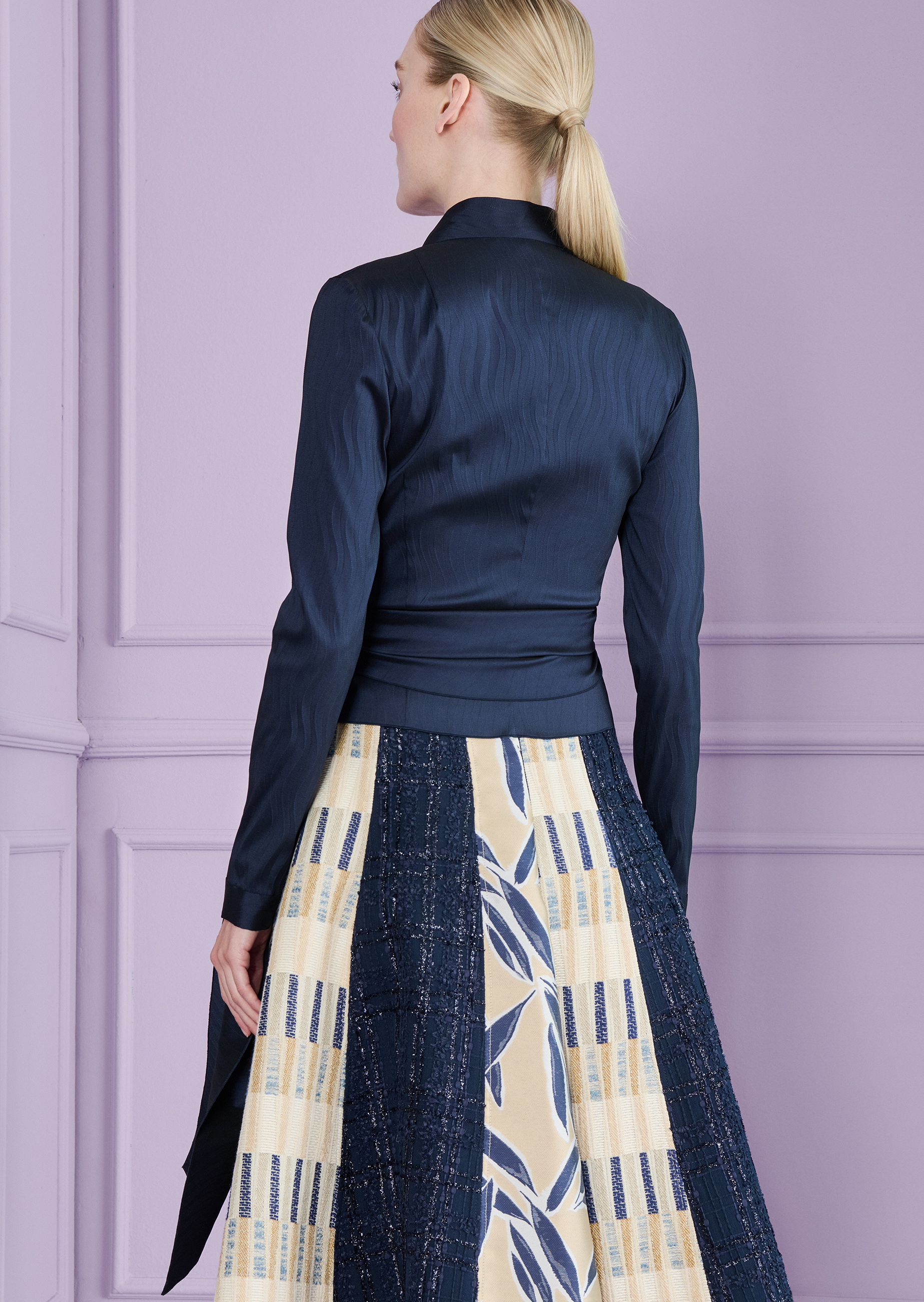 Dank des unkomplizierten Wickel-Schnitts schmeichelt diese Bluse mit langen Ärmeln einfach jeder Figur. Eng in der Taille geschnürt, zaubern ihre Raffungen jeder Frau eine Sanduhrensilhouette. Wir haben dieses Oberteil aus einem angenehm leichten Stretch Taft gefertigt. So stylen Sie Ihr neues Lieblingsteil ganz einfach mit lässigen Jeans im Alltag oder mit einer einfachen Jeans im Alltag als auch zum schicken Abendrock.