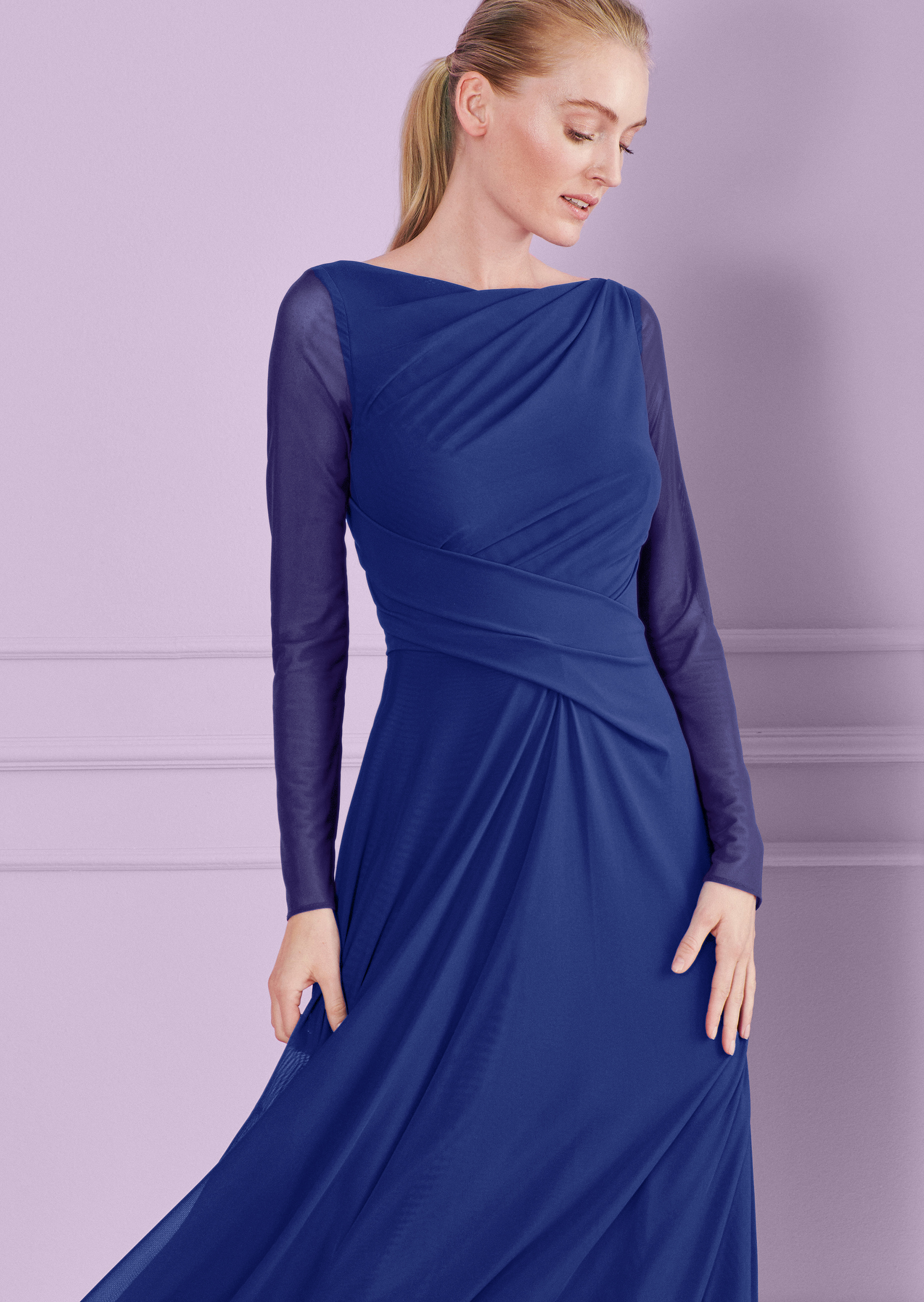 „Dieses Modell sollte jede Frau bei ihrer Bestellung zusätzlich mitbestellen“, sagt Adrian Runhof über eines seiner absoluten Lieblingskleider. Es kommt in dieser Saison in einer modischen Midi-Länge, herrlich jugendlich und feminin in jedem Alter und jeder Größe – und obendrein passend für die kühleren Stunden dank des leichten Stretch Tüll und den langen Ärmeln. Ob im Job, beim Dinner, beim Kunstcocktail, oder selbst im Theater: Kombinieren Sie dieses Midikleid mit Heels und peppigem Schmuck. Selbst mit Bikerboots und Lederjacke können Sie absolut nichts falsch machen.