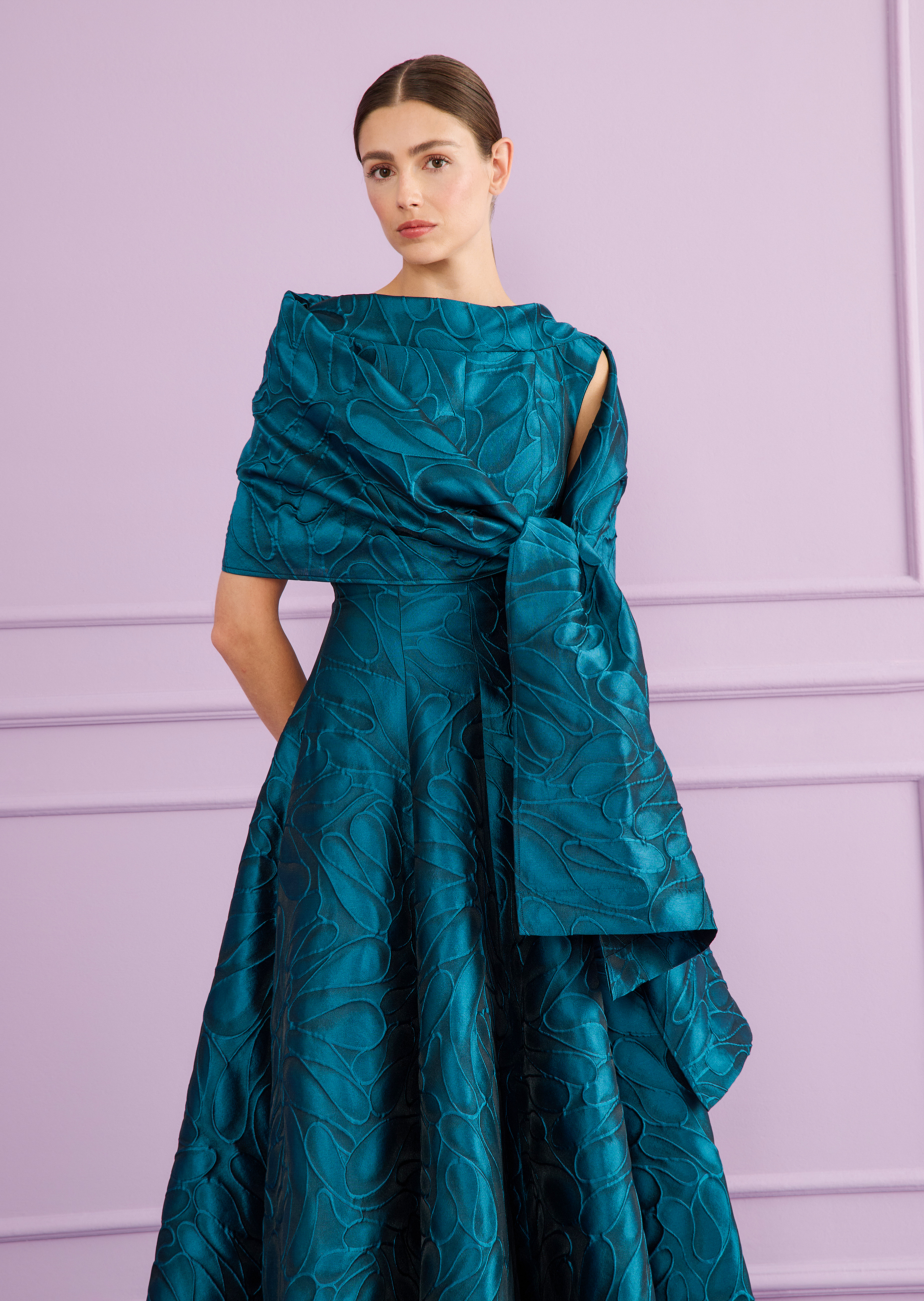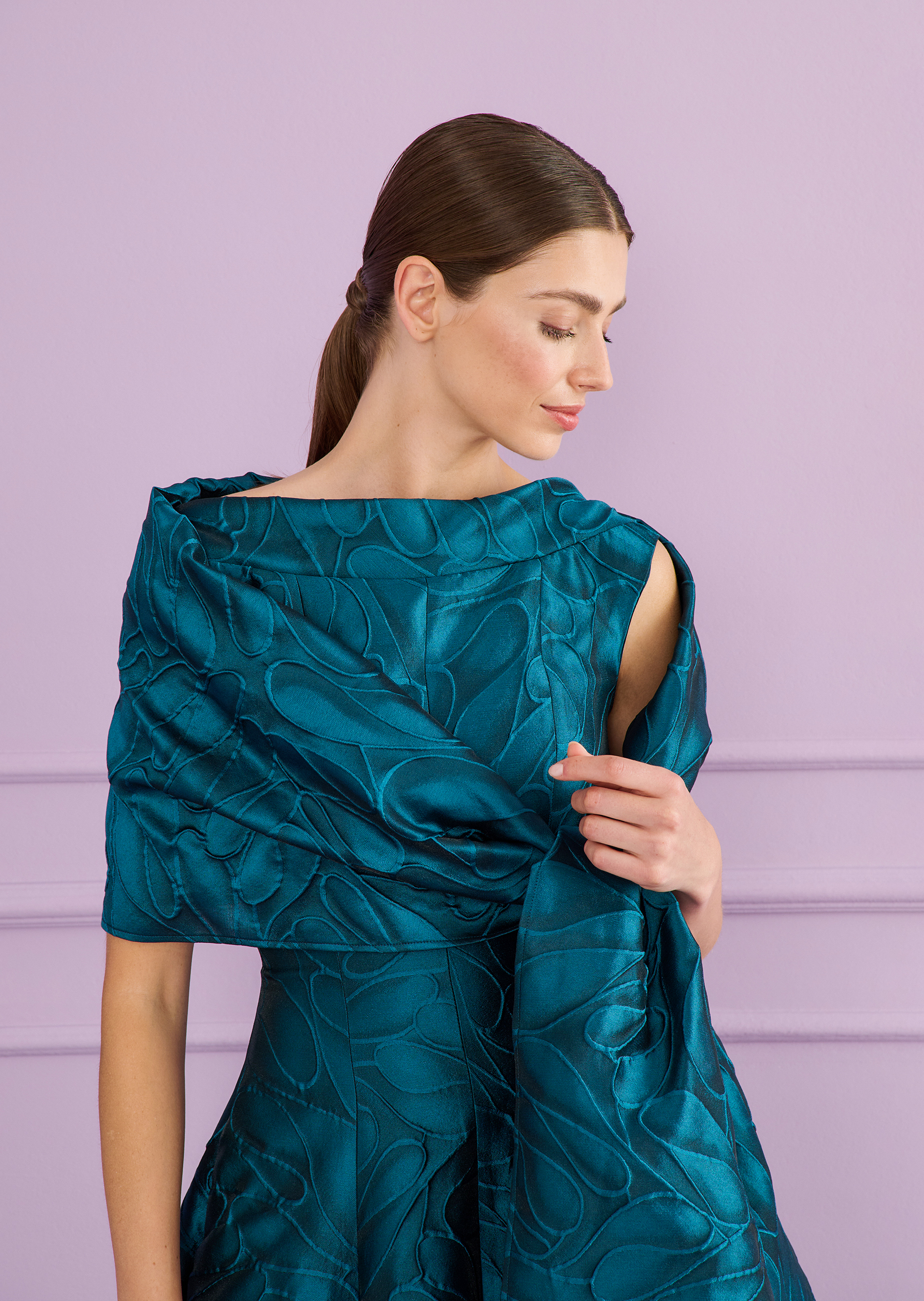 this stole, made from an elegant honeydrop jacquard, is so glamorous and elegant, you won't need anyone else to caress your shoulders on those brisk, balmy evenings. it is also the perfect accessory for the dance floor. combine with our matching dresses or gownsor simply style with a more basic kind of evening style.