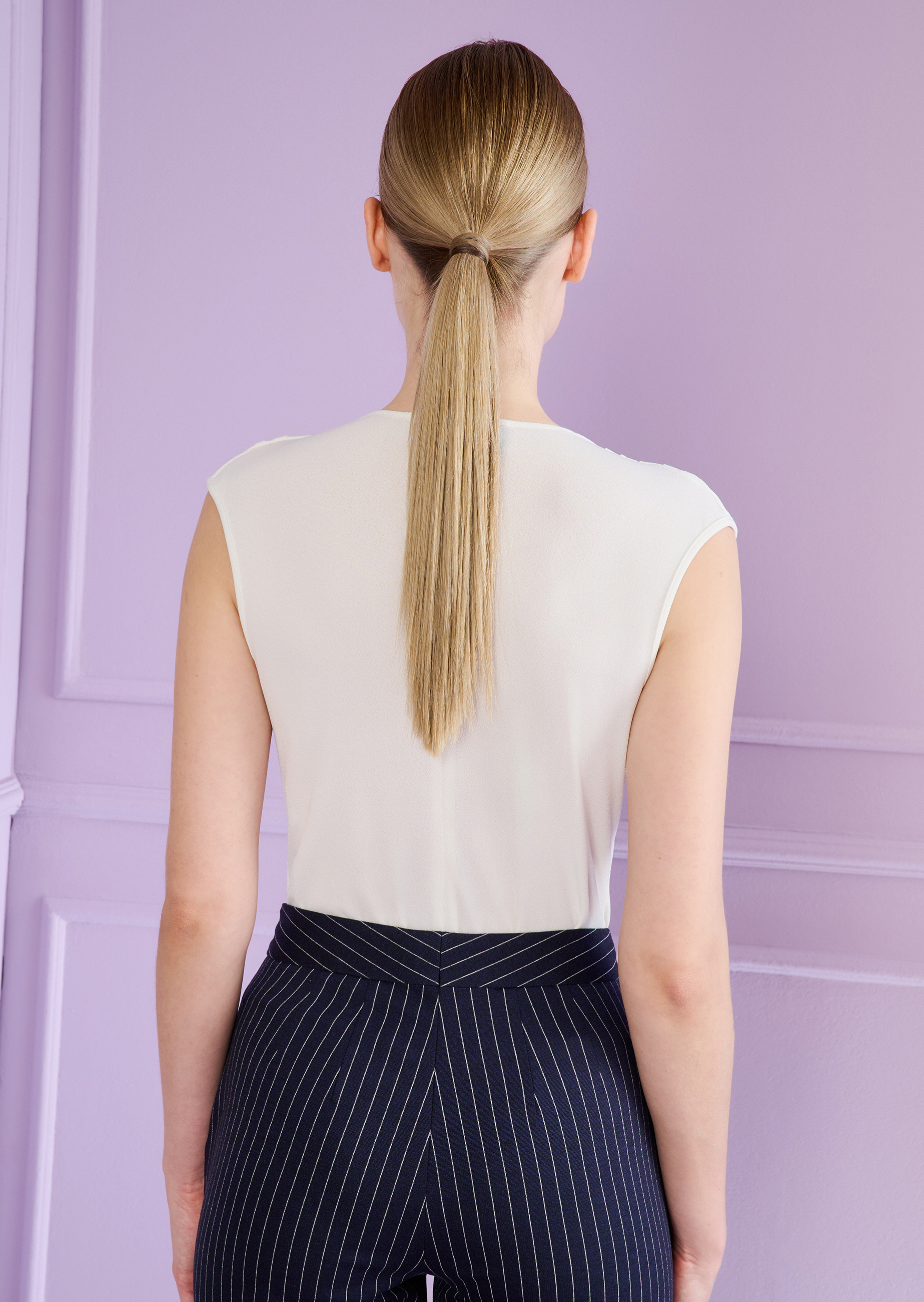 we’re celebrating the comeback of the body! because with such a perfect piece everything stays exactly where it should be. on top of that, this must-have is extremely versatile. this top in an exciting wrap-around look will not only wear well with a colorfully printed maxi skirt, but also anytime, anywhere. in the office under a pantsuit, to your favorite jeans, with a pencil skirt, or in the evening with a more open décolleté...