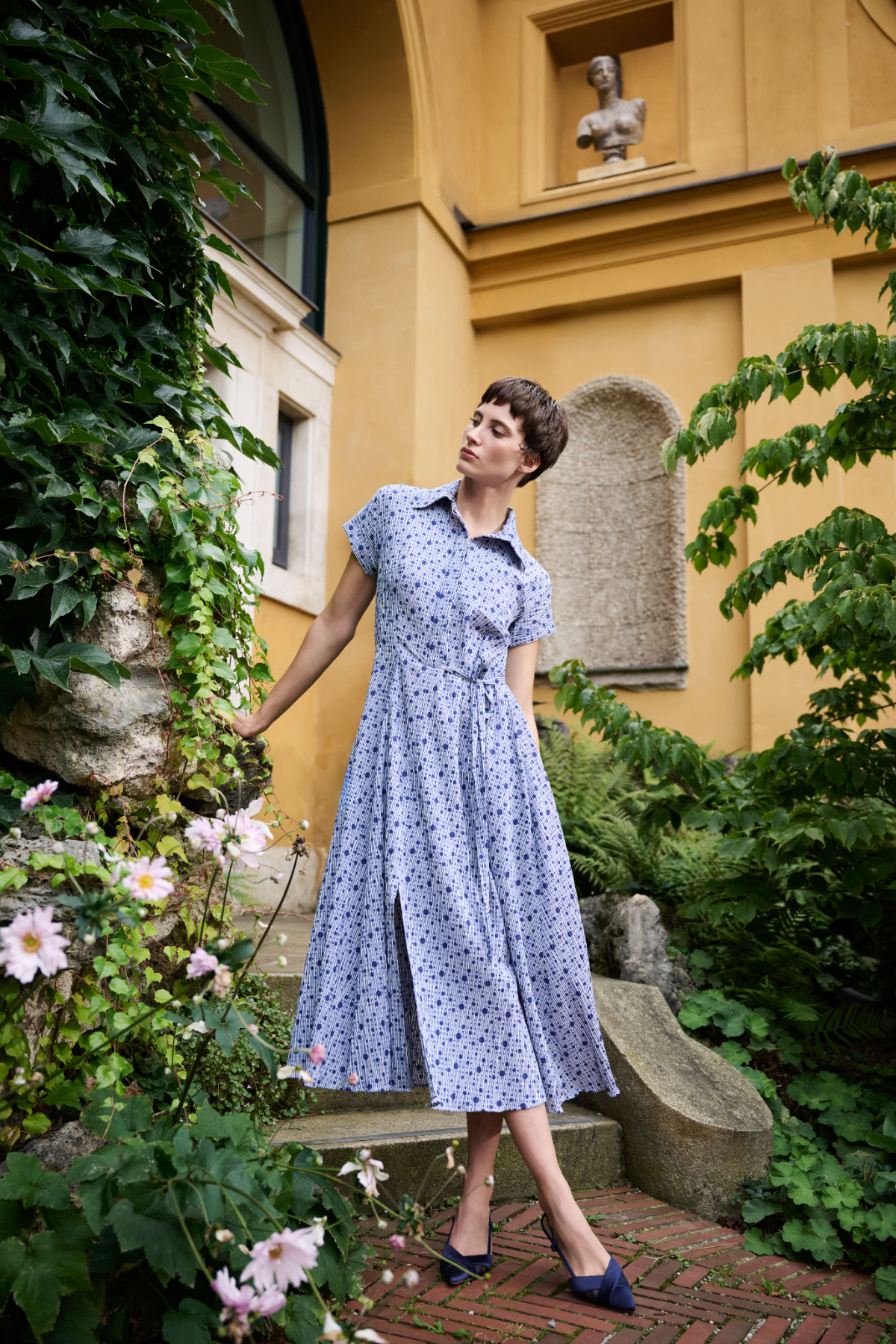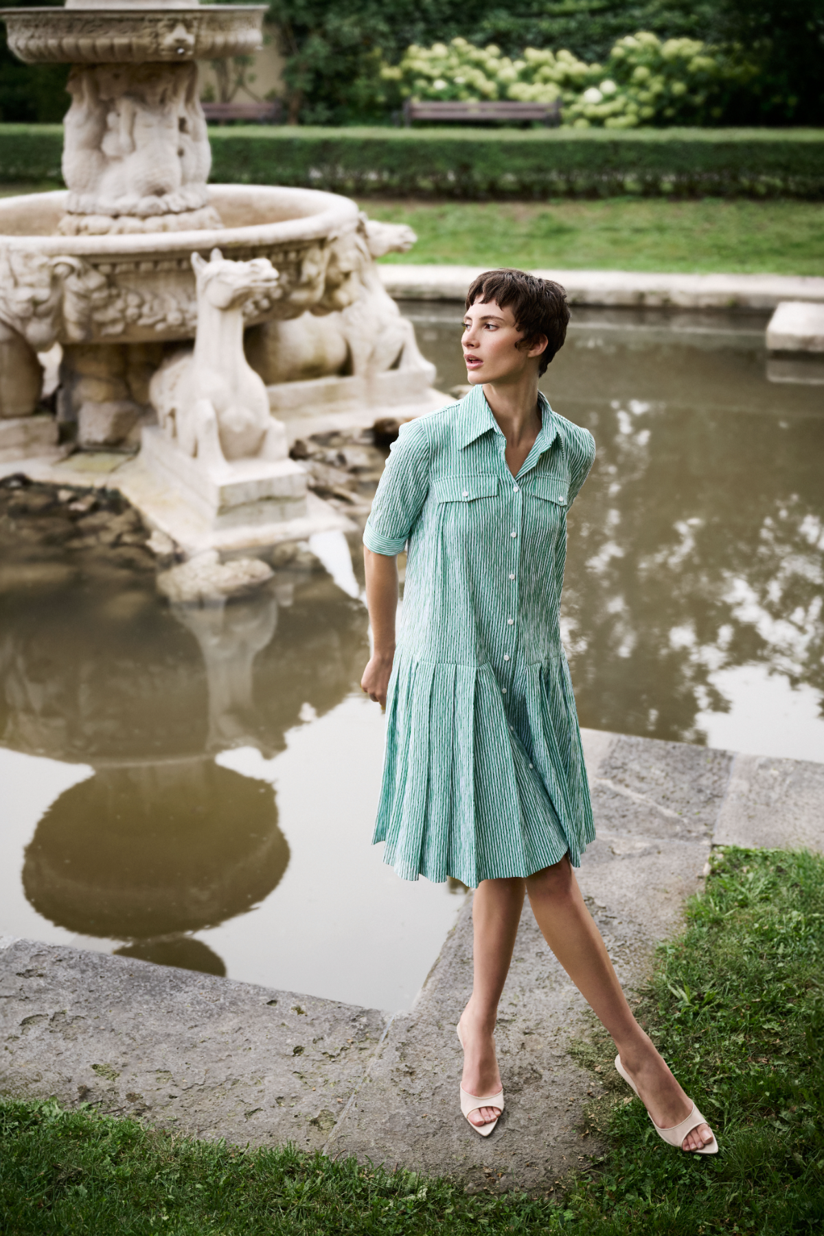 Inspired by the carefree Italian spirit in which elegance, style, and lightness merge, these looks also echo the fashion of the 1950s seen in iconic Italian film classics, reinterpreted in a contemporary context. Feminine shirt dresses, sporty details, and a sense of grandezza lend the legendary glamour a modern freshness.
