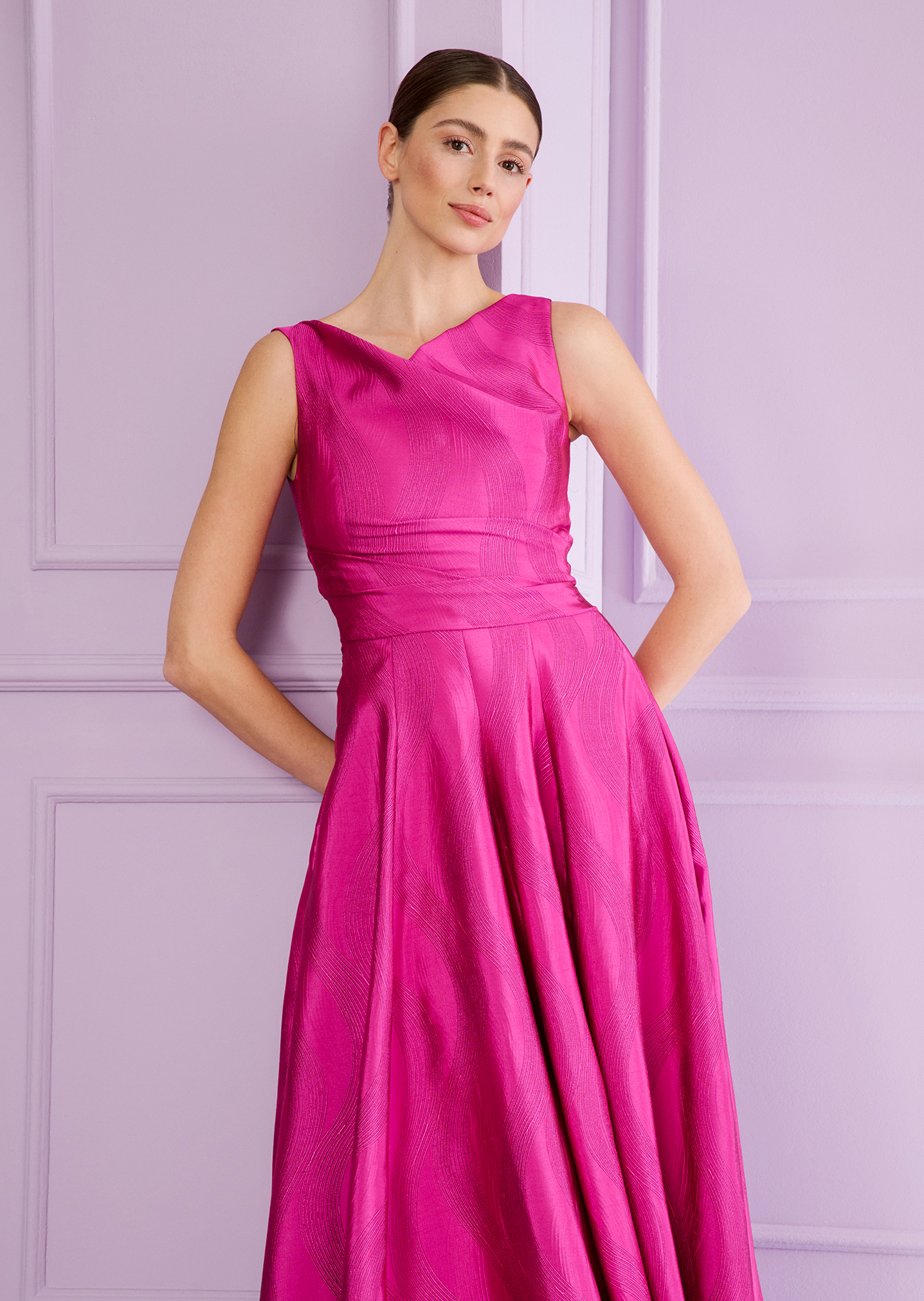Give me a twirl! The wide skirt section on this dress is perfect for whirling around the dance floor. But that’s not all this evening dress has to offer! The beautiful jacquard dazzles impressively in this color. The upper section features sophisticated draping that not only creates a subtle V-neckline, but also accentuates the waist and makes it appear slimmer. You’ll be able to dance into the early hours with ease in this dress – and attract a fair few compliments along the way. Pair it with opulent jewelry or opt for a clean, minimalist look.