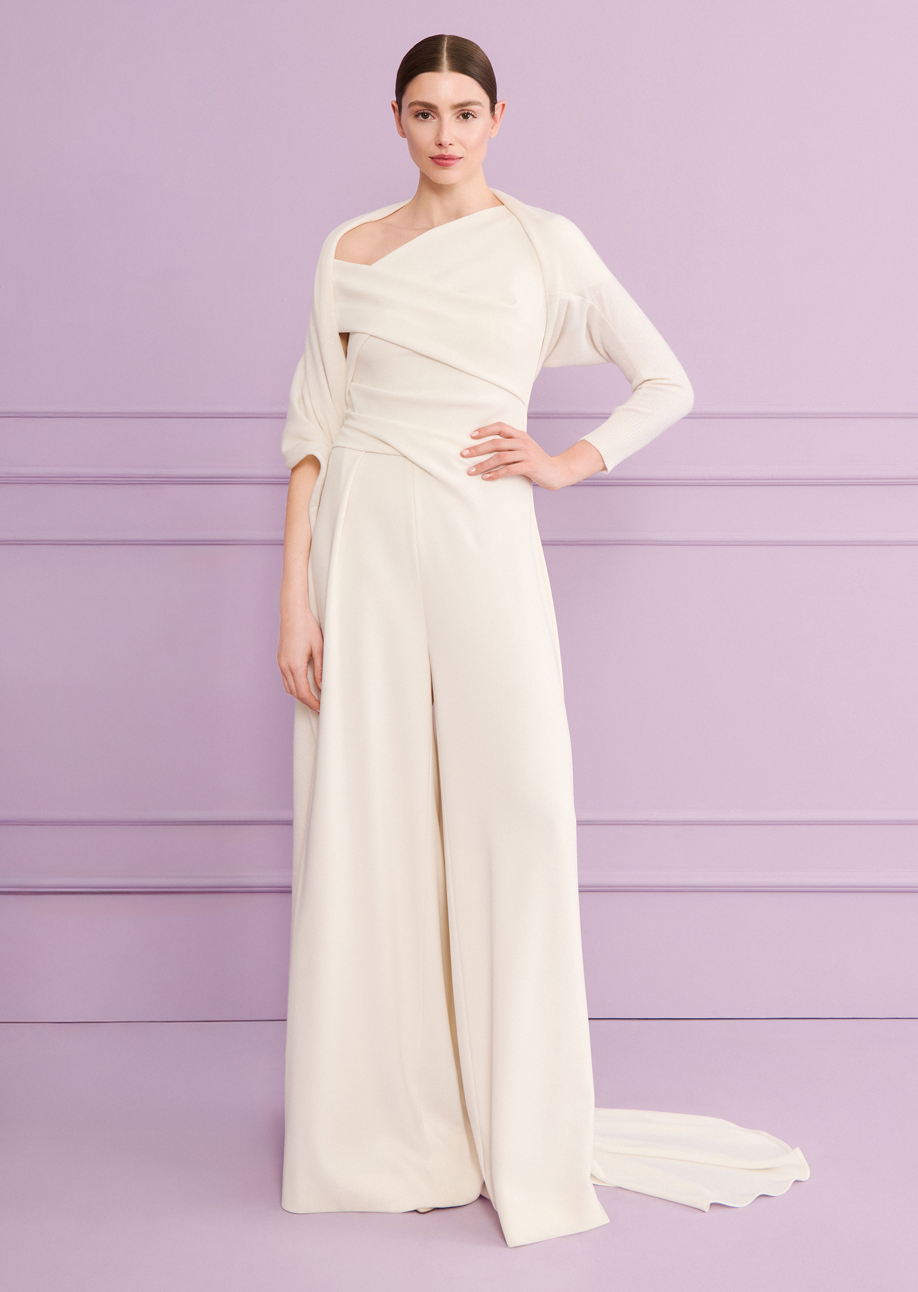 one sleeve-stole made of cashmere in ivory