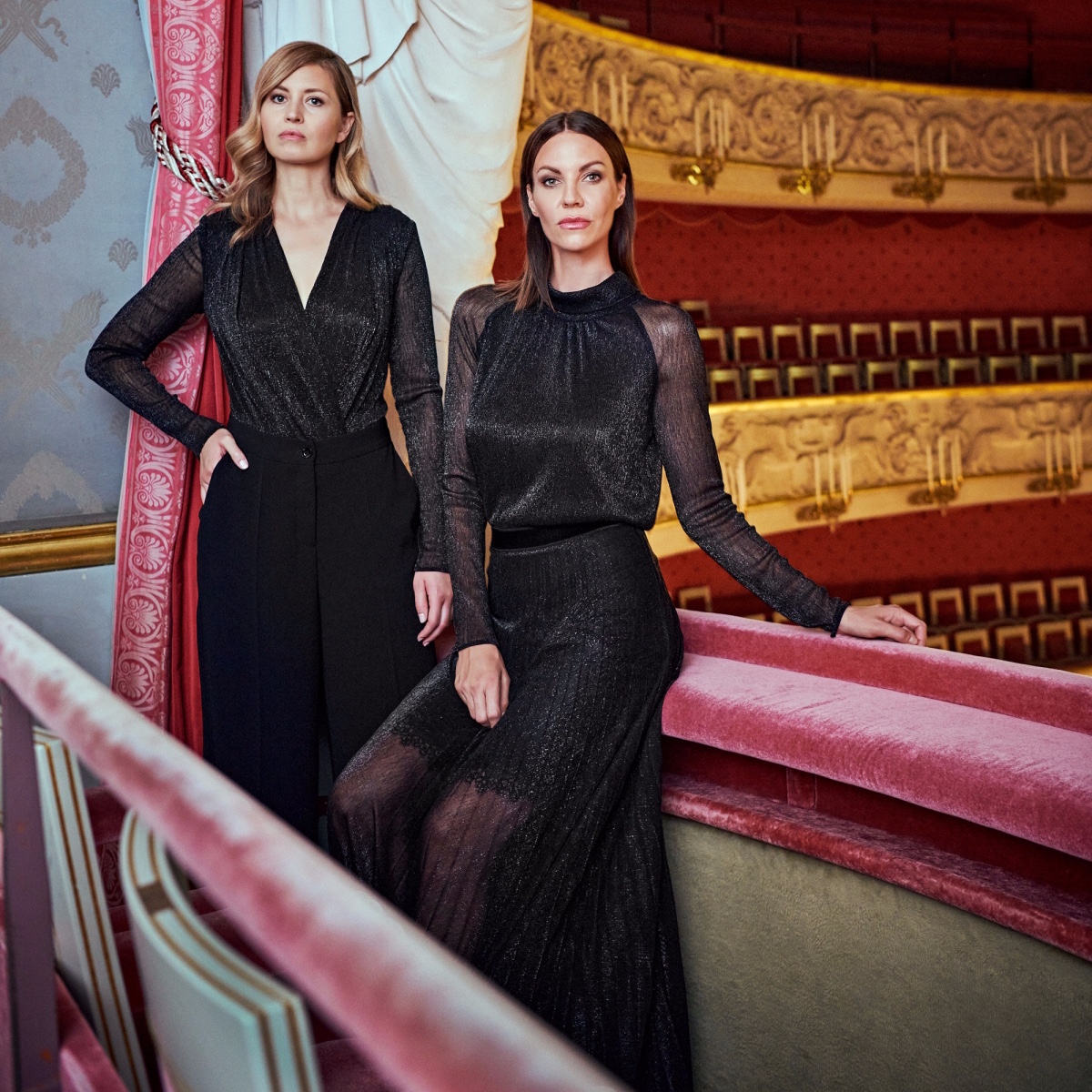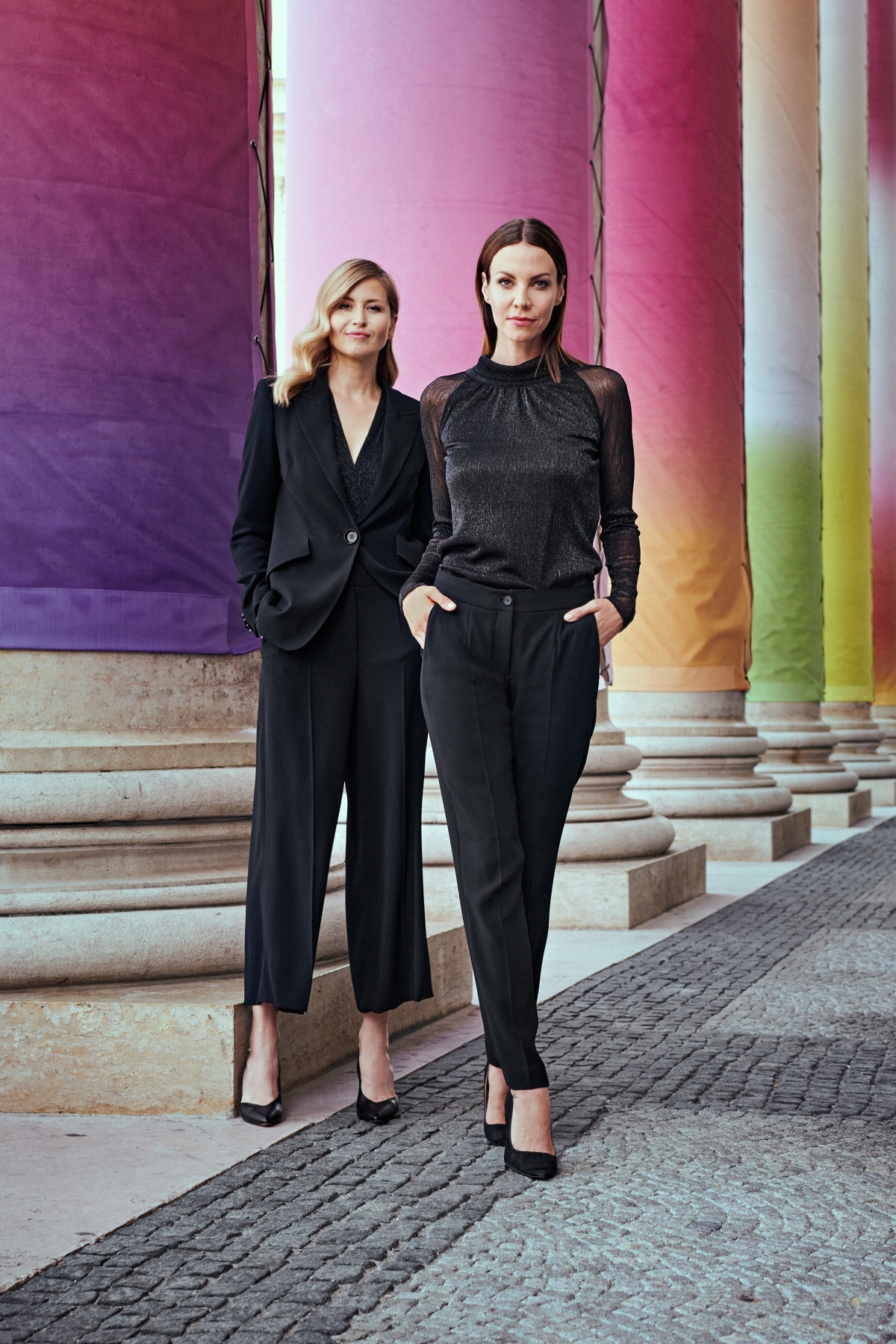 Johnny Talbot and Adrian Runhof have created an exclusive capsule collection of evening looks in elegant black for the anniversary tour of the bavarian state orchestra. The focus of this collection is clearly the glamor that has been Talbot Runhof's trademark for more than twenty years: Feminine cuts, but always with the maximum level of comfort that is so important when performing.