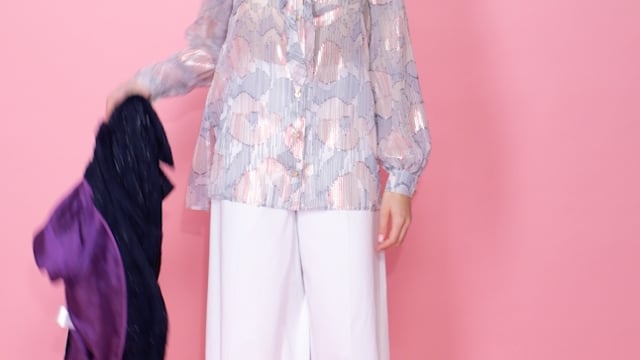 this blouse is an absolute essential for every wardrobe - a new interpretation of a talbot runhof favorite made from a beautiful silk fil coupé with a beautiful colorful print. the tie at the neck can be fashioned into a bow or a simple knot... this blouse can be worn all year round combined with a smart pencil skirt or business trousers - or go for the summer look combined with a flowing light midi skirt skirt.