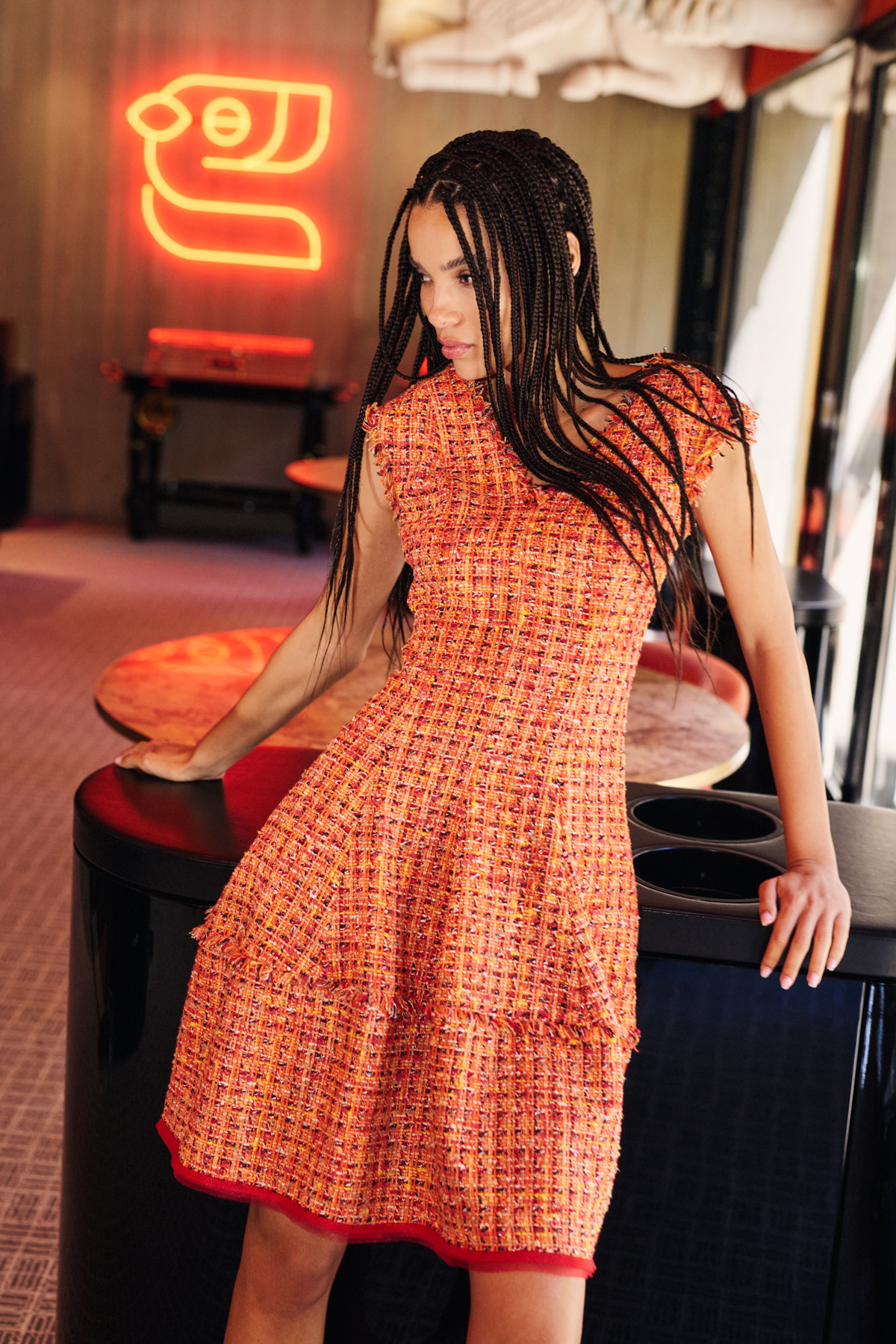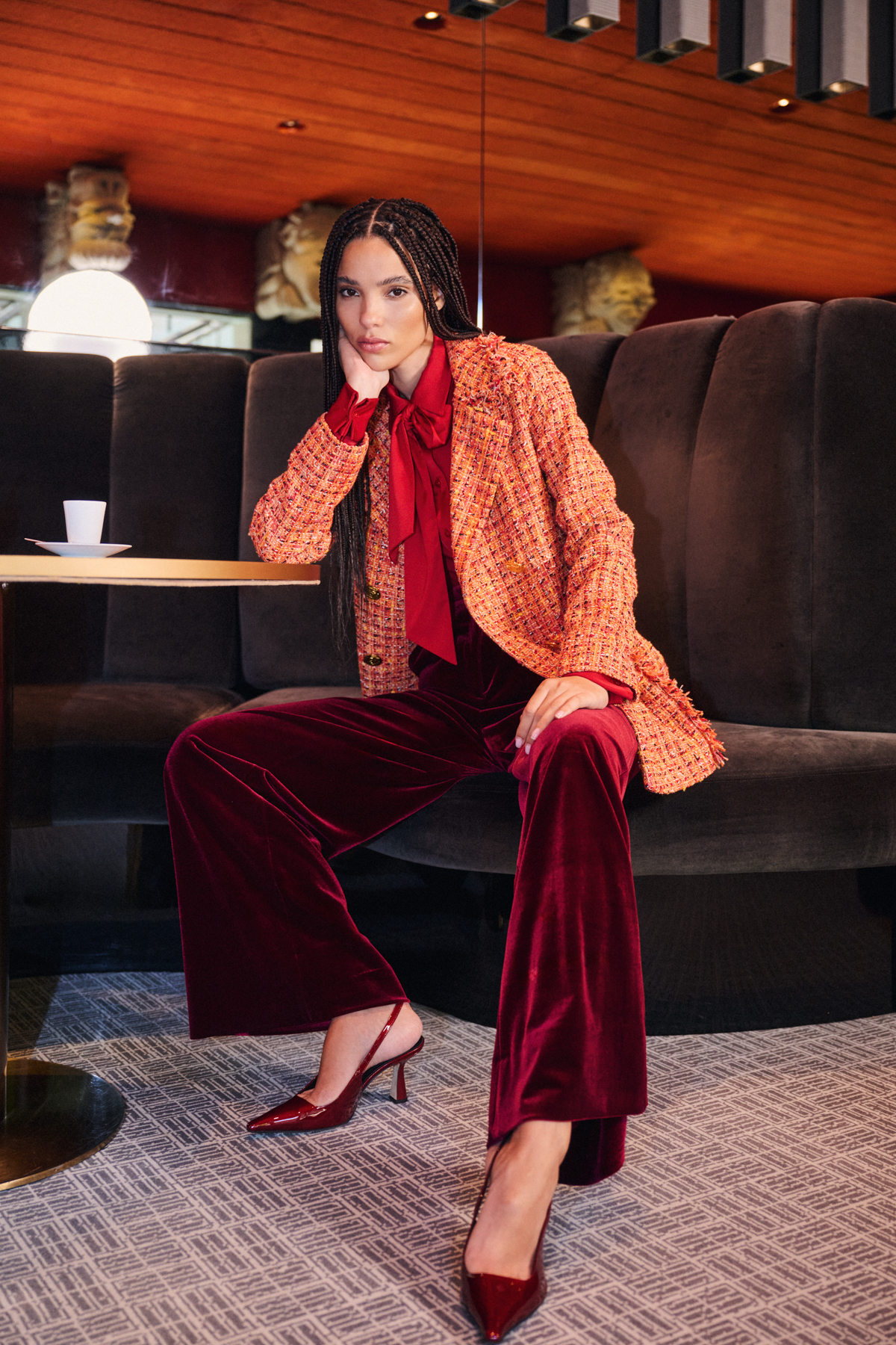 Auch Tweed feiert wieder ein stilvolles Comeback – subtil veredelt durch Pailletten, Applikationen oder schimmernde Lurexfäden. In einem kräftigen Orange wird das Traditionsmaterial zum modernen Eyecatcher, ob als einzelnes Statement-Piece oder als Komplettlook für das Gallery Opening oder den After-Work-Cocktail.