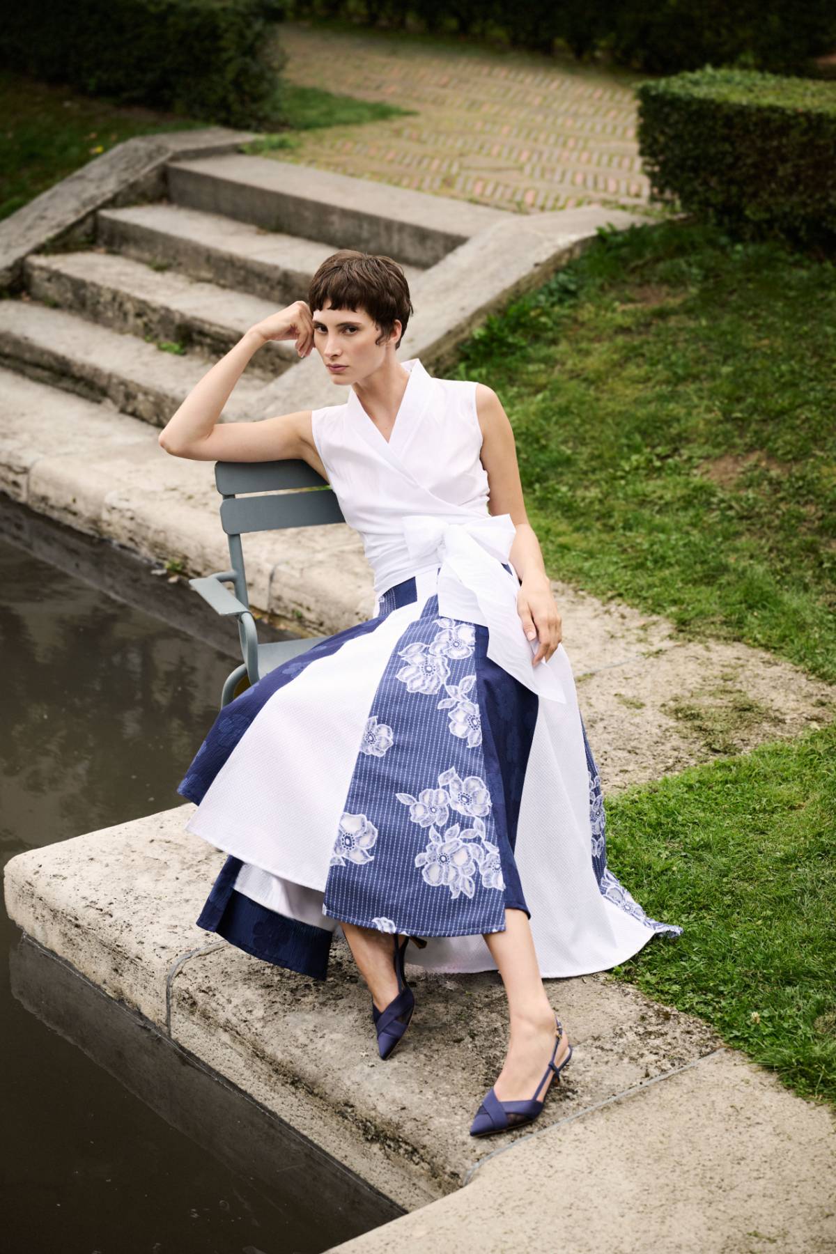 Wenn der frühe Abend anbricht, schlägt die Stunde der Eleganz. Locker geschnittene Styles aus Crepon – mal als extravaganter Loose Fit Cocktaillok in Midilänge, mal als Jumpsuit, fangen die Leichtigkeit des Moments und setzen einen modernen Akzent. Daneben entführen zarter Chiffon und dezent schimmernder Pekin mit wunderschönen Blumenprints direkt an die illustre Amalfiküste. Später am Abend sorgt funkelnd bestickter Organza, als opulente Robe mit Rüschen-Details oder zarter Midirock, für den großen Auftritt – ein stilvolles Rendezvous mit Rom voller Glamour und Retro-Vibes, das moderne Raffinesse mit nostalgischem Charme verbindet.